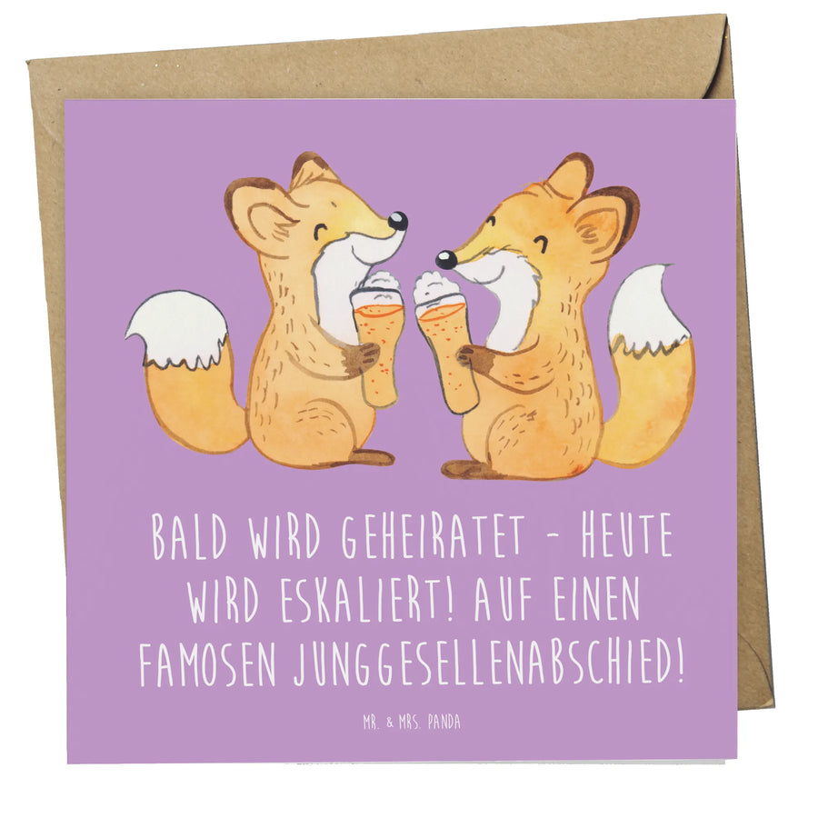 Bald wird geheiratet und das bedeutet: Junggesellenabschied! Unsere wunderschöne Deluxe Karte von Mr. & Mrs. Panda ist das perfekte Geschenk für diesen besonderen Anlass. Die Karte ist liebevoll gestaltet und mit dem Spruch „Bald wird geheiratet - heute wird eskaliert! Auf einen famosen Junggesellenabschied!“ bedruckt, welcher die Vorfreude auf die Hochzeit perfekt einfängt. Dein Freund oder deine Freundin wird sich über diese einzigartige Grußkarte bestimmt freuen!