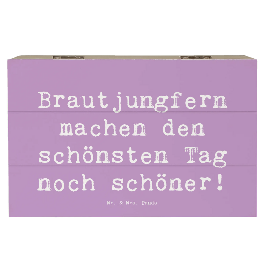 Diese wunderschöne Holzkiste von Mr. & Mrs. Panda ist das perfekte Geschenk für alle Brautjungfern und wird an jedem Hochzeitstag zu einem besonderen Highlight! Mit der liebevollen Aufschrift "Brautjungfern machen den schönesten Tag noch schöner!" ist sie nicht nur ein praktisches Aufbewahrungsort für alle Schätze und Erinnerungen, sondern auch ein wundervolles Erinnerungsstück, das Eure Brautjungfern für immer behalten können.