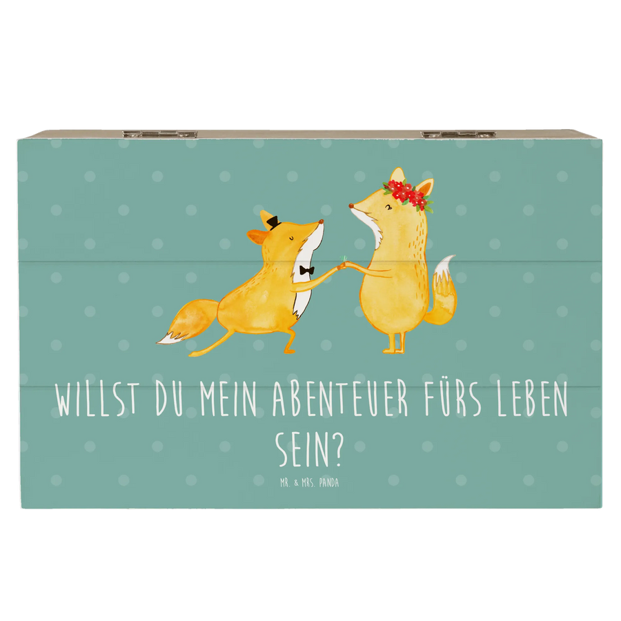 Die Holzkiste mit dem traumhaften Motiv "Willst du mein Abenteuer fürs Leben sein?" von Mr. & Mrs. Panda ist das perfekte Geschenk für Verliebte und Hochzeitspaare. Diese wunderschöne Kiste eignet sich wunderbar als persönliche Erinnerungskiste oder Aufbewahrungsort für kleine Schätze, die man für immer bewahren möchte. Ob als Hochzeitsgeschenk oder als besondere Aufmerksamkeit bei einem Heiratsantrag – diese Holzkiste wird von Herzen verschenkt und ist ein ganz besonderer Blickfang!