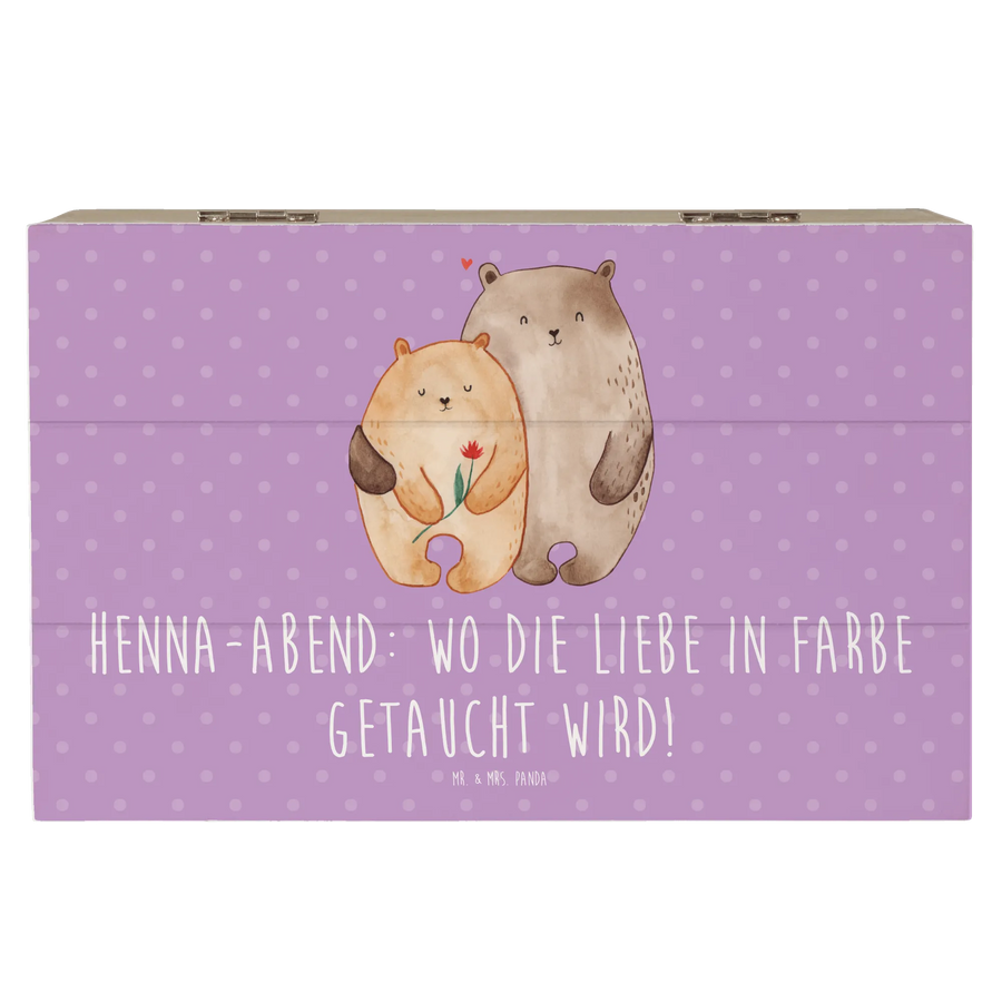 Die wunderschöne Holzkiste von Mr. & Mrs. Panda, bedruckt mit dem zauberhaften Motiv "Henna-Abend: Wo die Liebe in Farbe getaucht wird!", ist das perfekte Geschenk für jeden, der das Besondere an Hochzeiten und festlichen Anlässen schätzt. Sie eignet sich ideal als Erinnerungskiste, um die schönsten Momente von Anlässen wie Hochzeiten, Verlobungen, oder einem Henna-Abend festzuhalten.