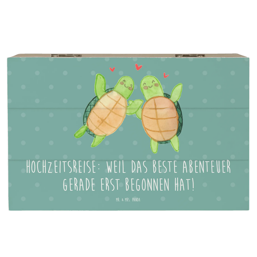 Du suchst nach dem perfekten Geschenk zur Hochzeit? Unsere wunderschöne Holzkiste „Hochzeitsreise“ von Mr. & Mrs. Panda ist genau das Richtige! Diese stilvolle Erinnerungskiste wird nicht nur als Aufbewahrungsort für wunderbare Schätze dienen, sondern auch zum Symbol für den Beginn eines aufregenden gemeinsamen Abenteuers. Mit dem liebevollen Slogan "Hochzeitsreise: Weil das beste Abenteuer gerade erst begonnen hat!" verleiht sie jedem Anlass eine persönliche Note.