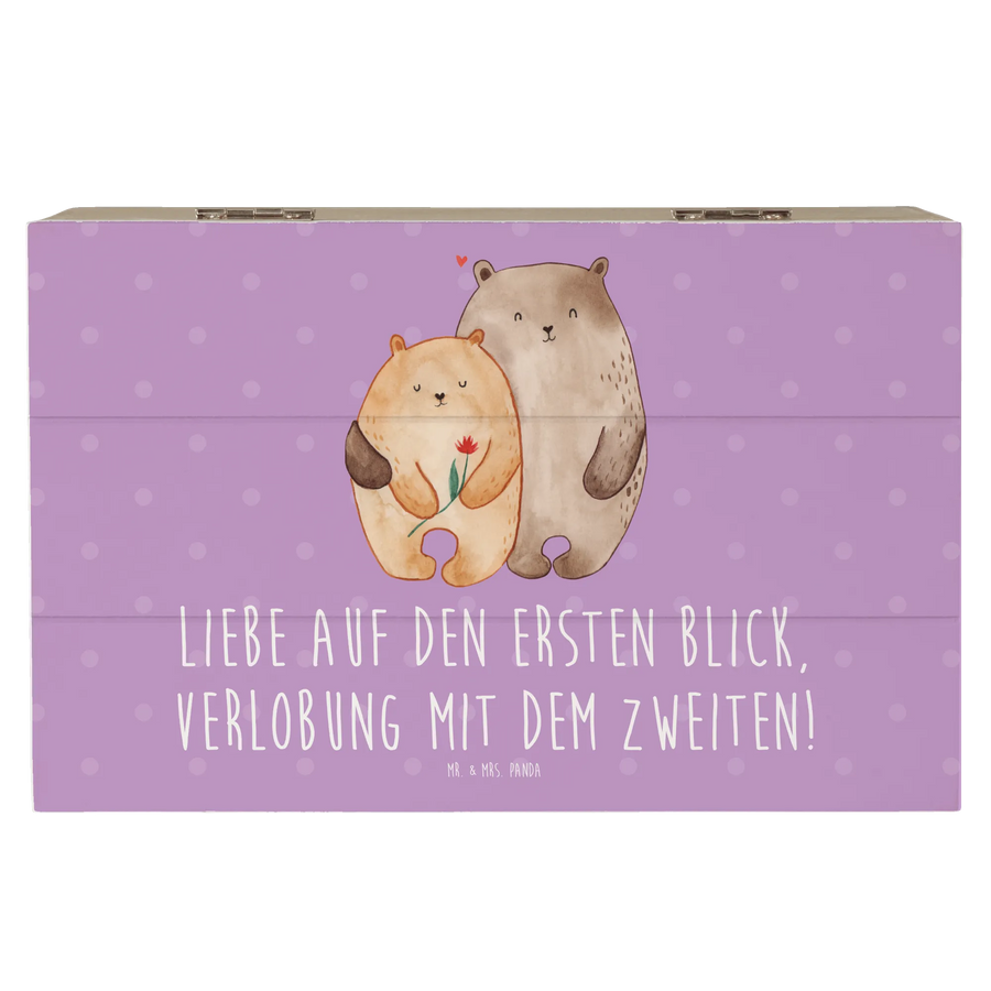 Entdecke die wunderschöne Holzkiste von Mr. & Mrs. Panda, die ideal für eine Verlobung ist! Mit dem liebevollen Slogan "Liebe auf den ersten Blick, Verlobung mit dem zweiten!" wird diese Kiste zum perfekten Aufbewahrungsort für all deine Schätze.