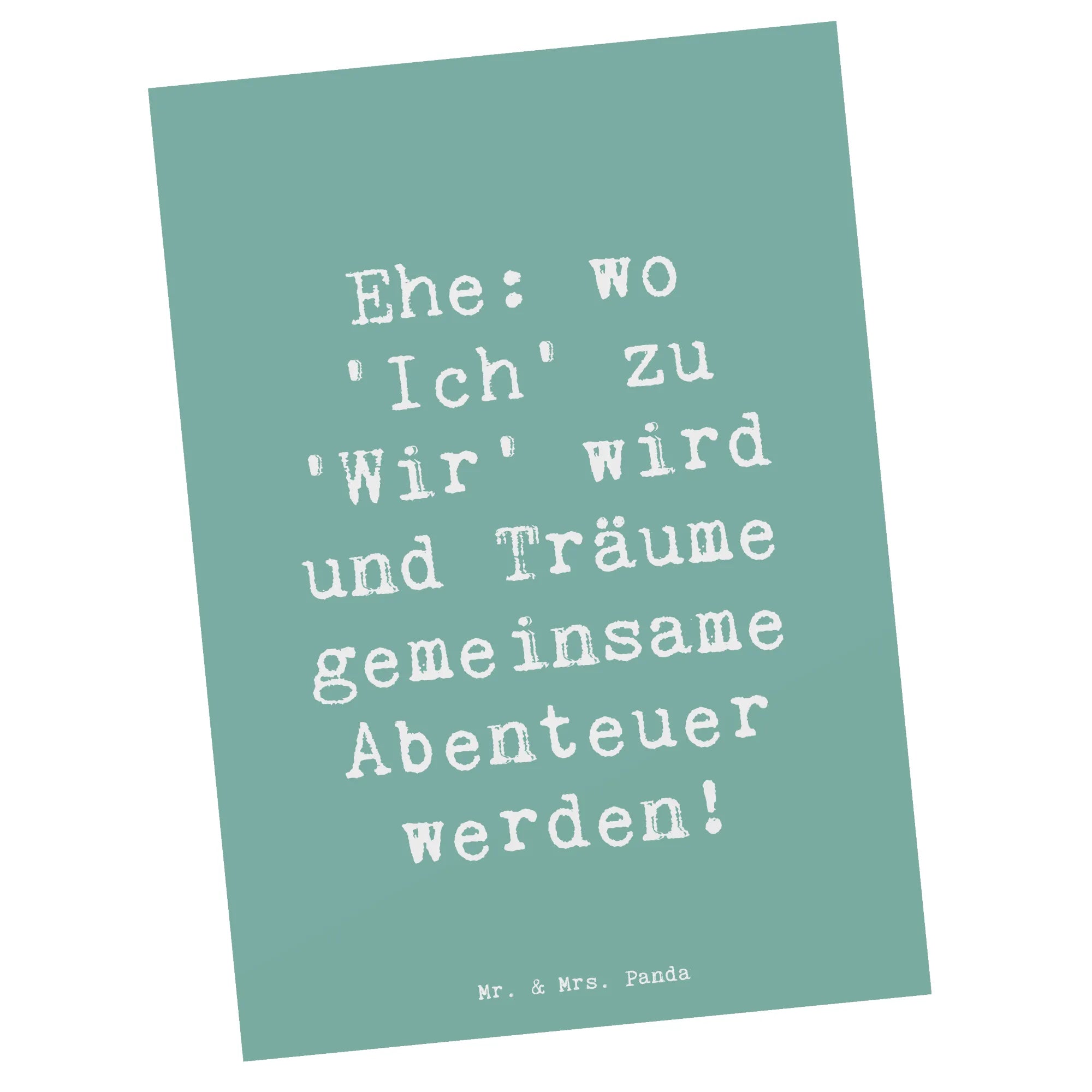 Der Spruch "Ehe: wo 'Ich' zu 'Wir' wird und Träume gemeinsame Abenteuer werden!" ist nicht nur romantisch, sondern fasst auch die Essenz einer Ehe zusammen. Diese Karte wird mit hochwertiger Tinte auf einem 300 Gramm starken Karton gedruckt, der nicht nur langlebig ist, sondern auch ganz toll aussieht.