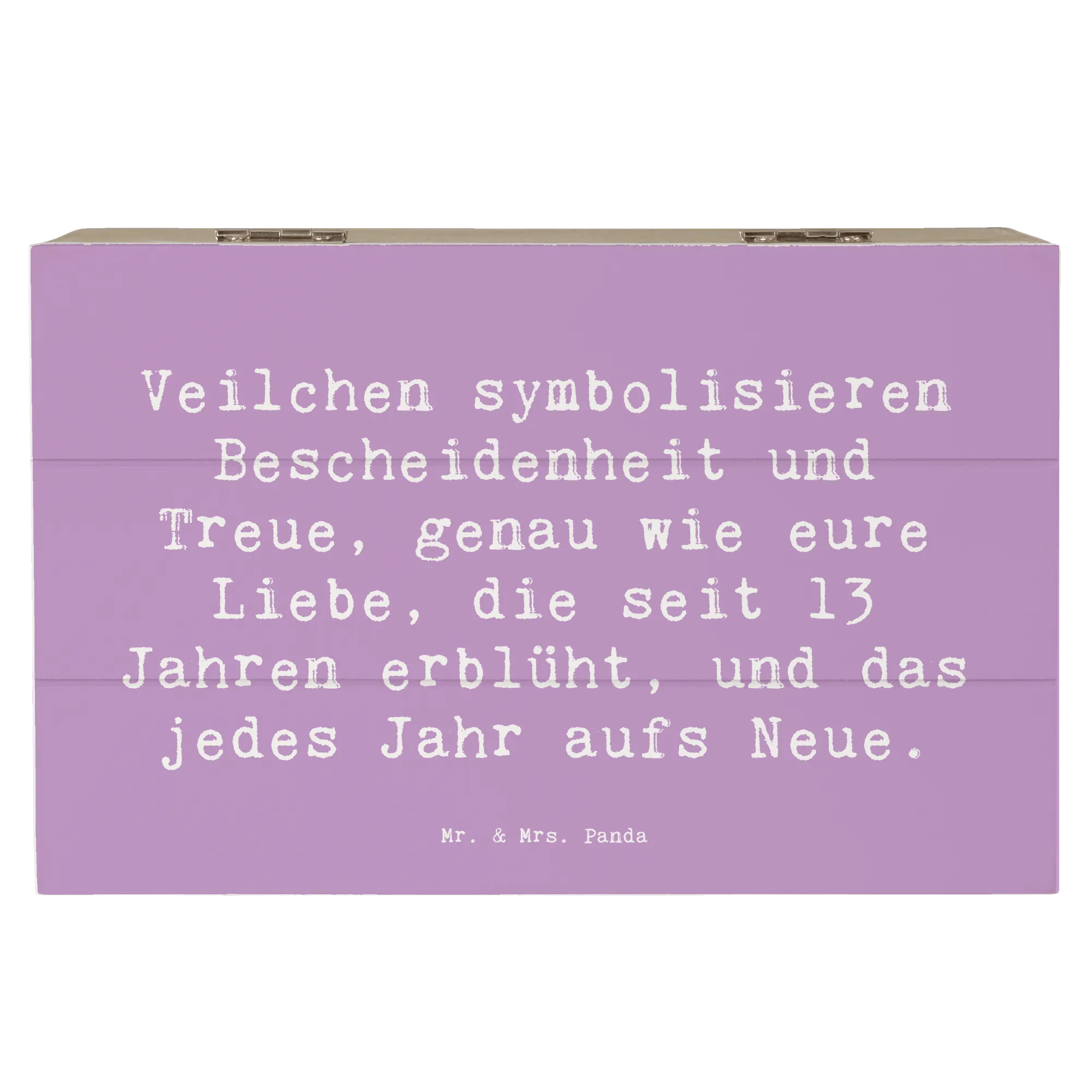 Das schöne Spruch-Design "Veilchen symbolisieren Bescheidenheit und Treue, genau wie eure Liebe, die seit 13 Jahren erblüht, und das jedes Jahr aufs Neue" macht diese Kiste zu einem emotionalen Geschenk, das von Herzen kommt.