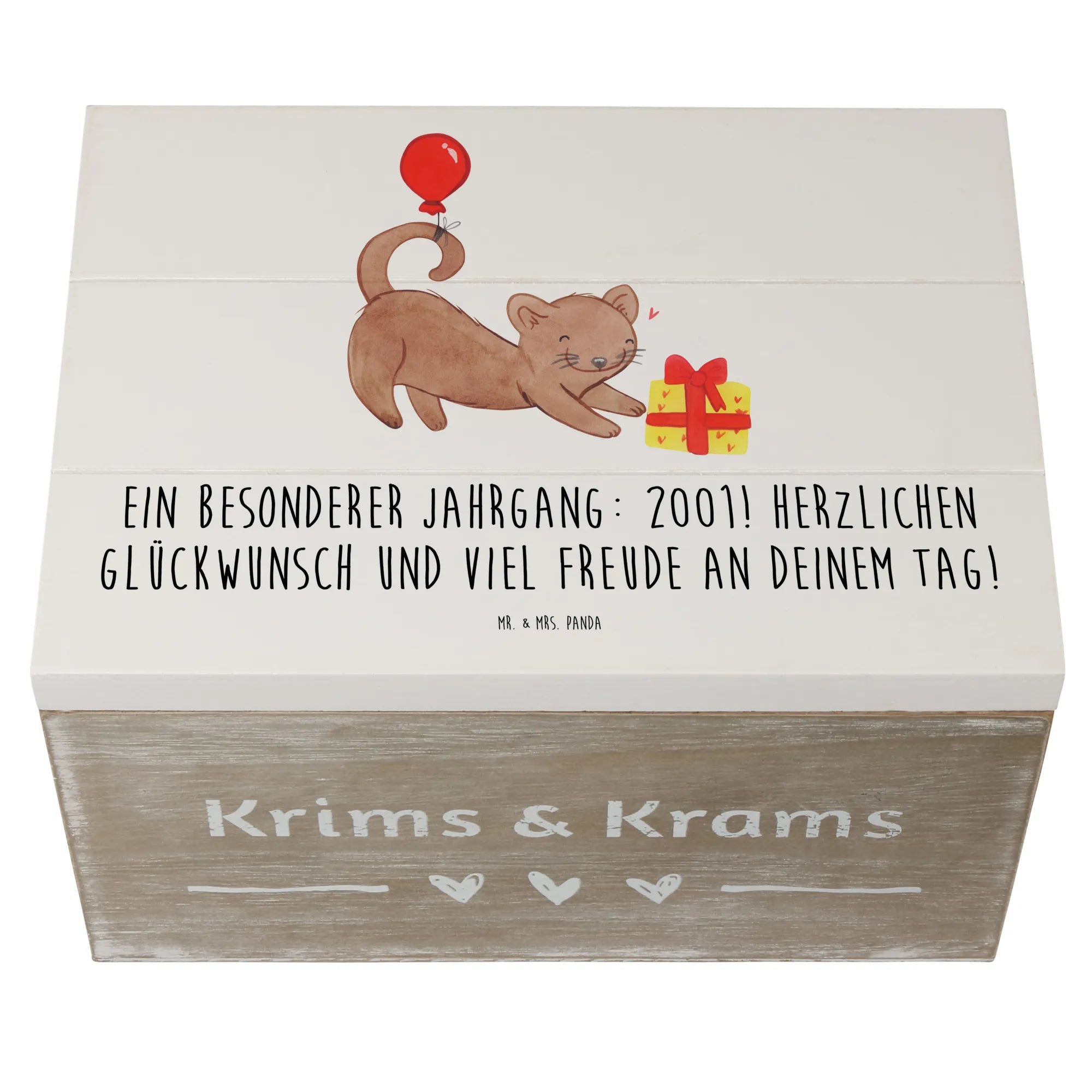 Entdecke die bezaubernde Holzkiste von Mr. & Mrs. Panda mit dem Motiv 'Geburtstag 2001', das speziell für all die besonderen Geburtstagskinder kreiert wurde, die in diesem unvergesslichen Jahr das Licht der Welt erblickten.