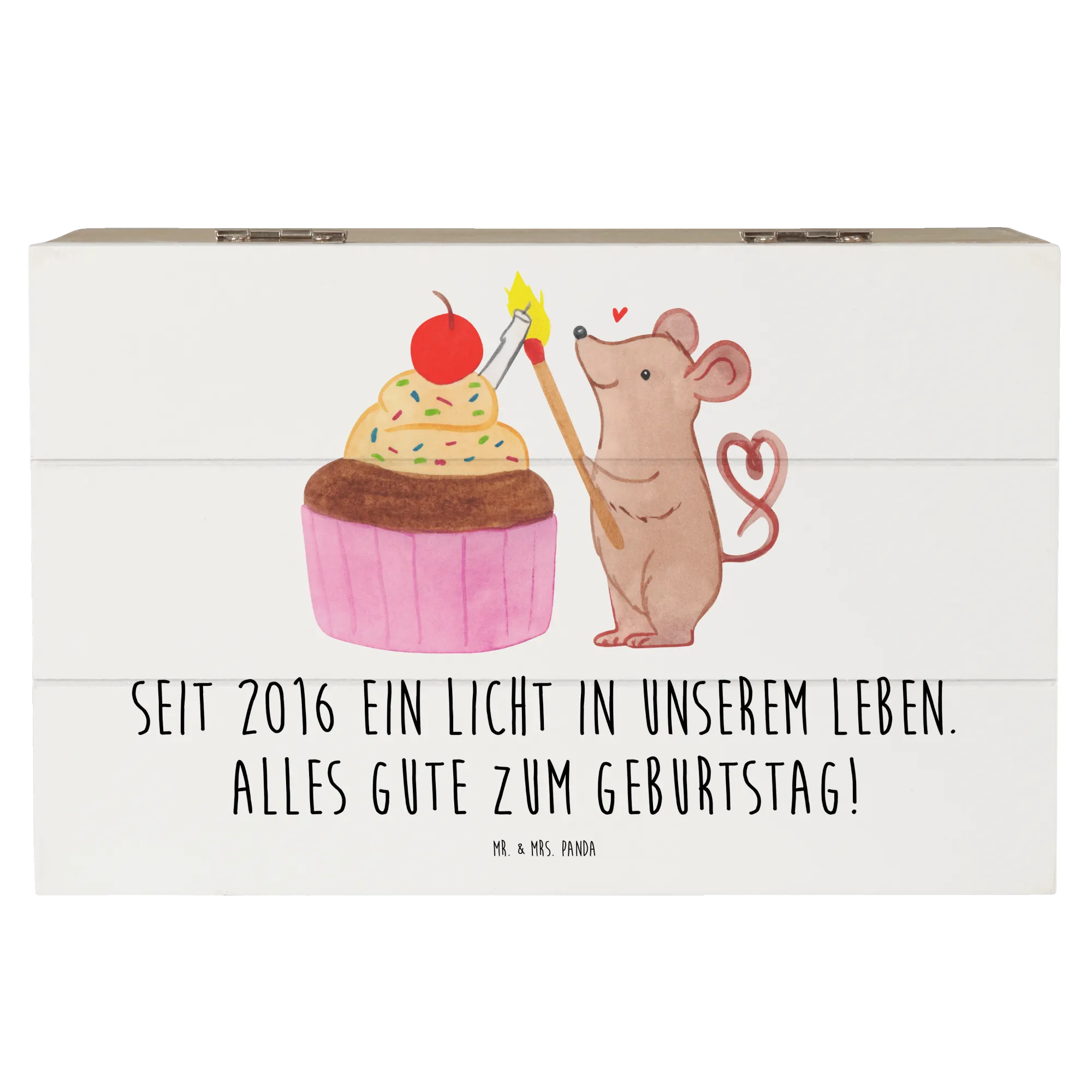 Mr. & Mrs. Panda Holzkiste „2016 Geburtstag“ – die liebevoll gestaltete Erinnerungskiste, die mehr als nur eine Aufbewahrungsbox ist. Mit dem herzlichen Spruch „Seit 2016 ein Licht in unserem Leben. Alles Gute zum Geburtstag!“ wird diese Holzbox zur perfekten Geschenkidee für alle, die Erinnerungen bewahren möchten.