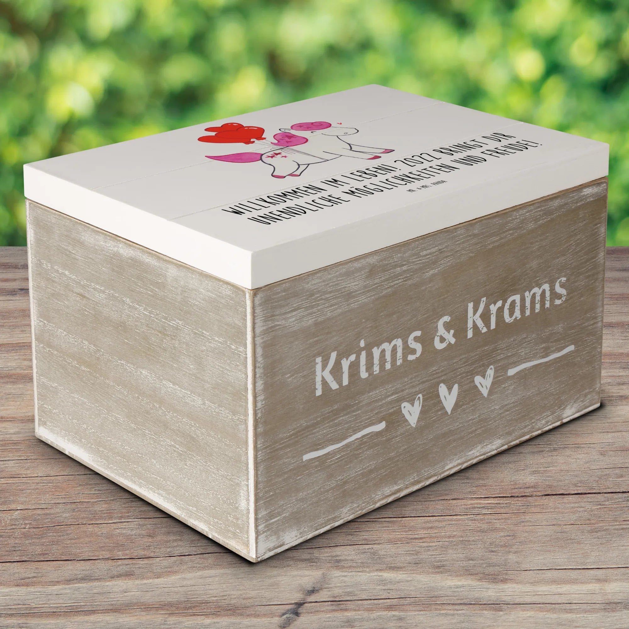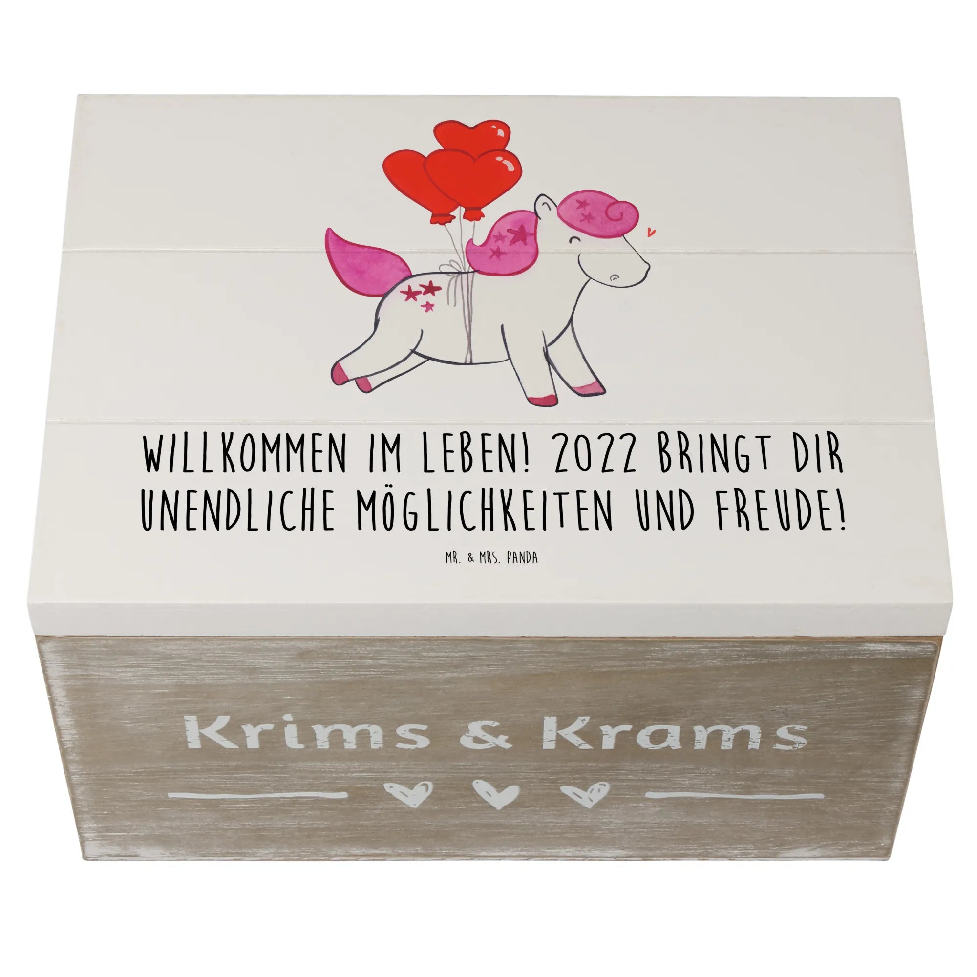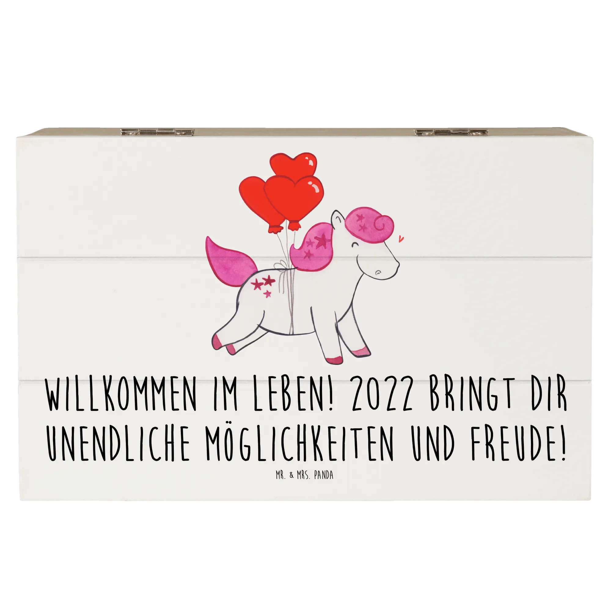 Entdecke die bezaubernde Holzkiste von Mr. & Mrs. Panda, die nicht nur als Aufbewahrungsort für deine besten Erinnerungen dient, sondern auch als ein wunderschönes Geschenk für den besonderen Tag im Leben eines jeden! Die Holzkiste ist bedruckt mit unserem herzlichen Motiv "Willkommen im Leben! 2022 bringt dir unendliche Möglichkeiten und Freude!", was sie zu einem perfekten Geburtstagsgeschenk macht, das sowohl Kinder als auch Erwachsene begeistert.
