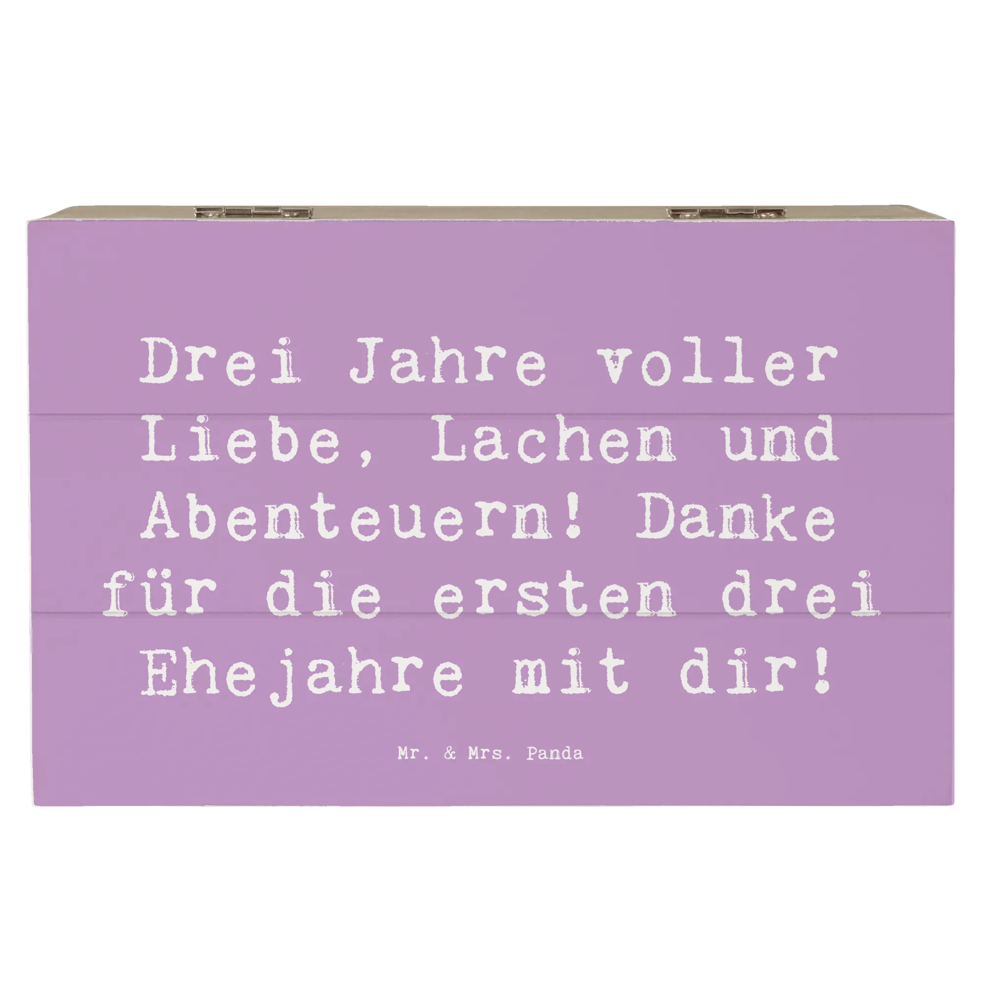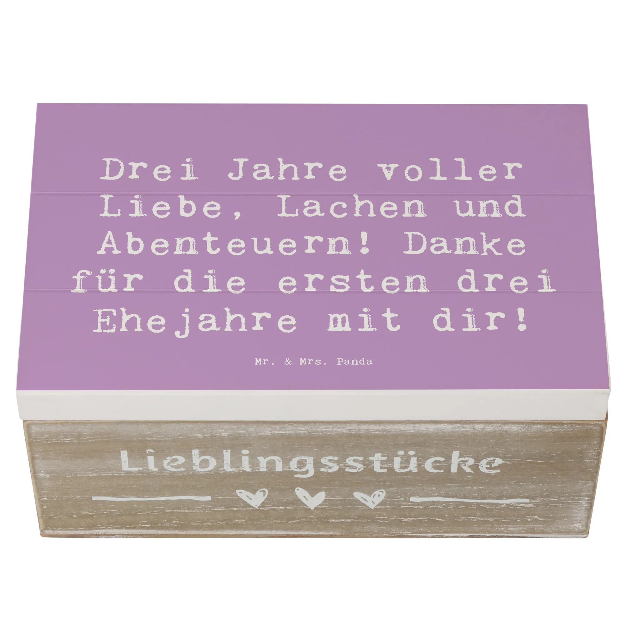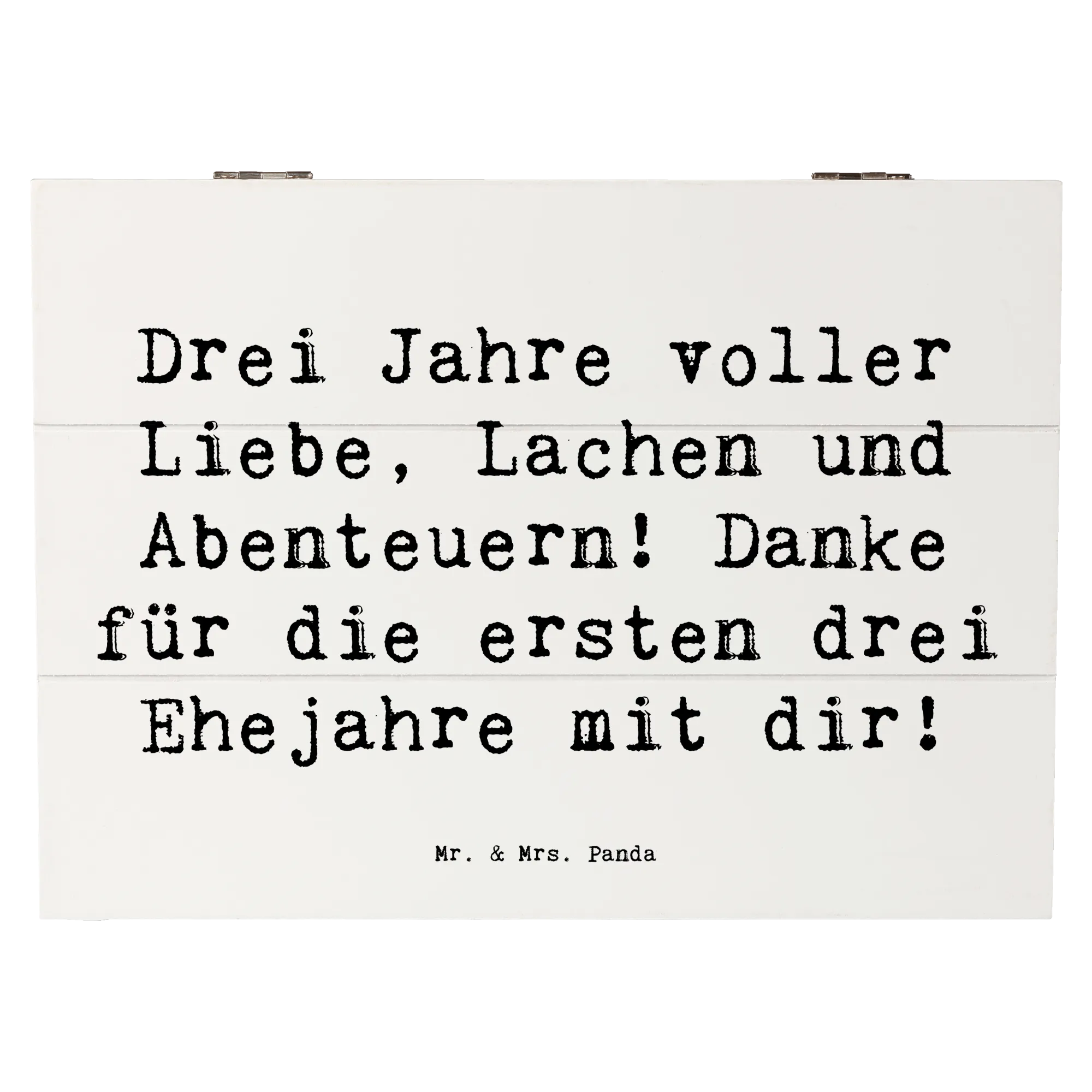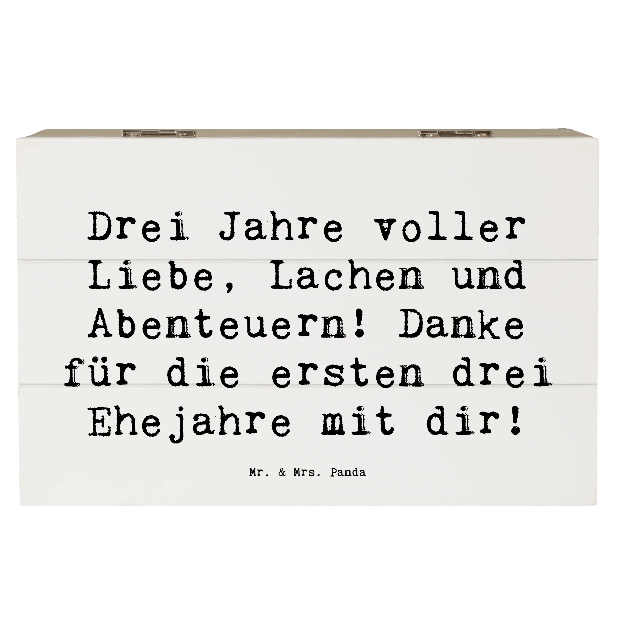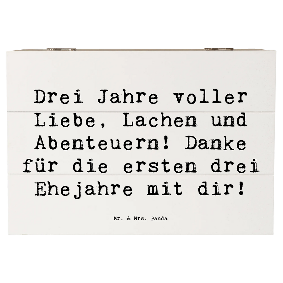 Die wunderschöne Holzkiste von Mr. & Mrs. Panda zum 3. Hochzeitstag ist das perfekte Geschenk für Paare, die ihre gemeinsamen Erinnerungen bewahren wollen. Mit dem liebevollen Spruch "Drei Jahre voller Liebe, Lachen und Abenteuern! Danke für die ersten drei Ehejahre mit dir!" zaubert sie ein Lächeln auf dein Gesicht.
