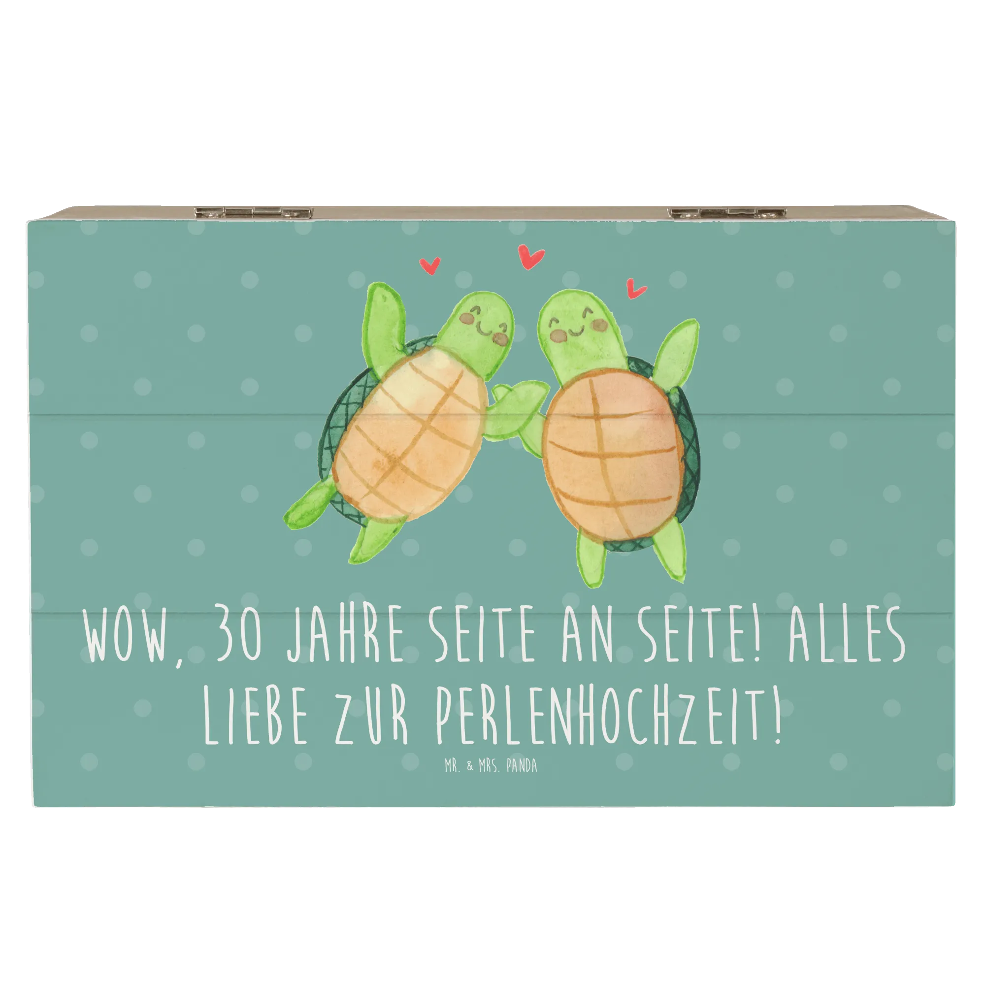 Suchst du nach einem perfekten Geschenk zur Perlenhochzeit? Unsere wunderschöne Holzkiste von Mr. & Mrs. Panda mit dem liebevollen Motiv 'Wow, 30 Jahre Seite an Seite! Alles Liebe zur Perlenhochzeit!' ist die ideale Wahl!