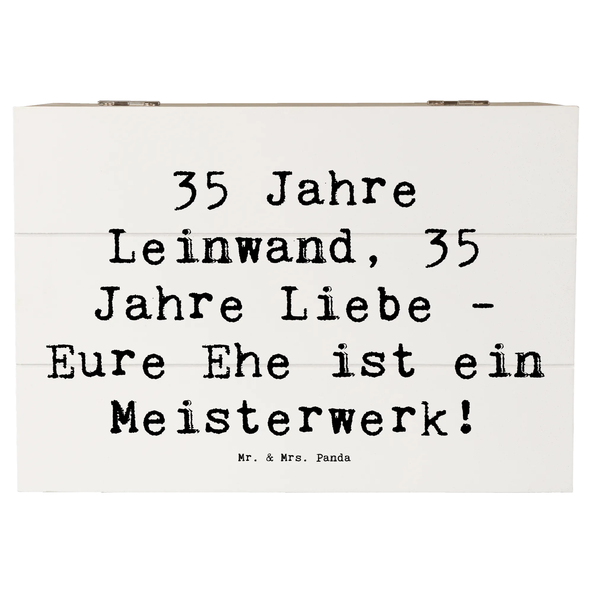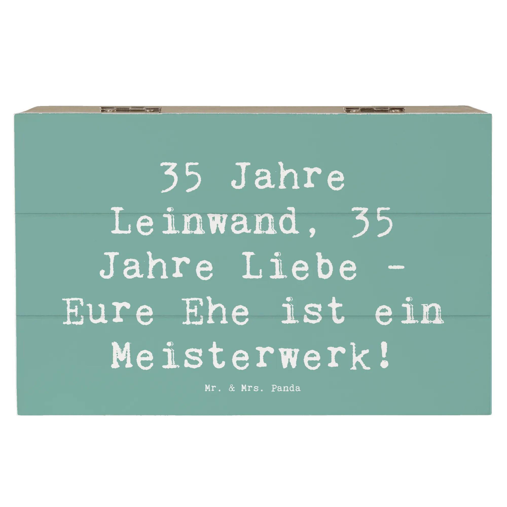 Entdecke die wundervolle Holzkiste von Mr. & Mrs. Panda, die perfekt für den 35. Hochzeitstag geeignet ist! Diese zauberhafte Erinnerungskiste mit dem liebevollen Motiv "35 Jahre Leinwand, 35 Jahre Liebe - Eure Ehe ist ein Meisterwerk!" bietet dir einen besonderen Platz für all eure wertvollen Schätze und Erinnerungen, die ihr im Laufe der Jahre gesammelt habt.