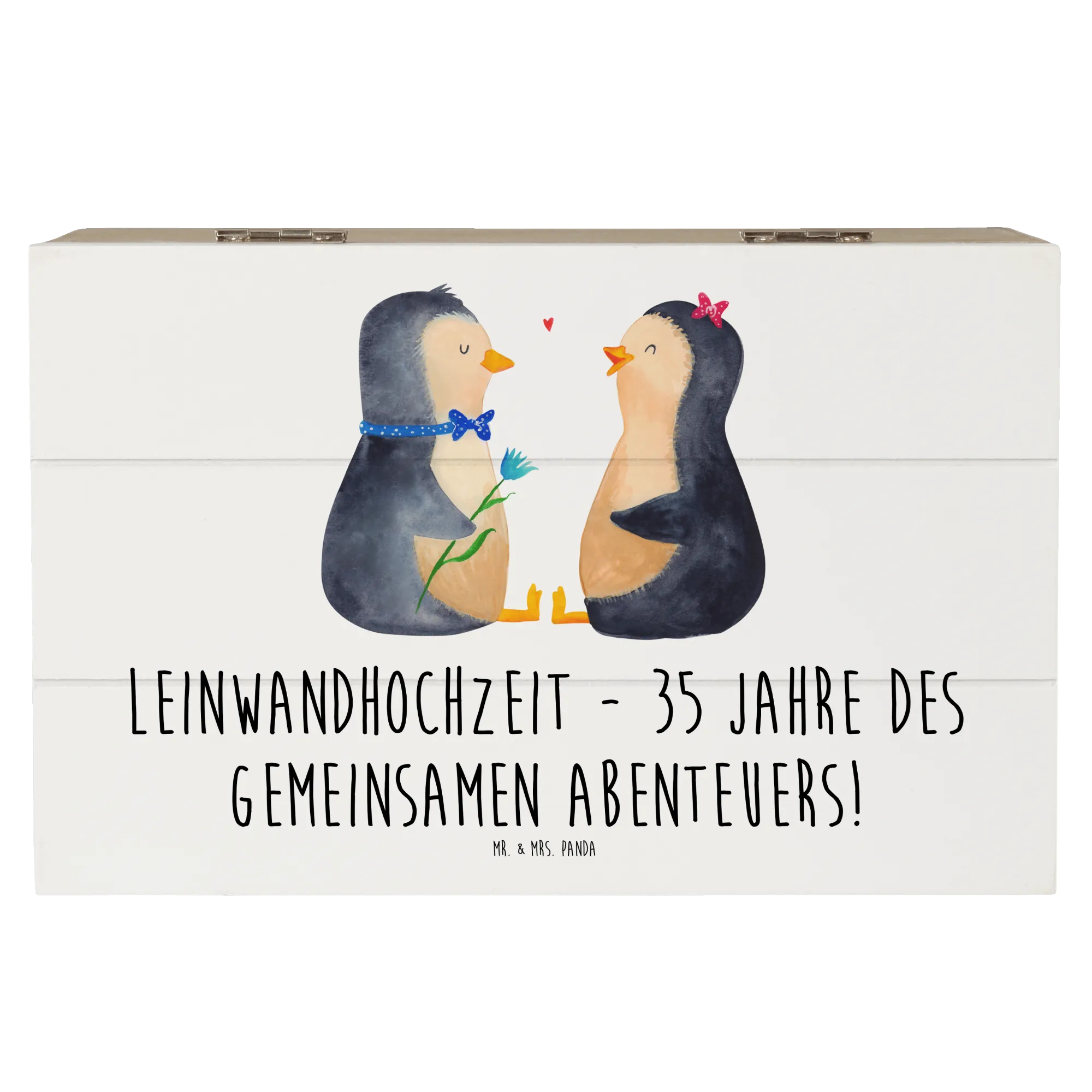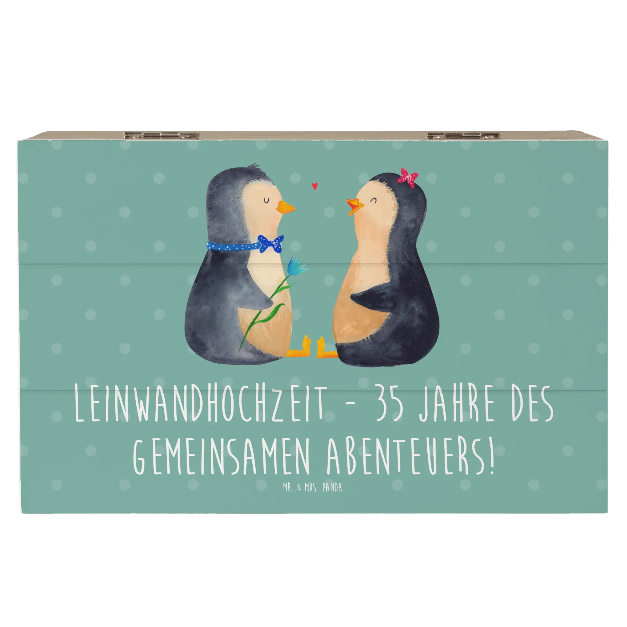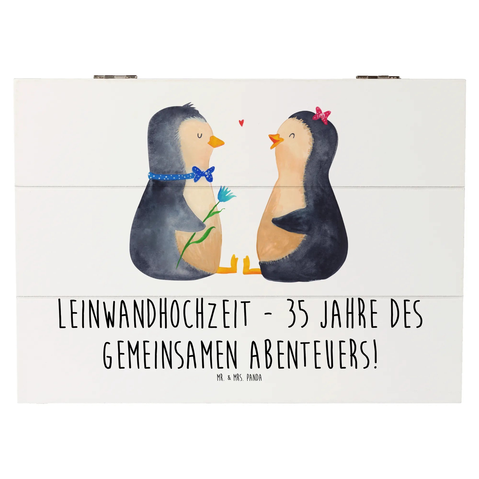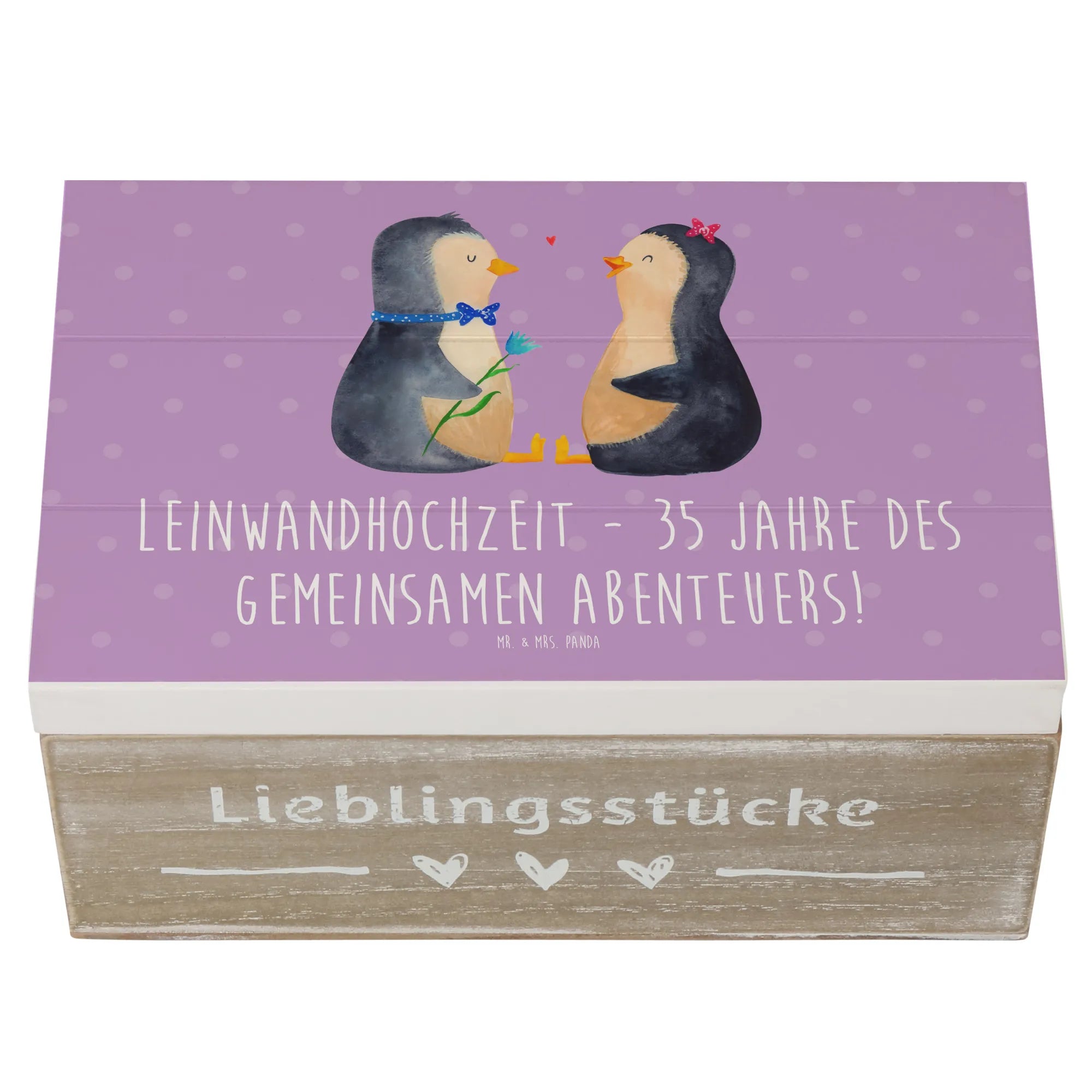 Du suchst nach dem perfekten Geschenk zum 35. Hochzeitstag? Unsere wunderschöne Holzkiste mit dem Motiven "Leinwandhochzeit - 35 Jahre des gemeinsamen Abenteuers!" von Mr. & Mrs. Panda ist eine zauberhafte Wahl!