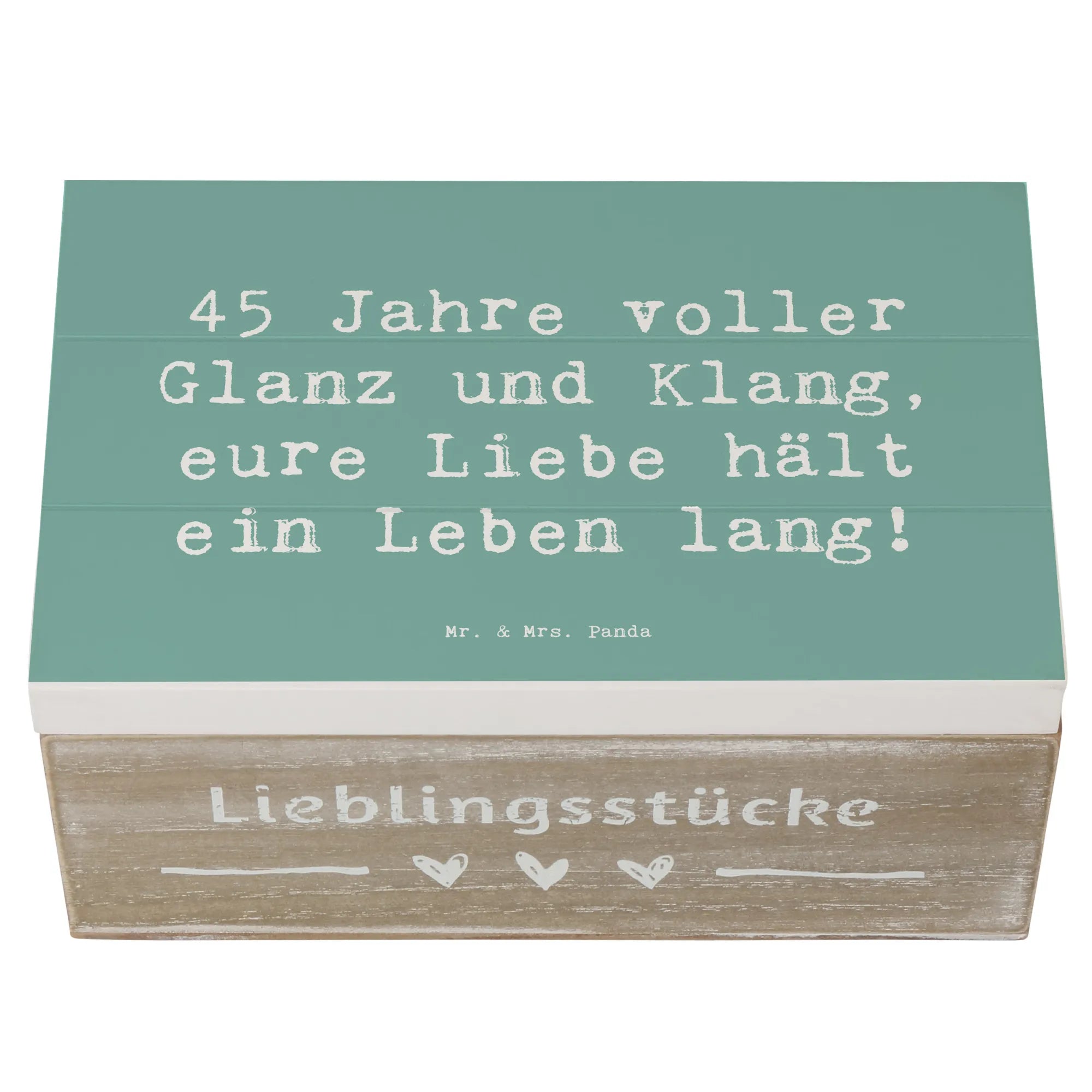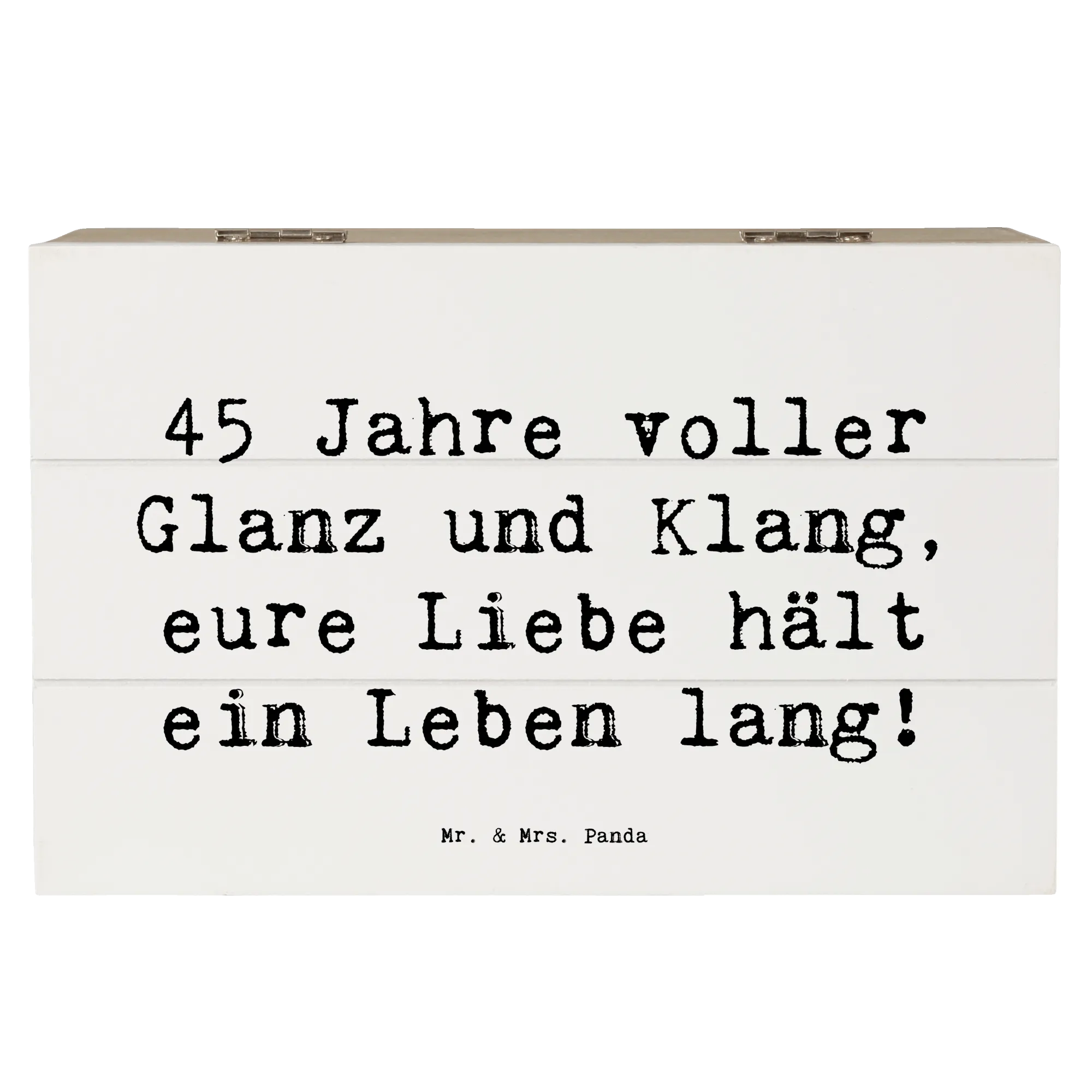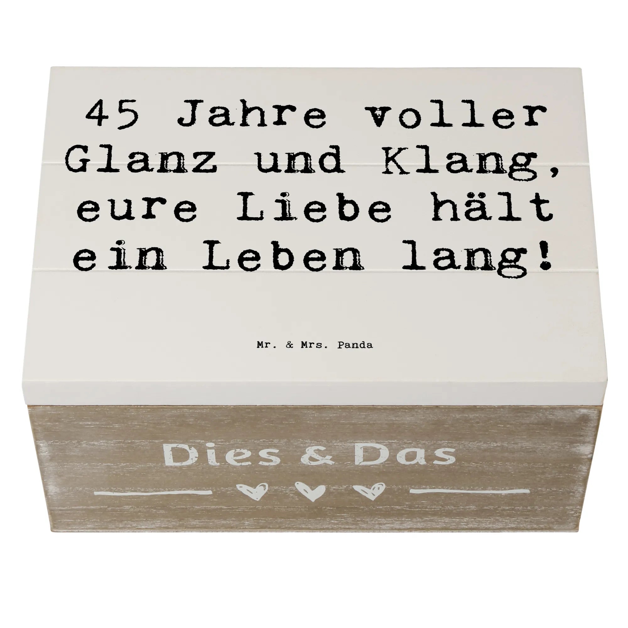 Suchst du nach dem perfekten Geschenk für das Ehepaar, das 45 Jahre voller Liebe und Glück miteinander geteilt hat? Dann ist die wunderschöne Holzkiste von Mr. & Mrs. Panda mit dem Motto "45 Jahre voller Glanz und Klang, eure Liebe hält ein Leben lang!" genau das Richtige!