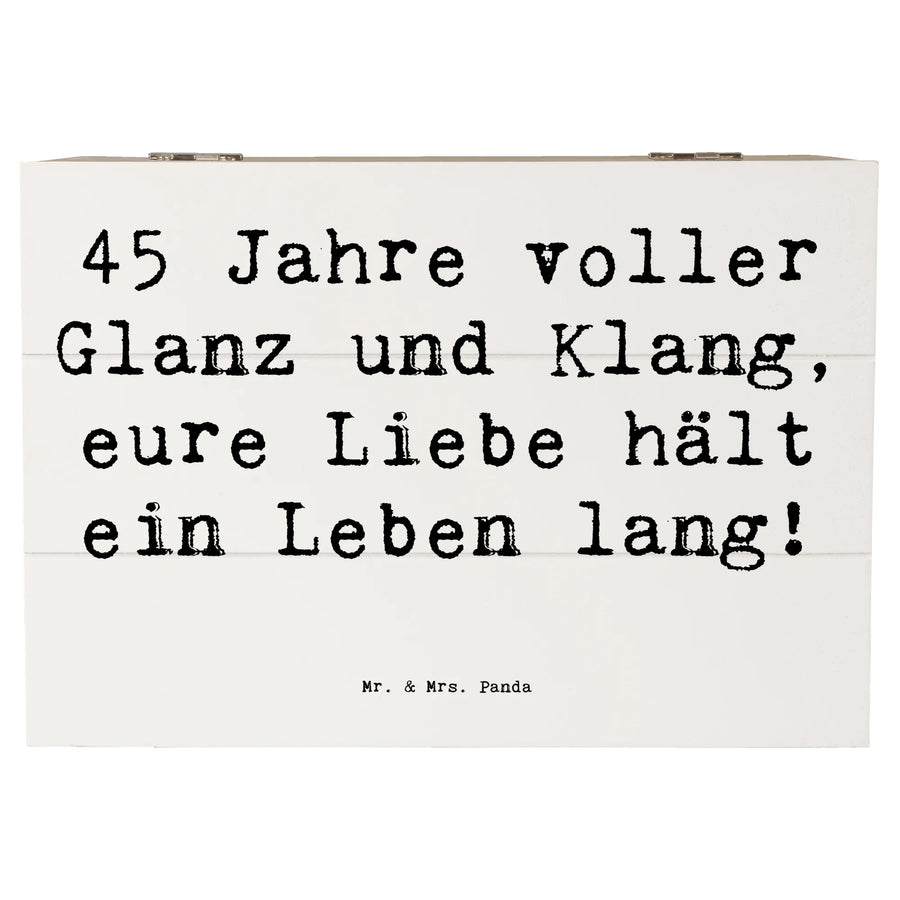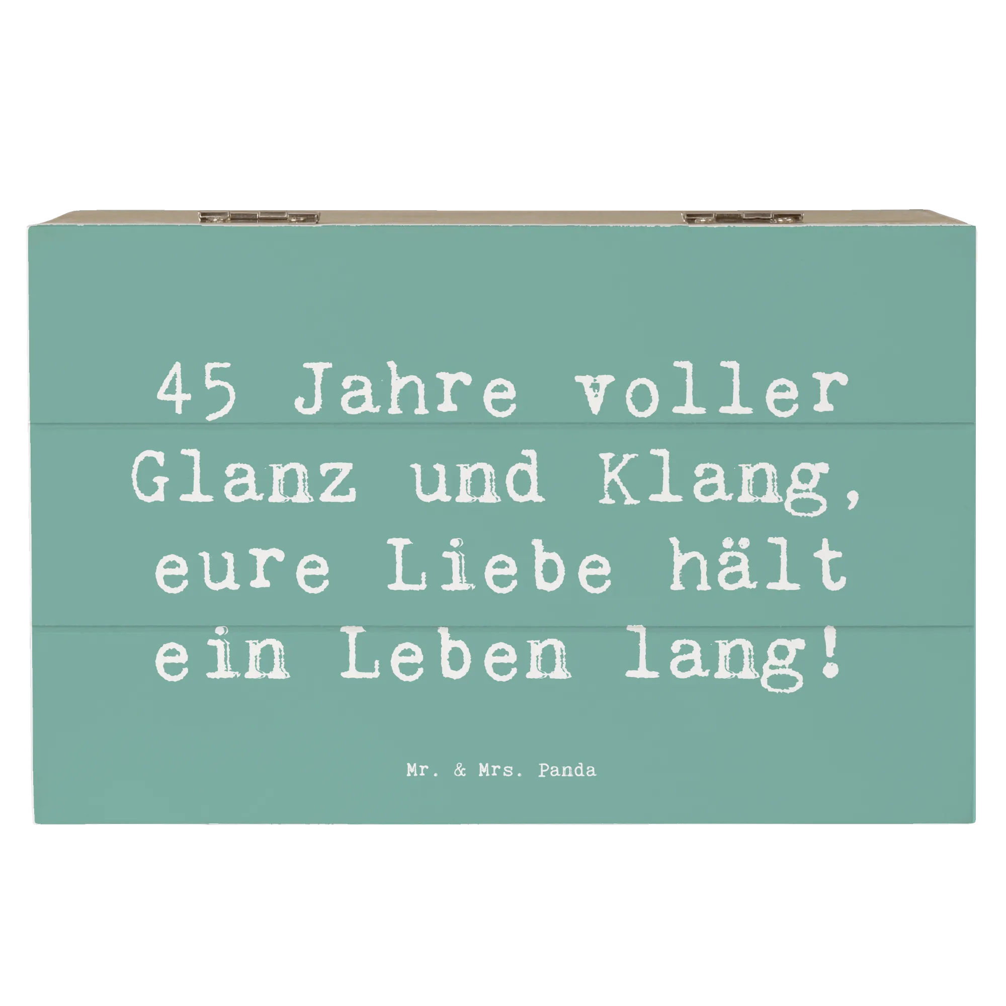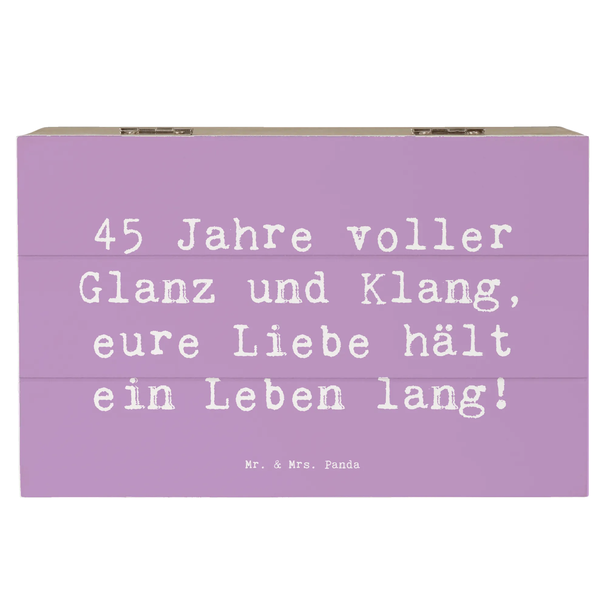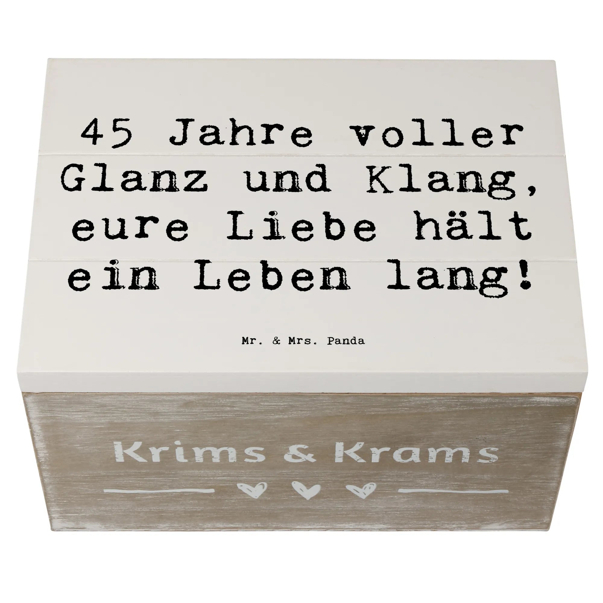 Suchst du nach dem perfekten Geschenk für das Ehepaar, das 45 Jahre voller Liebe und Glück miteinander geteilt hat? Dann ist die wunderschöne Holzkiste von Mr. & Mrs. Panda mit dem Motto "45 Jahre voller Glanz und Klang, eure Liebe hält ein Leben lang!" genau das Richtige!