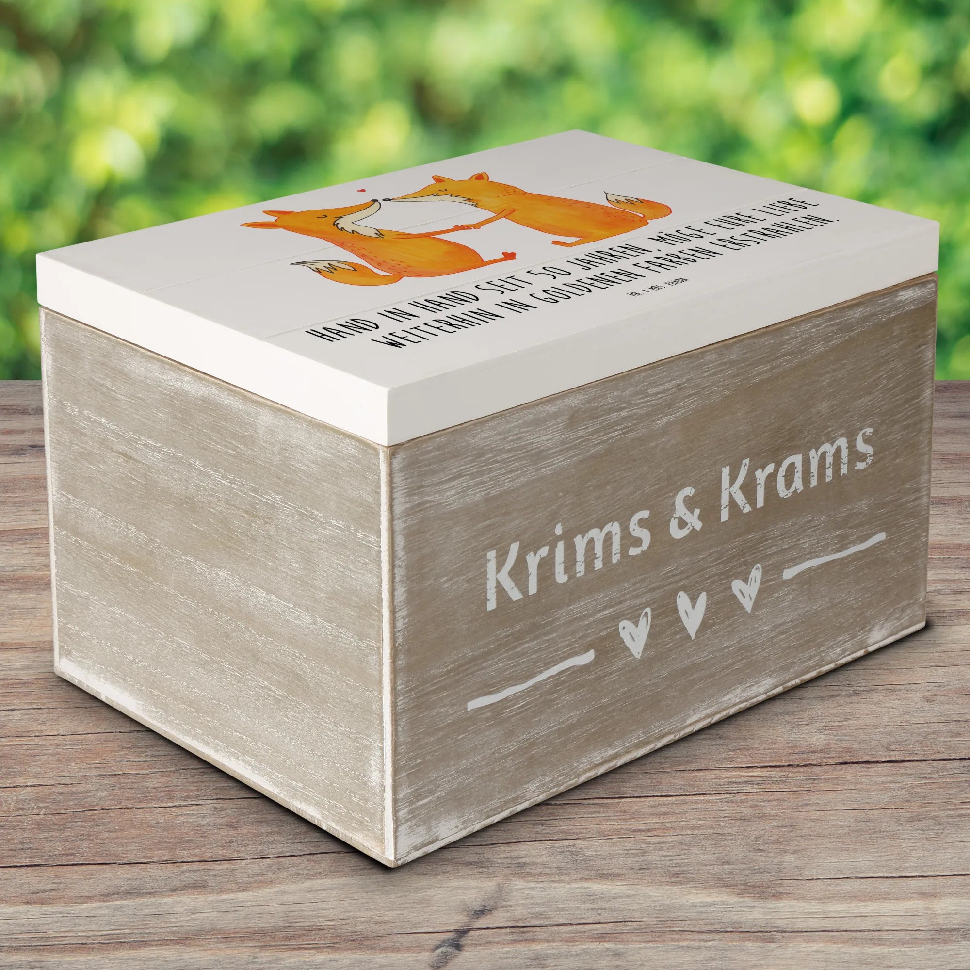 Die wunderschöne Holzkiste "50. Hochzeitstag Goldene Hochzeit" von Mr. & Mrs. Panda ist das perfekte Geschenk für Paare, die ihren goldenen Hochzeitstag feiern. Diese Erinnerungskiste wird nicht nur zum stilvollen Aufbewahrungsort für unverzichtbare Schätze, sondern auch zum symbolischen Ausdruck eurer gemeinsam verbrachten Jahre. Gedruckt mit dem liebevollen Slogan "Hand in Hand seit 50 Jahren, möge eure Liebe weiterhin in goldenen Farben erstrahlen", bringt sie eine besondere Note in jeden Raum und erinnert das Jubelpaar an die Höhepunkte ihrer Ehe.