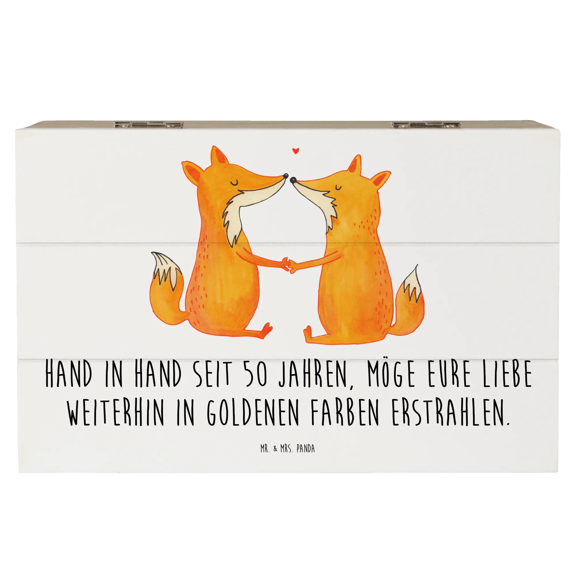 Suchst du nach dem perfekten Geschenk für den 50. Hochzeitstag? Unsere wunderschöne Holzkiste von Mr. & Mrs. Panda mit dem speziellen Motiv "50. Hochzeitstag Goldene Hochzeit" ist genau das Richtige!