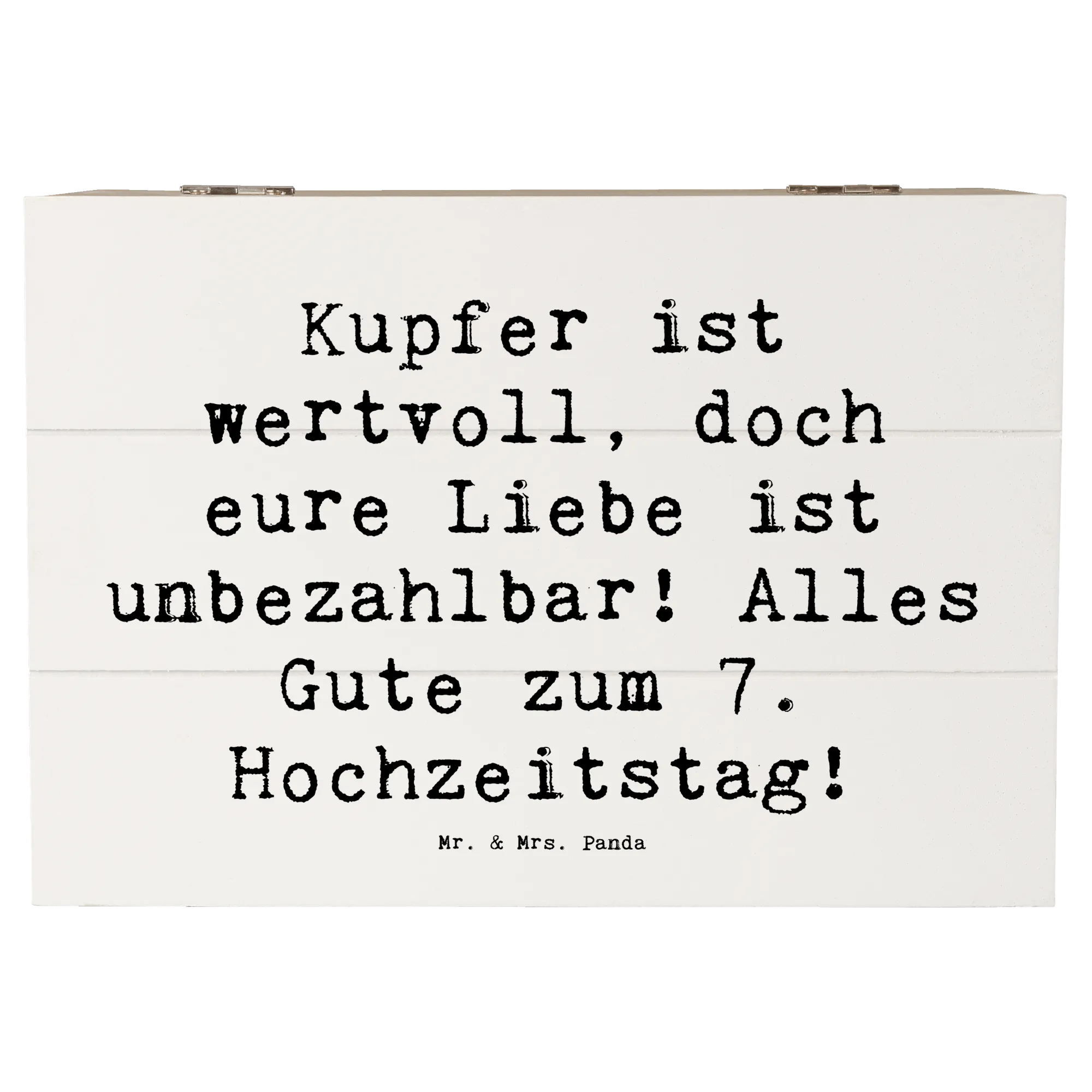 Entdecke die zauberhafte Holzkiste 7. Hochzeitstag Kupferhochzeit von Mr. & Mrs. Panda! Diese wunderschöne Erinnerungskiste ist nicht nur perfekt für den 7. Hochzeitstag, sondern auch für all deine besonderen Schätze. Mit der liebevollen Aufschrift "Kupfer ist wertvoll, doch eure Liebe ist unbezahlbar! Alles Gute zum 7. Hochzeitstag!" wird sie zum idealen Geschenk für frisch verheiratete Paare oder langjährige Liebespaare, die ihre wundervollen Erinnerungen aufbewahren möchten.