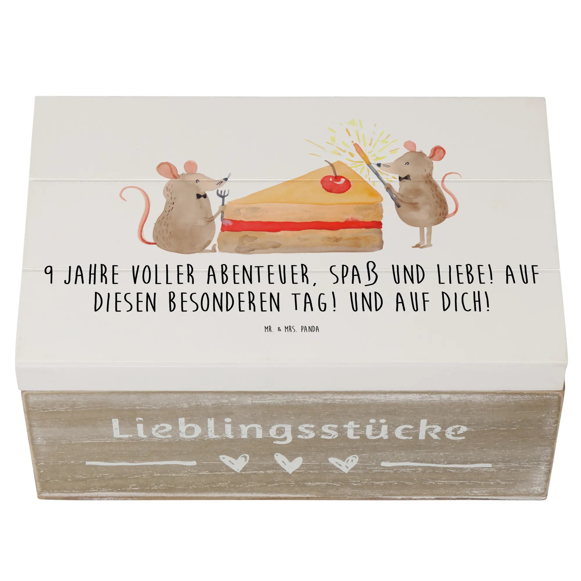 Die wunderschöne Holzkiste von Mr. & Mrs. Panda ist das perfekte Geschenk für den 9. Geburtstag! 🎉 Mit dem liebevoll gestalteten Motiv '9 Jahre voller Abenteuer, Spaß und Liebe! Auf diesen besonderen Tag! Und auf dich!' wird diese Kiste zu einem ganz besonderen Erinnerungsstück.