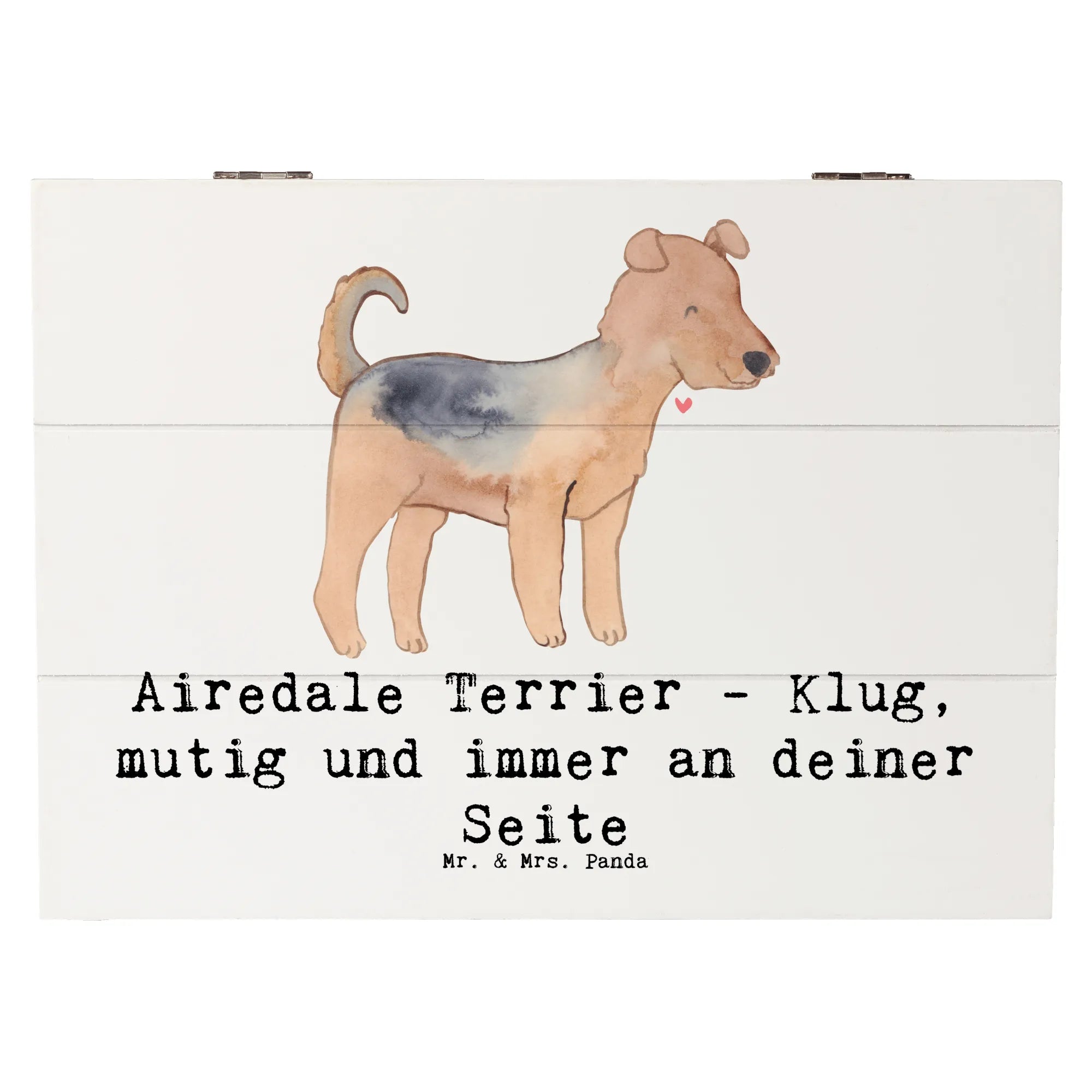 Die wunderschöne Holzkiste von Mr. & Mrs. Panda ist das perfekte Geschenk für alle Hundefans und speziell für die Liebhaber des Airedale Terriers! 🐶 Diese Schatzkiste, bedruckt mit dem liebevollen Motiv des Airedale Terriers und dem passenden Spruch "Airedale Terrier - Klug, mutig und immer an deiner Seite", bringt Freude und Erinnerungen in jedes Zuhause.
