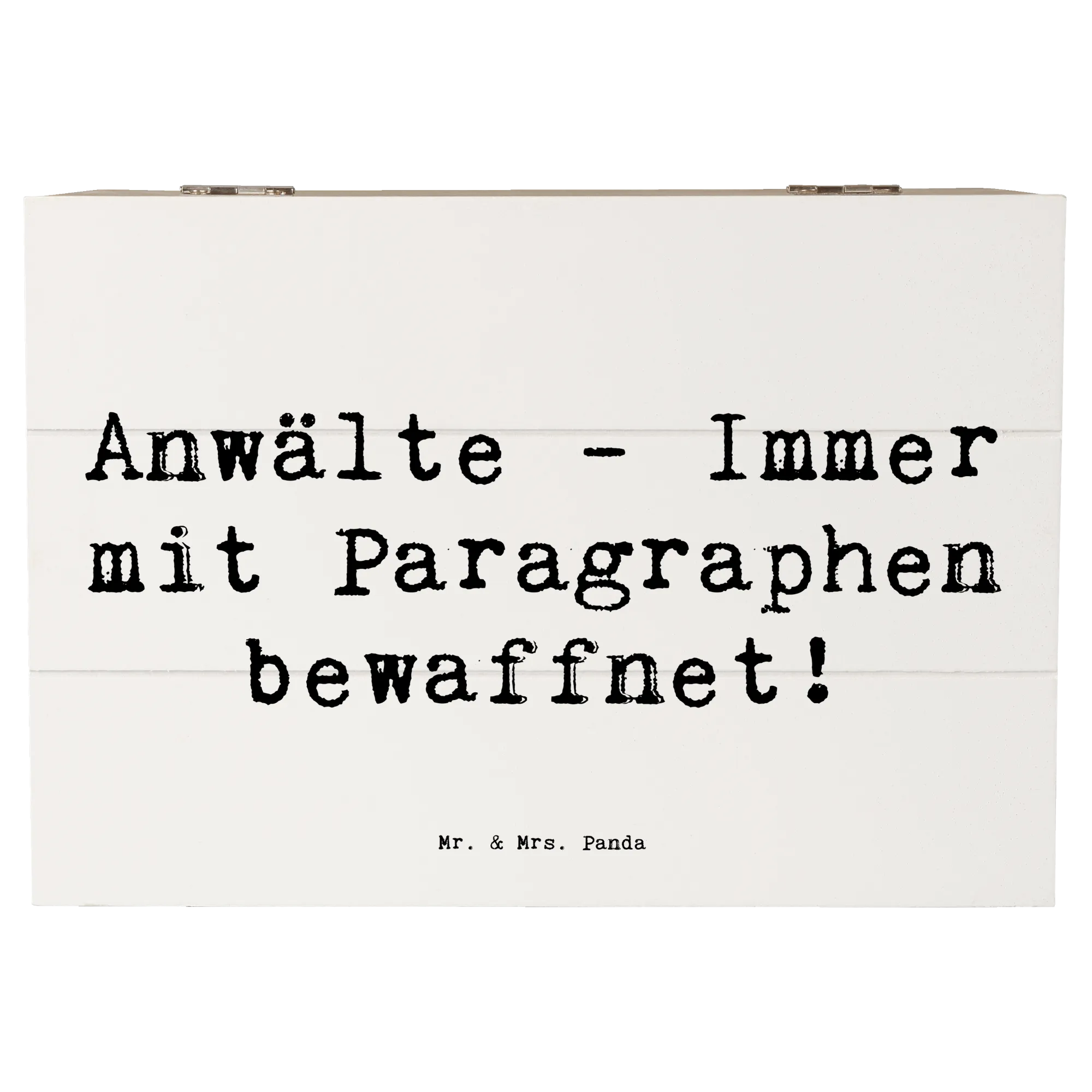 Die wunderschöne Holzkiste von Mr. & Mrs. Panda mit dem Motiv Anwalt - „Anwälte - Immer mit Paragraphen bewaffnet!“ ist das perfekte Geschenk für alle Juristen und Rechtsanwälte. Diese liebevoll gestaltete Erinnerungskiste bietet nicht nur einen stilvollen Aufbewahrungsort für persönliche Schätze, sondern ist auch ein ideales Geschenk für Anlässe wie Berufsabschiede oder Jubiläen.