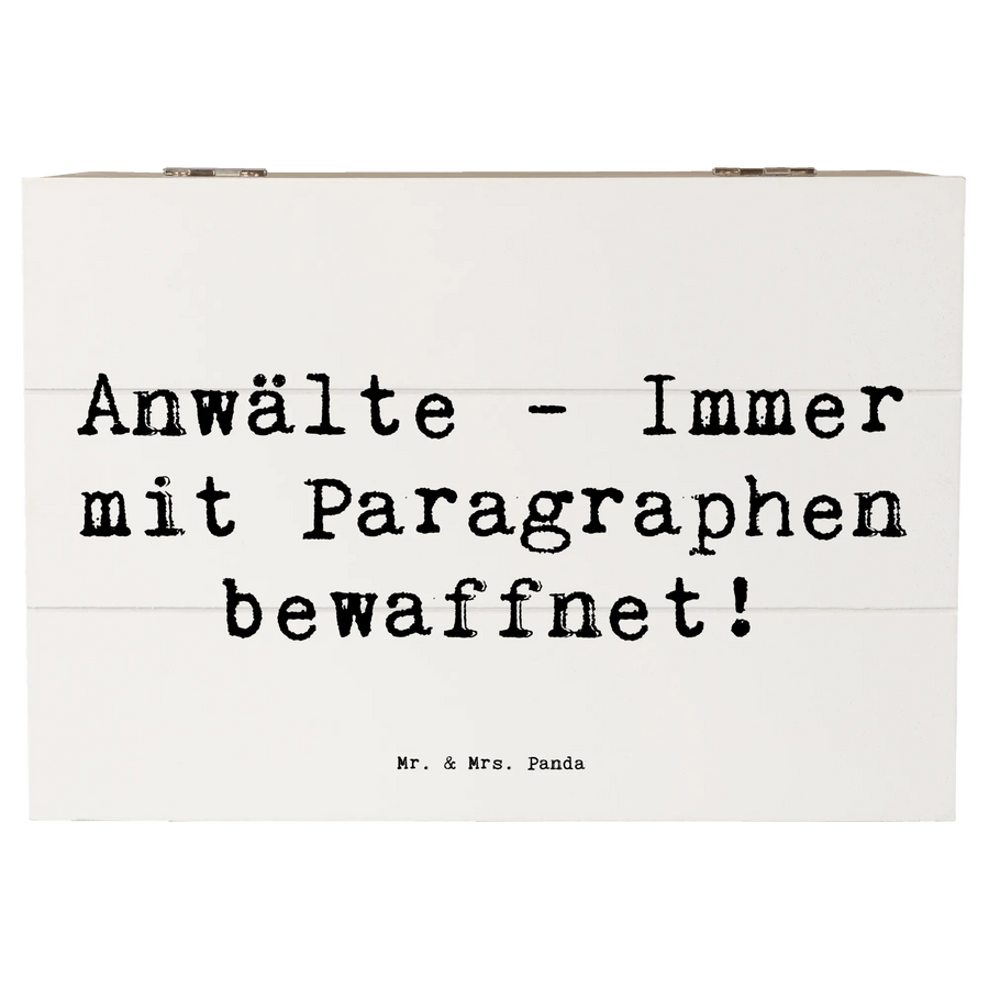 Die Holzkiste "Anwalt" von Mr. & Mrs. Panda ist nicht einfach nur eine Kiste, sondern ein wahres Schmuckstück für alle juristischen Talente und Rechtsliebhaber! Mit ihrem charmanten Design und dem spritzigen Slogan "Anwälte - Immer mit Paragraphen bewaffnet!" wird sie garantiert zum Blickfang in jedem Büro oder zu Hause.