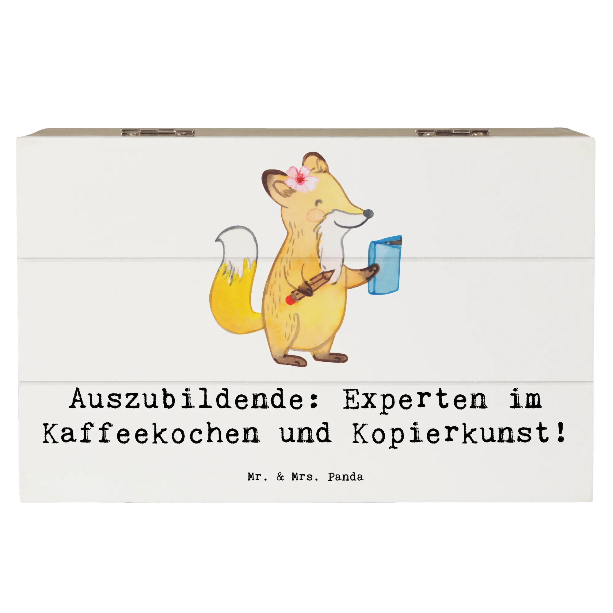 Die wunderbare Holzkiste "Auszubildende" von Mr. & Mrs. Panda ist das perfekte Geschenk für alle, die gerade eine Ausbildung beginnen oder darin stecken. Mit ihrem charmanten Design und dem liebevollen Slogan "Auszubildende: Experten im Kaffeekochen und Kopierkunst!" ist diese Kiste nicht nur ein praktischer Aufbewahrungsort, sondern auch ein echter Blickfang.