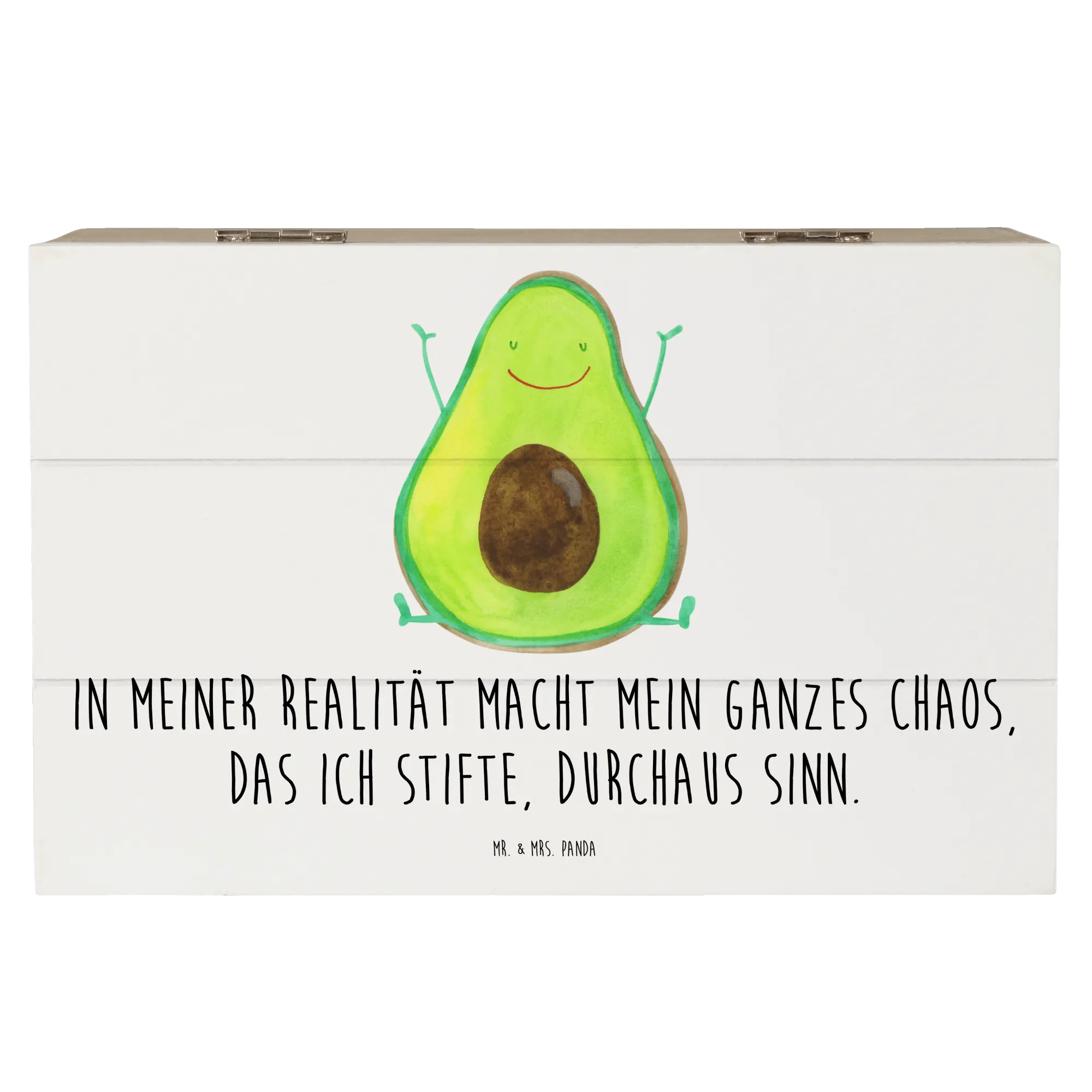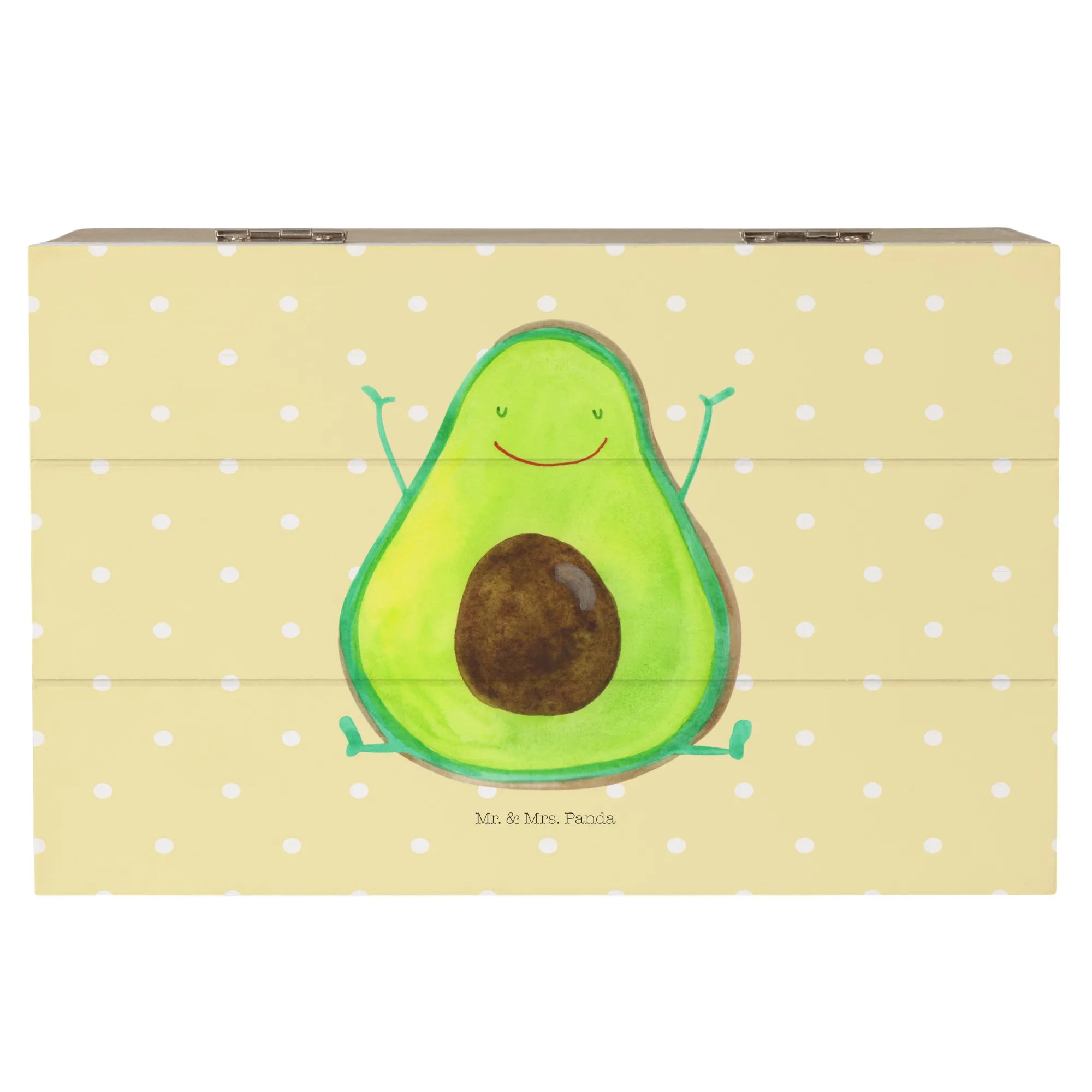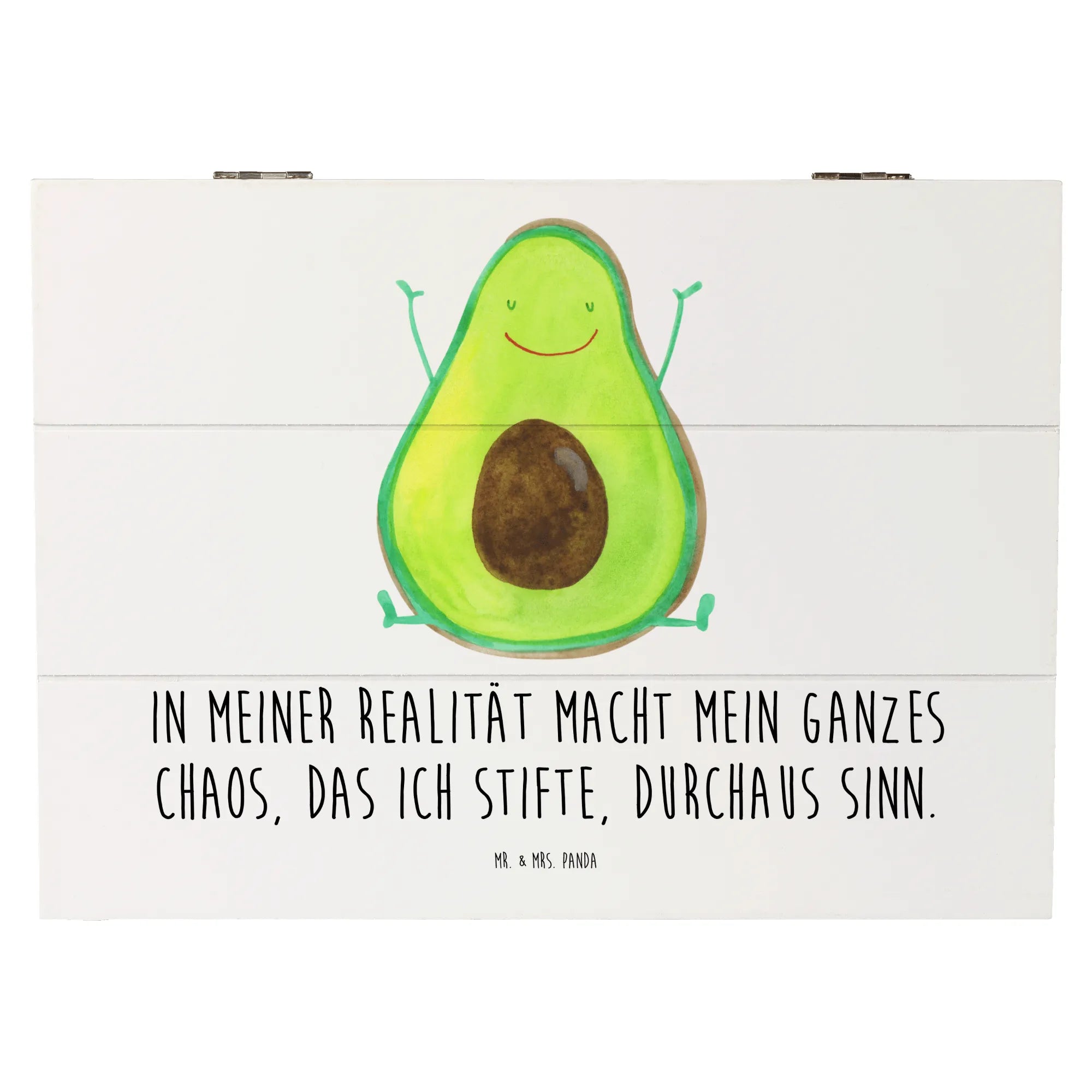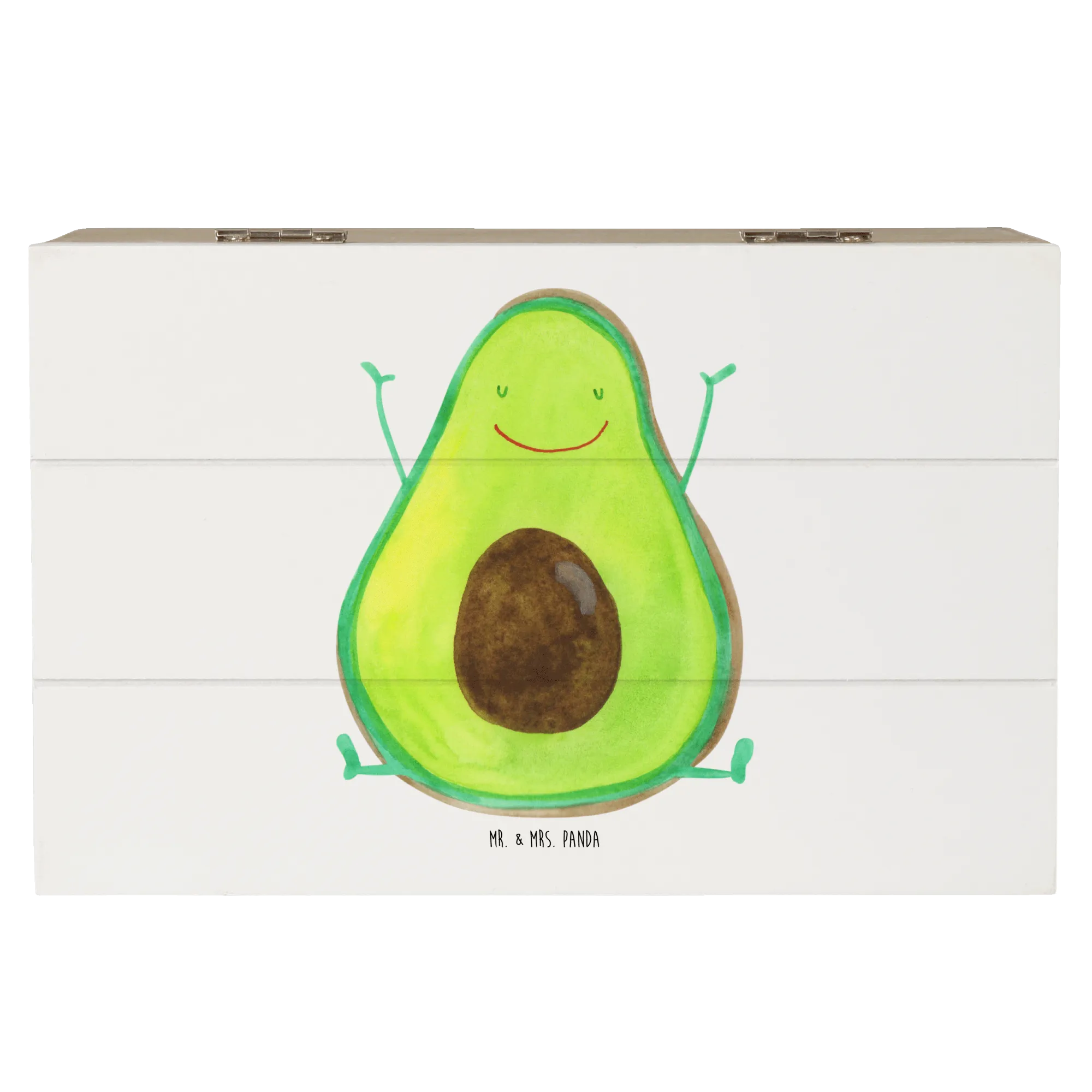 Die Holzkiste 'Avocado Happy' von Mr. & Mrs. Panda ist das perfekte Geschenk für alle, die ein kreatives Chaos in ihrem Leben lieben! Mit ihrem fröhlichen Design einer glücklichen Avocado, die begeistert ihre Arme in die Luft hebt, bringt sie nicht nur Freude, sondern sorgt auch für den idealen Aufbewahrungsort deiner schönsten Erinnerungen.