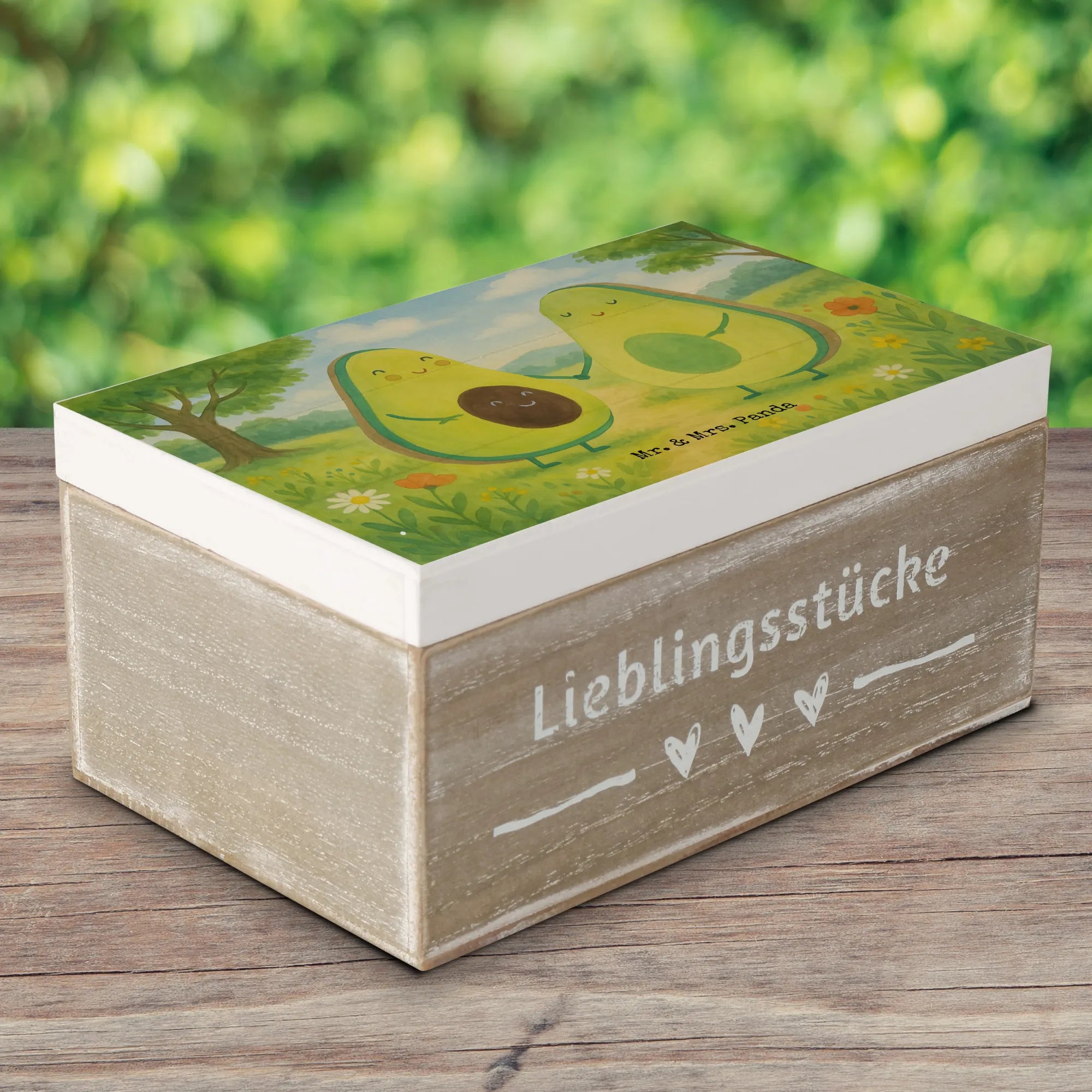 Holzkiste Avocado Pärchen Design - 22 x 15 cm - mit Spruch