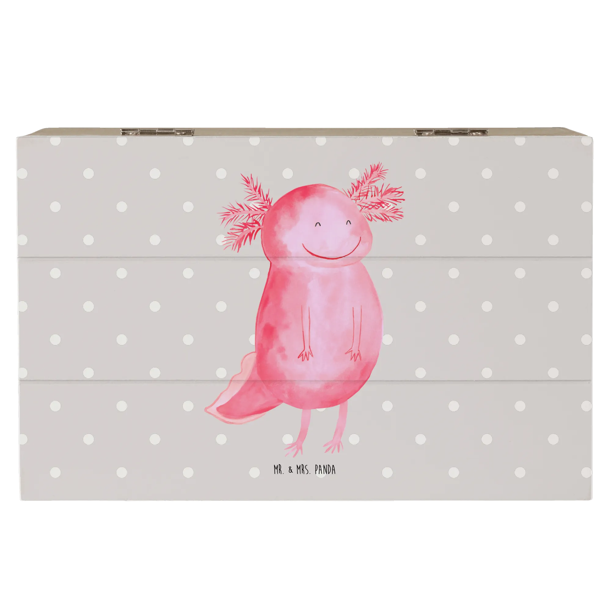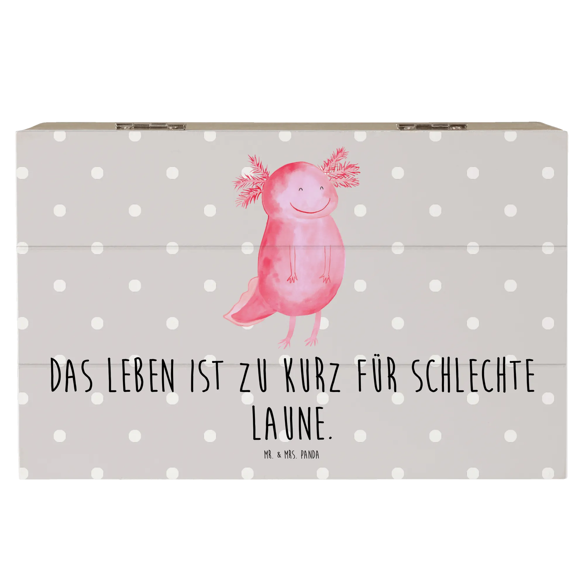 Holzkiste Axolotl Glücklich - 22 x 15 cm - mit Spruch - Grau Pastell