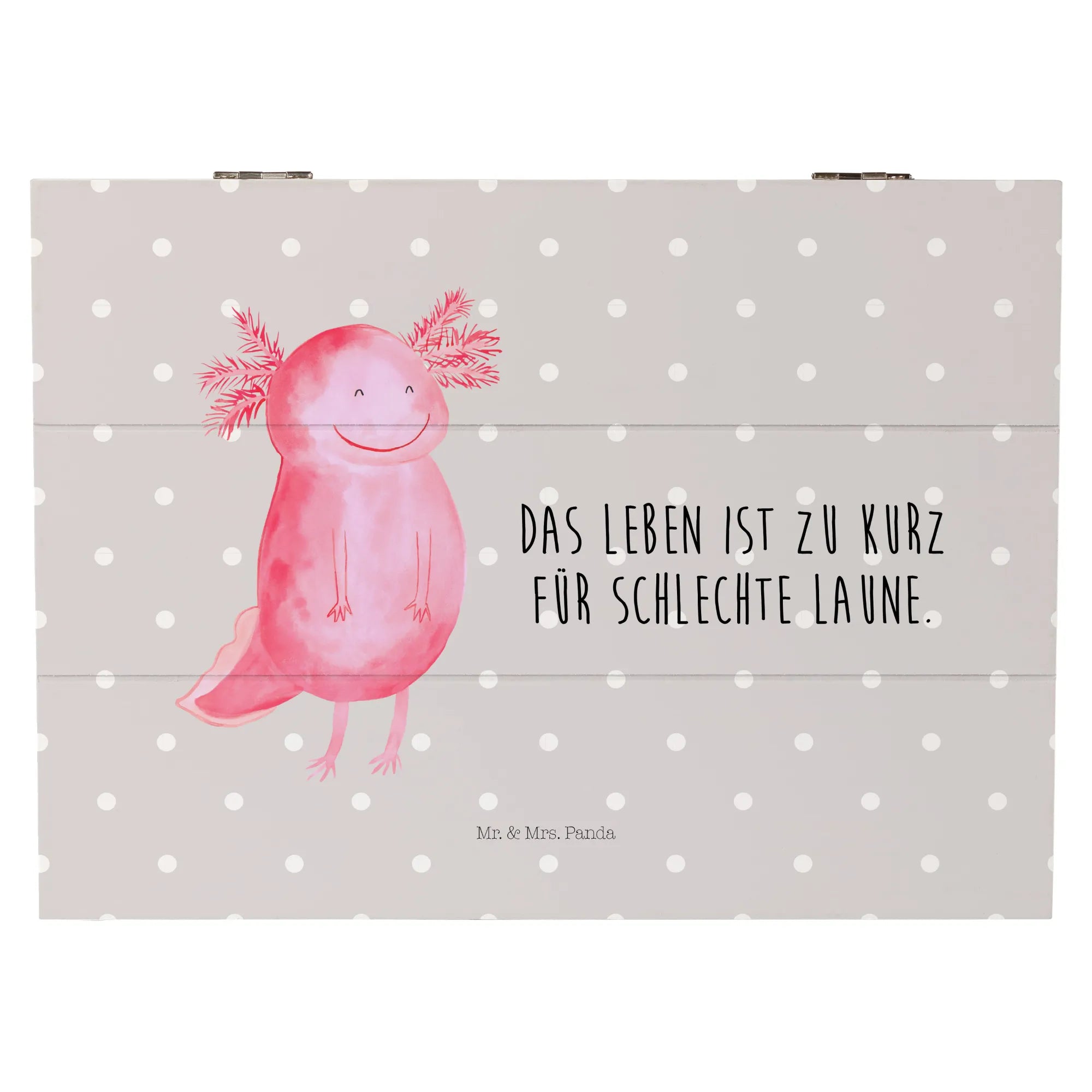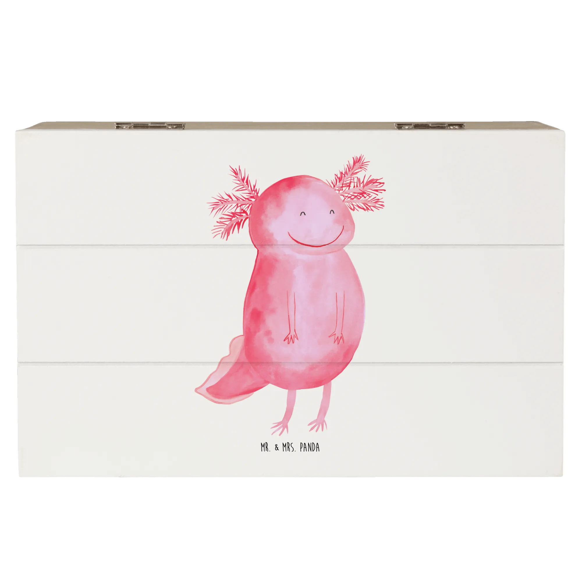Die Holzkiste "Axolotl glücklich" von Mr. & Mrs. Panda ist das perfekte Geschenk für alle, die gute Laune lieben!