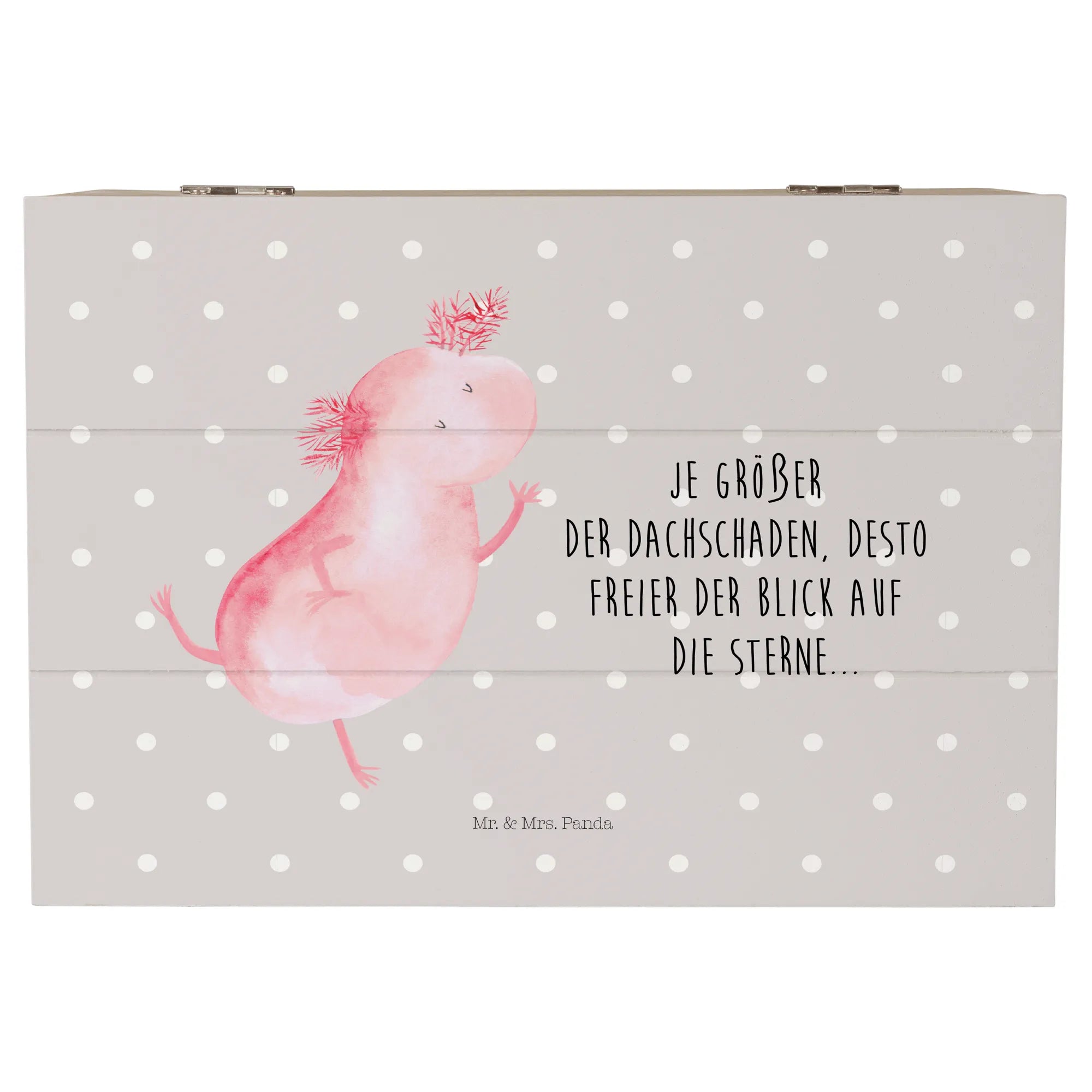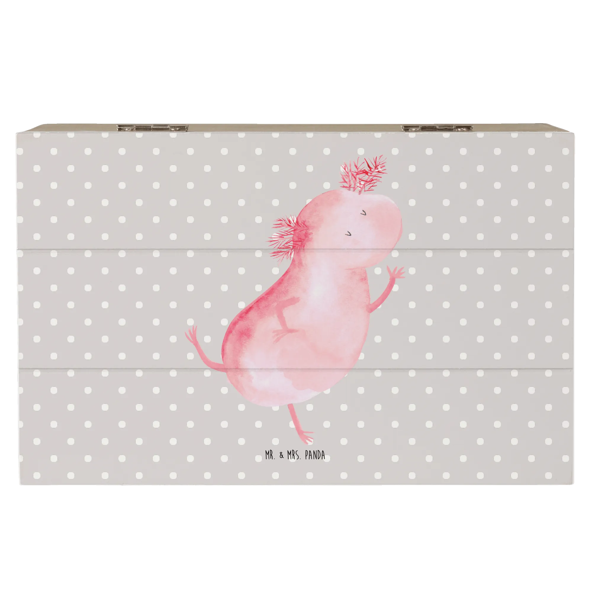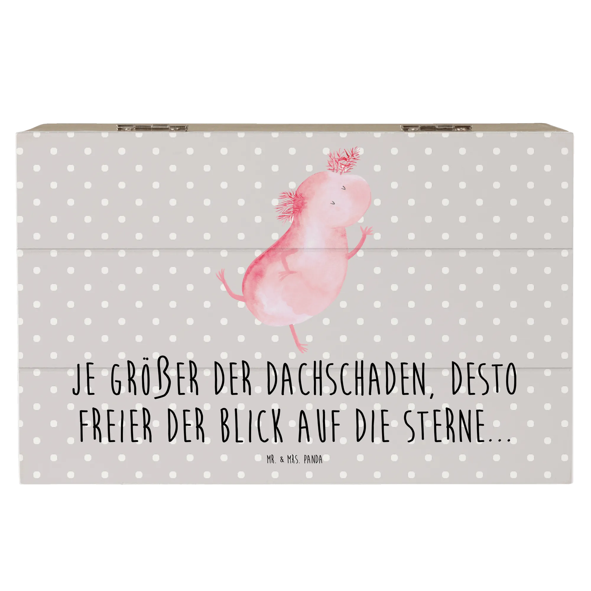 Holzkiste Axolotl Tanzen - 22 x 15 cm - mit Spruch - Grau Pastell