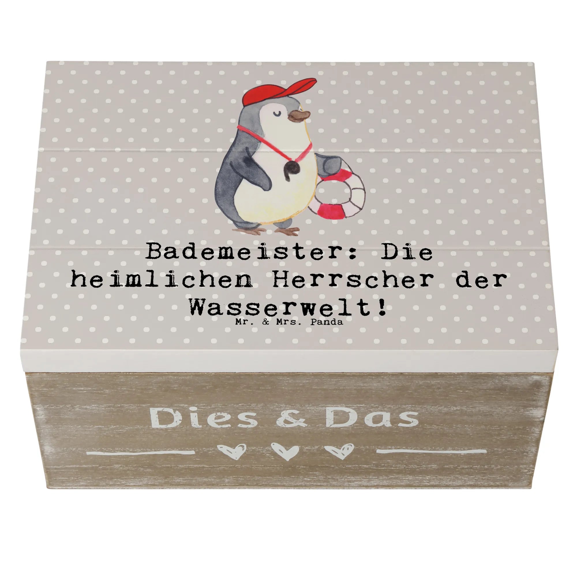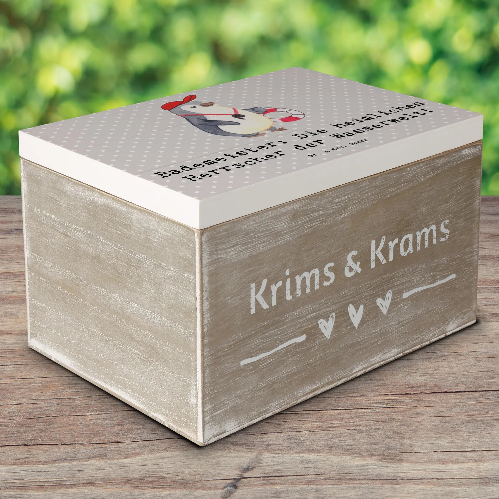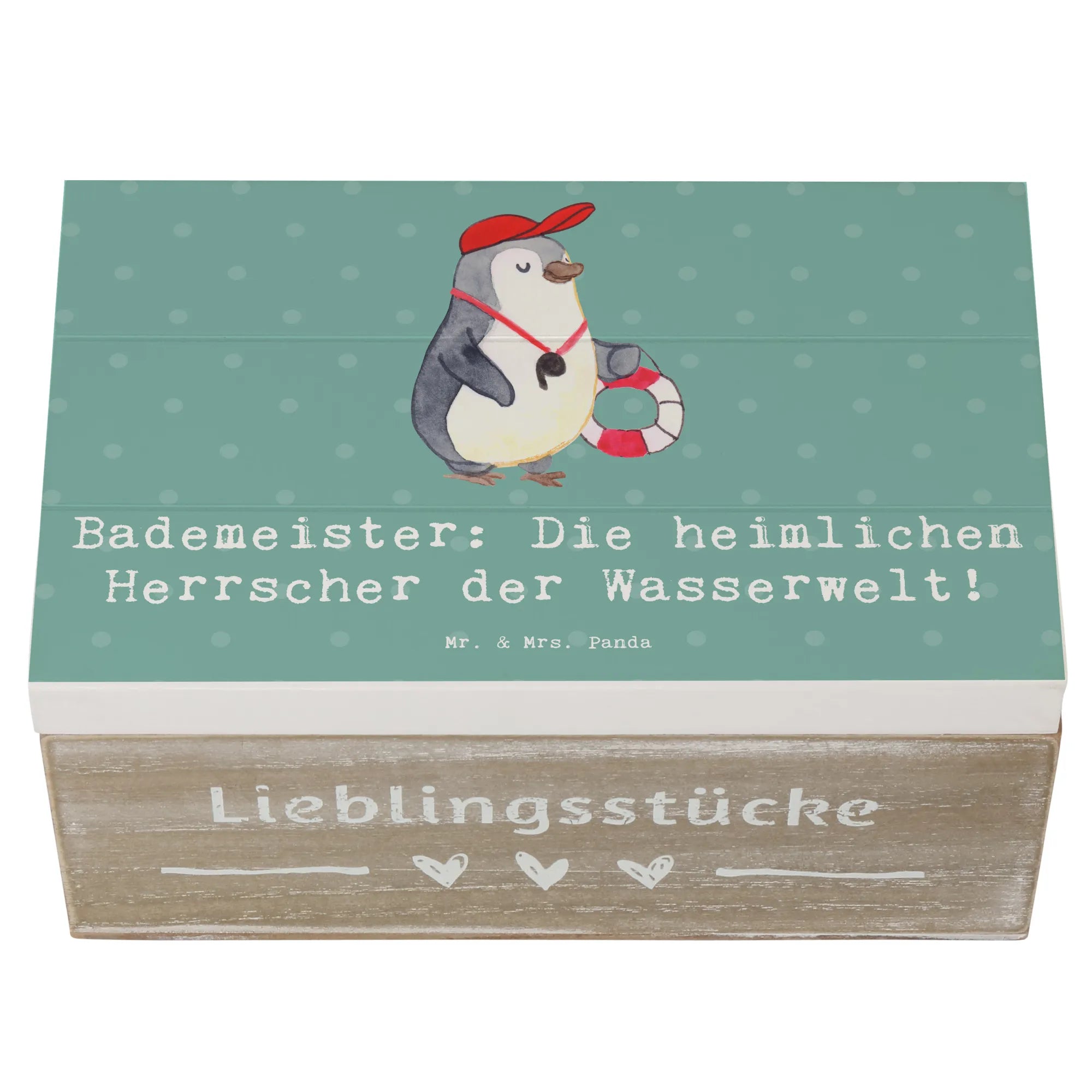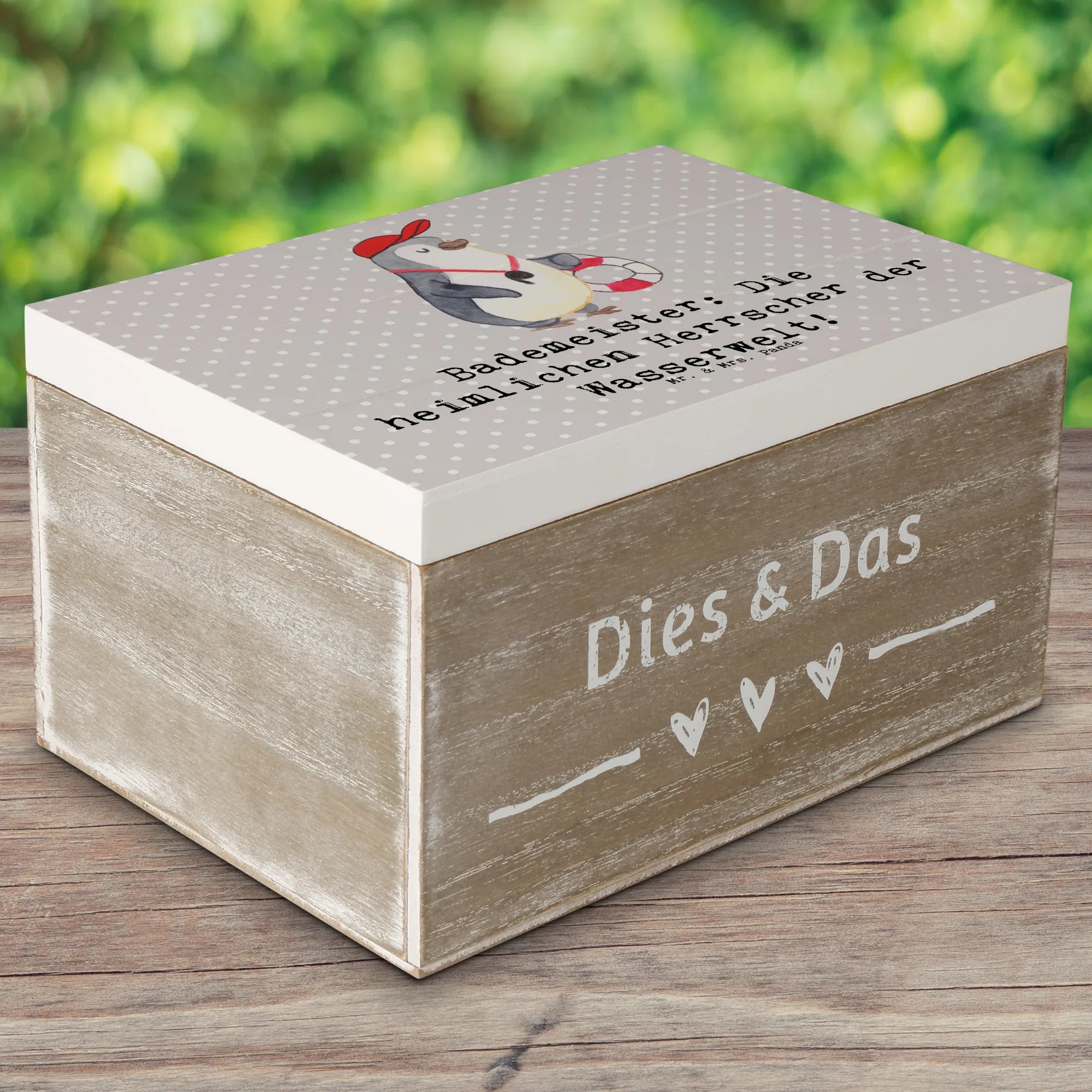Die Holzkiste "Bademeister: Die heimlichen Herrscher der Wasserwelt!" aus der Berufe Kollektion von Mr. & Mrs. Panda ist das perfekte Geschenk für kleine und große Wasserratten!