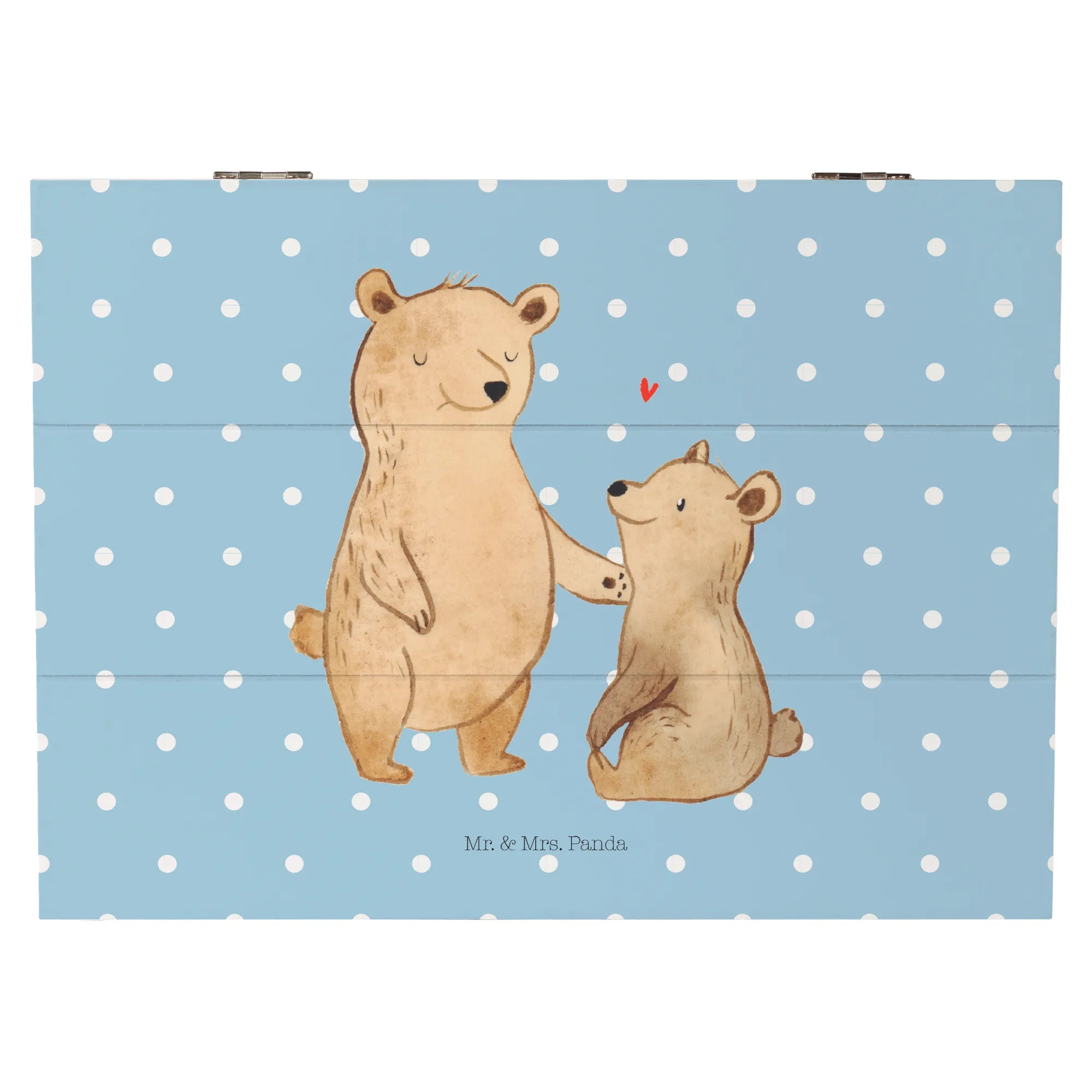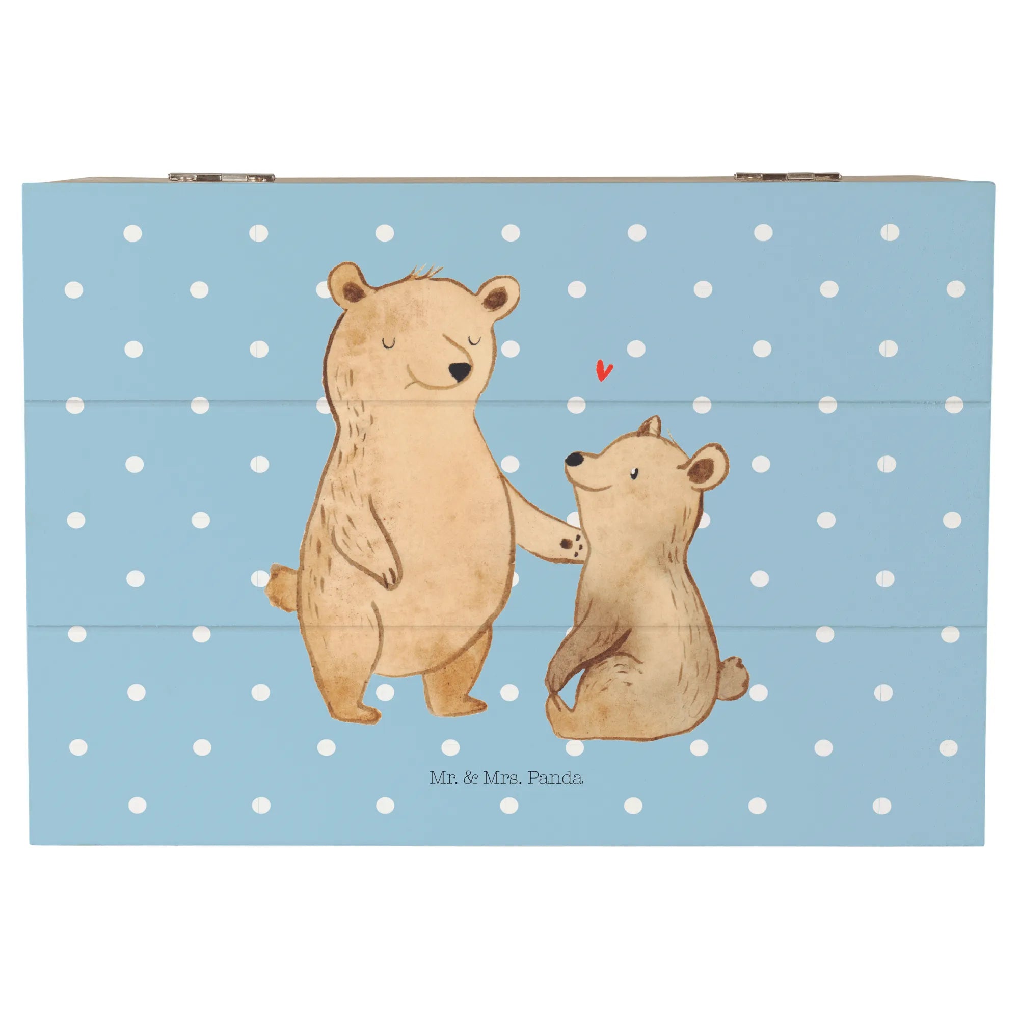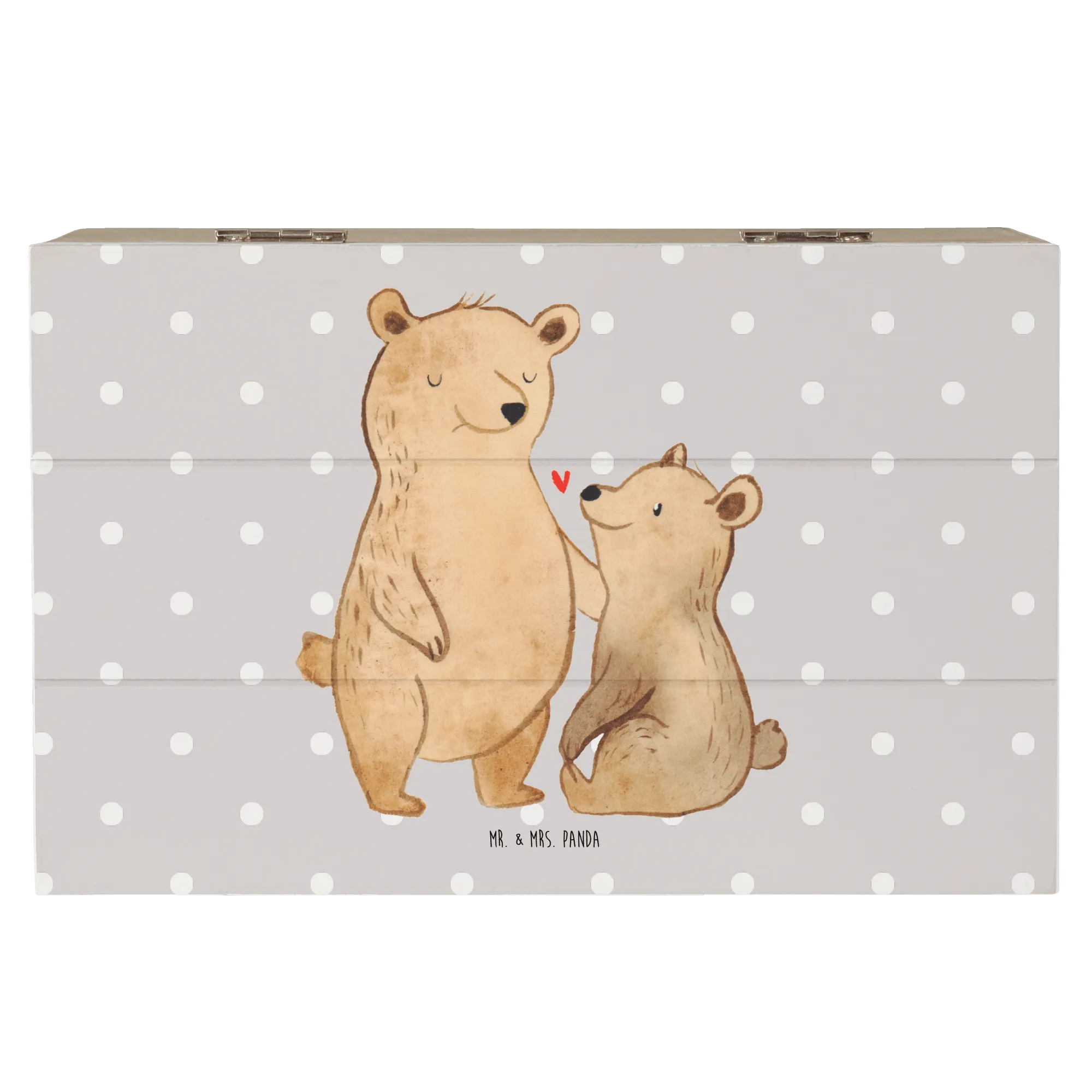Mit einer Größe von 19 x 12 cm bietet diese robuste Holzfaser-Truhe ausreichend Platz für Erinnerungen, Fotos und kleine Geschenke. Die bezaubernde Illustration eines großen Bären, der liebevoll auf einen kleineren Bären blickt, vermittelt ein warmes Gefühl von Liebe und Verbundenheit.