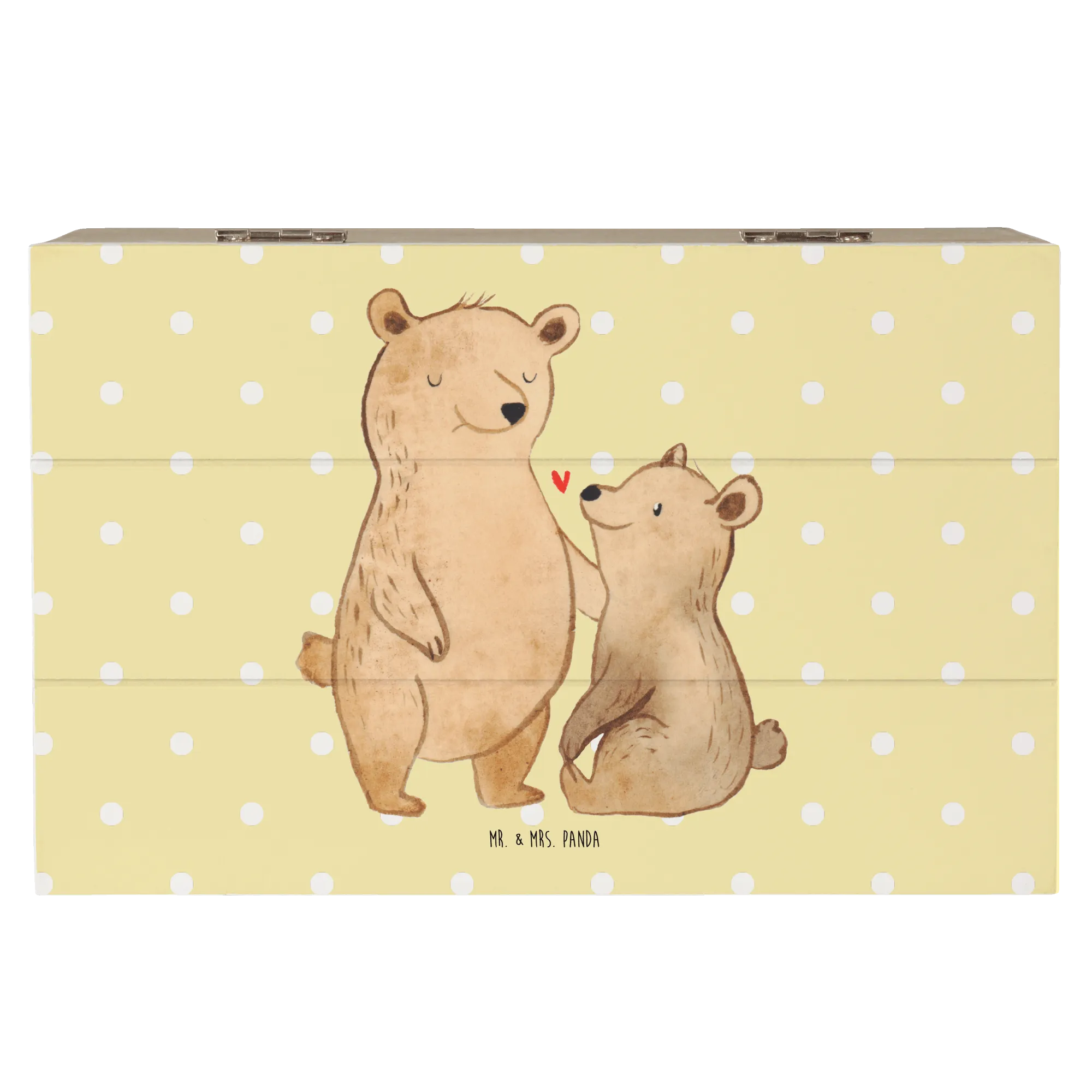 Das süße Bär-Motiv und der familäre Touch machen diese Holzkiste zu einem perfekten Geschenk für jeden Anlass – ob für Mama und Papa, für die Schwester, die Oma oder den Opa. In der Familien Kollektion von Mr. & Mrs. Panda findest du immer das passende Geschenk, das von Herzen kommt.