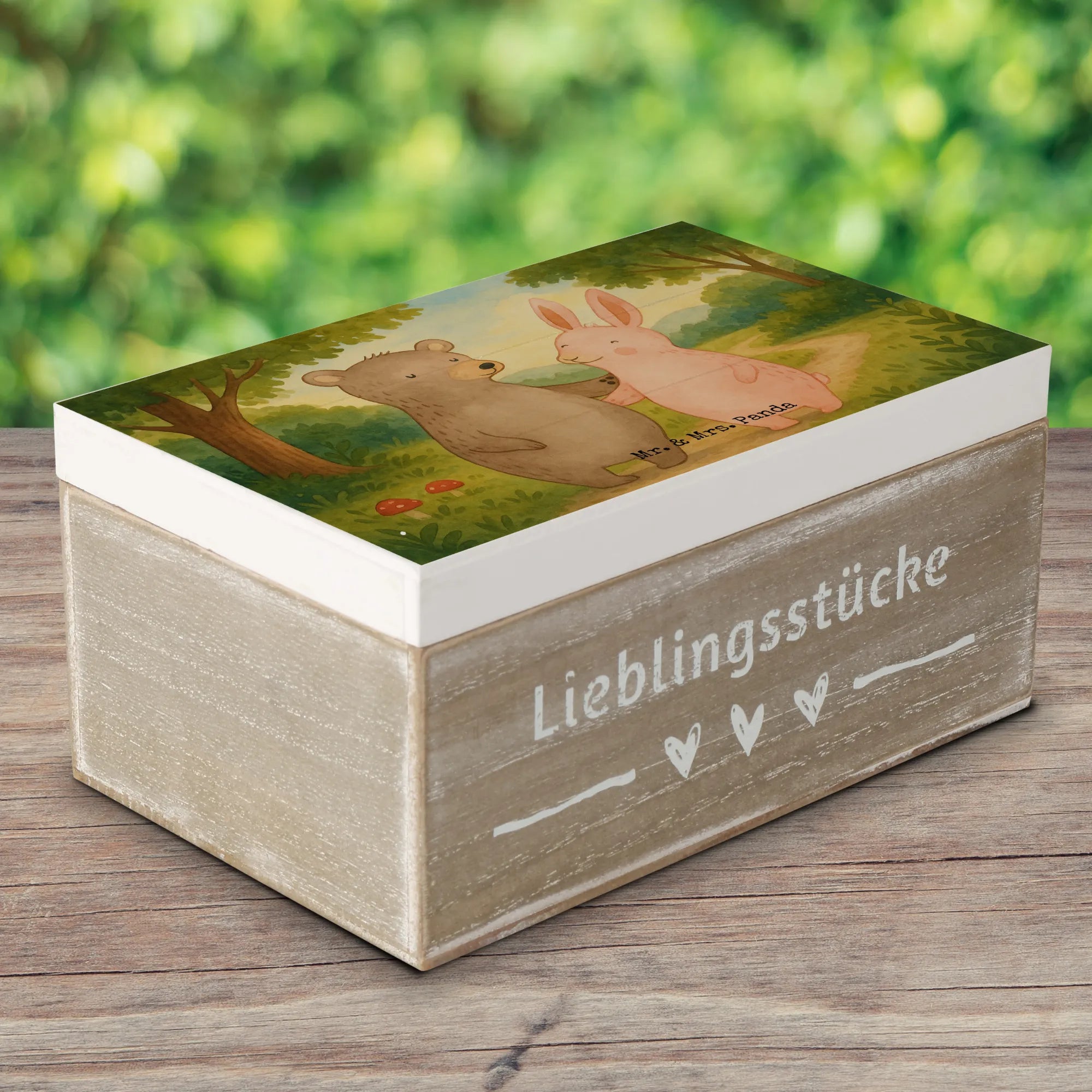 Holzkiste Bär und Hase Umarmen Design - 22 x 15 cm - mit Spruch