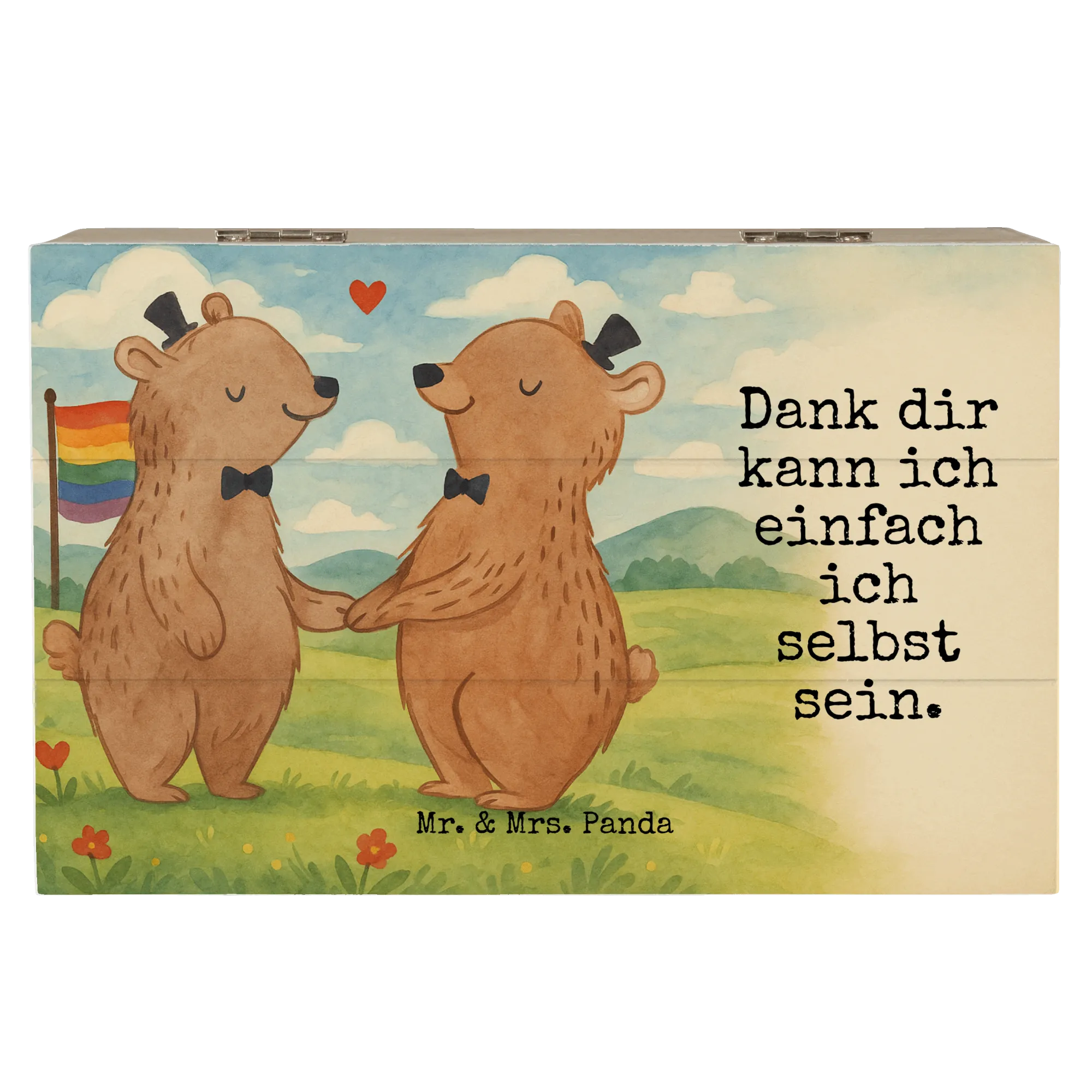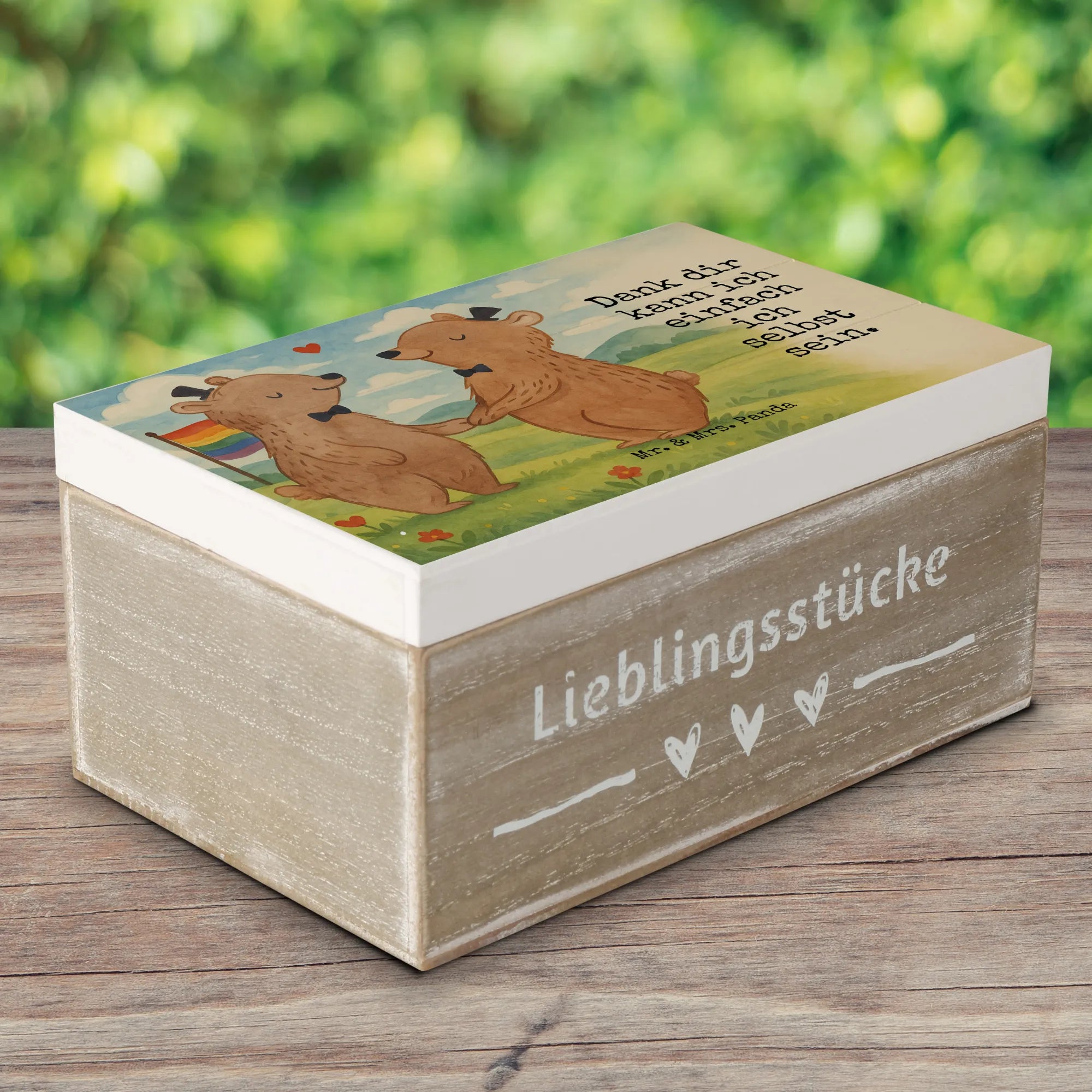 Holzkiste Bären Gay Pride Design - 22 x 15 cm - mit Spruch