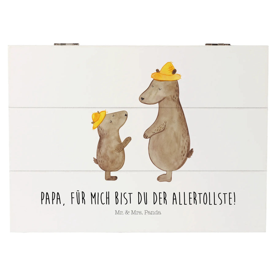 Die wunderschöne Holzkiste von Mr. & Mrs. Panda mit dem zauberhaften Motiv "Bären mit Hut" ist das perfekte Geschenk für deinen Lieblings-Papa!