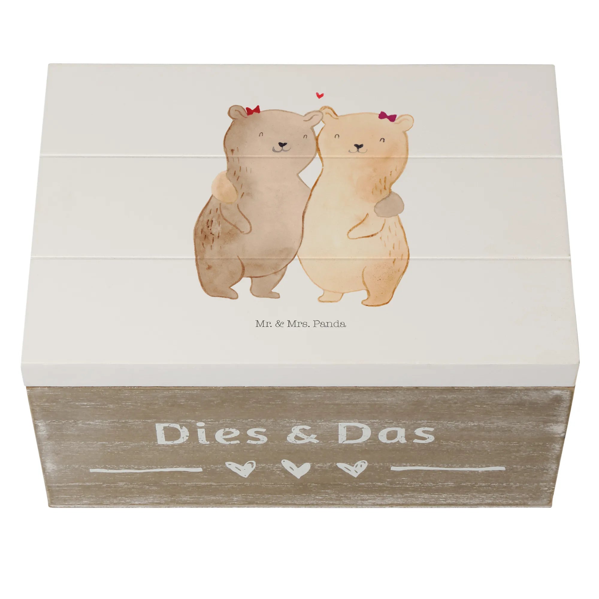Entdecke die liebevolle Holzkiste von Mr. & Mrs. Panda mit dem zauberhaften Motiv "Bären Schwestern"! Diese schöne Kiste ist nicht nur eine praktische Aufbewahrungsmöglichkeit für all deine wertvollen Schätze, sondern auch ein wunderbares Geschenk für deine Schwester oder die ganze Familie!