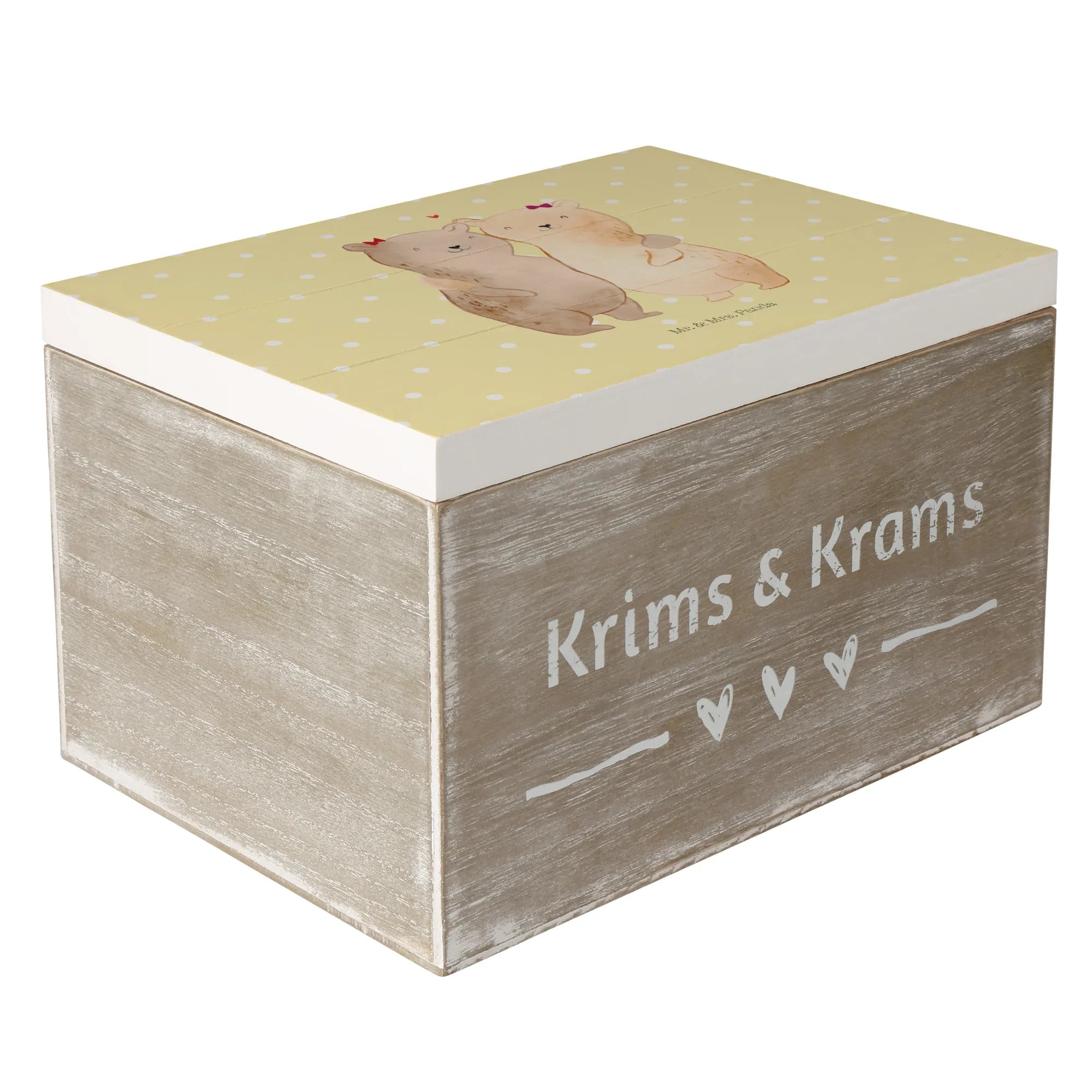 Die bezaubernde Holzkiste mit dem Motiv 'Bären Schwestern' von Mr. & Mrs. Panda ist nicht nur ein schmuckes Accessoire, sondern auch der perfekte Aufbewahrungsort für all deine kostbaren Erinnerungen! Ob als Erinnerungskiste für festliche Anlässe wie Kommunion oder Konfirmation, als Dekokiste für die Kinderzimmer, oder einfach als Schatzkiste für deine kleinen Schätze – diese Aufbewahrungsbox macht überall eine gute Figur!