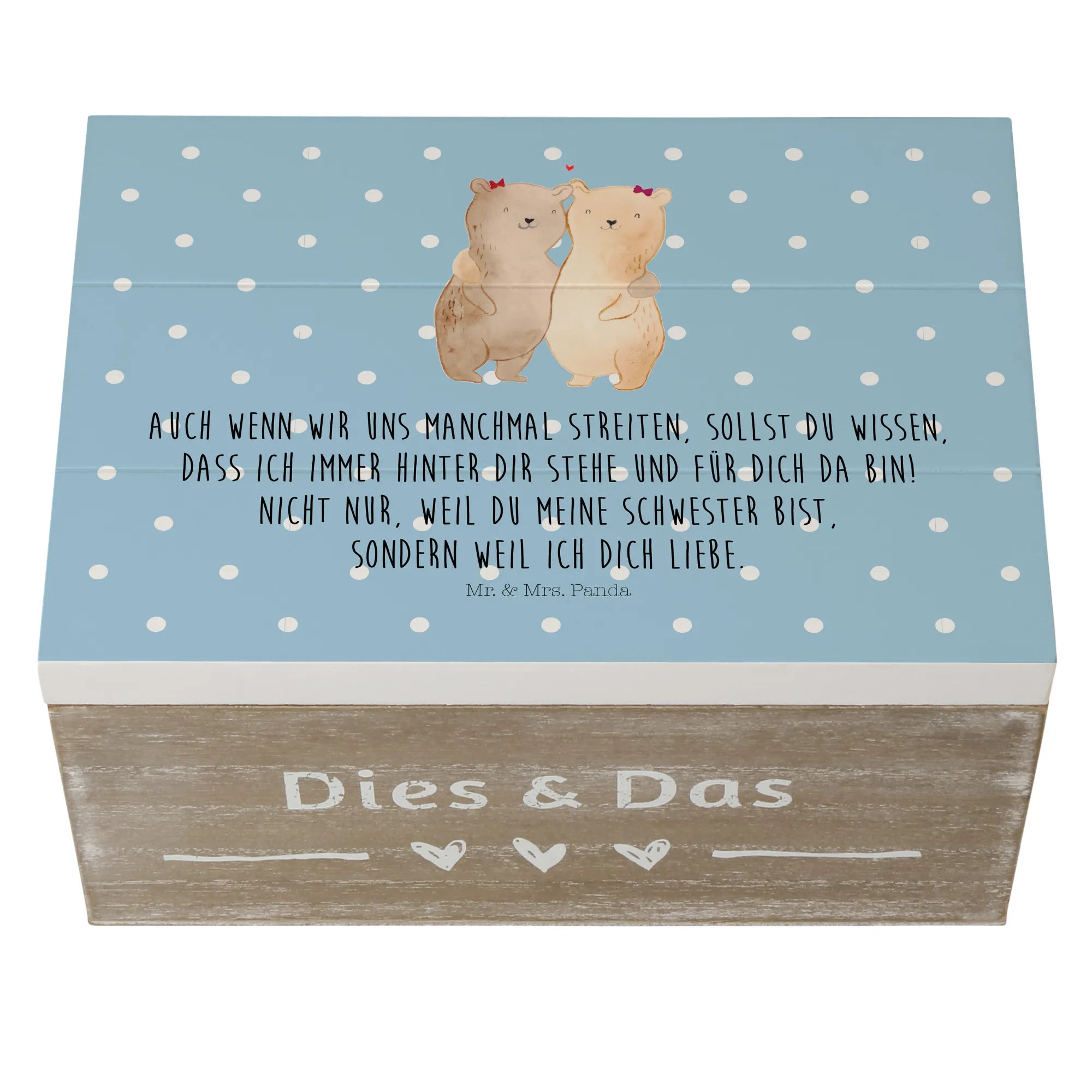 Verschenke mit dieser Holzkiste von Mr. & Mrs. Panda eine liebevolle Erinnerung, die deine Schwester nie vergessen wird! 🎁