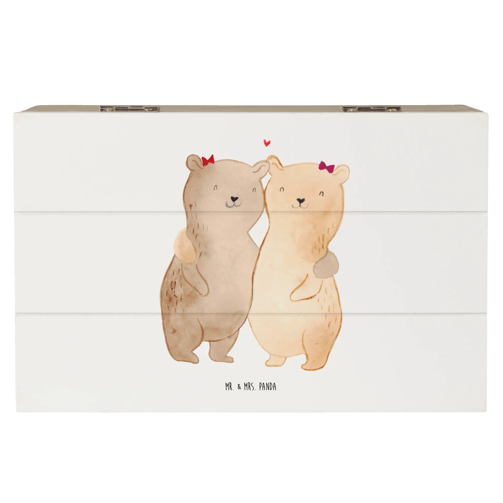 Holzkiste Bären Schwestern - 19 x 12 cm - mit Spruch - Weiß