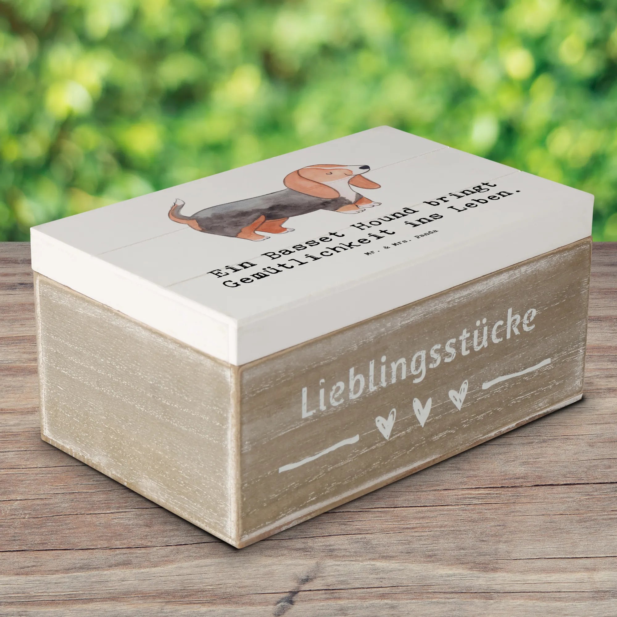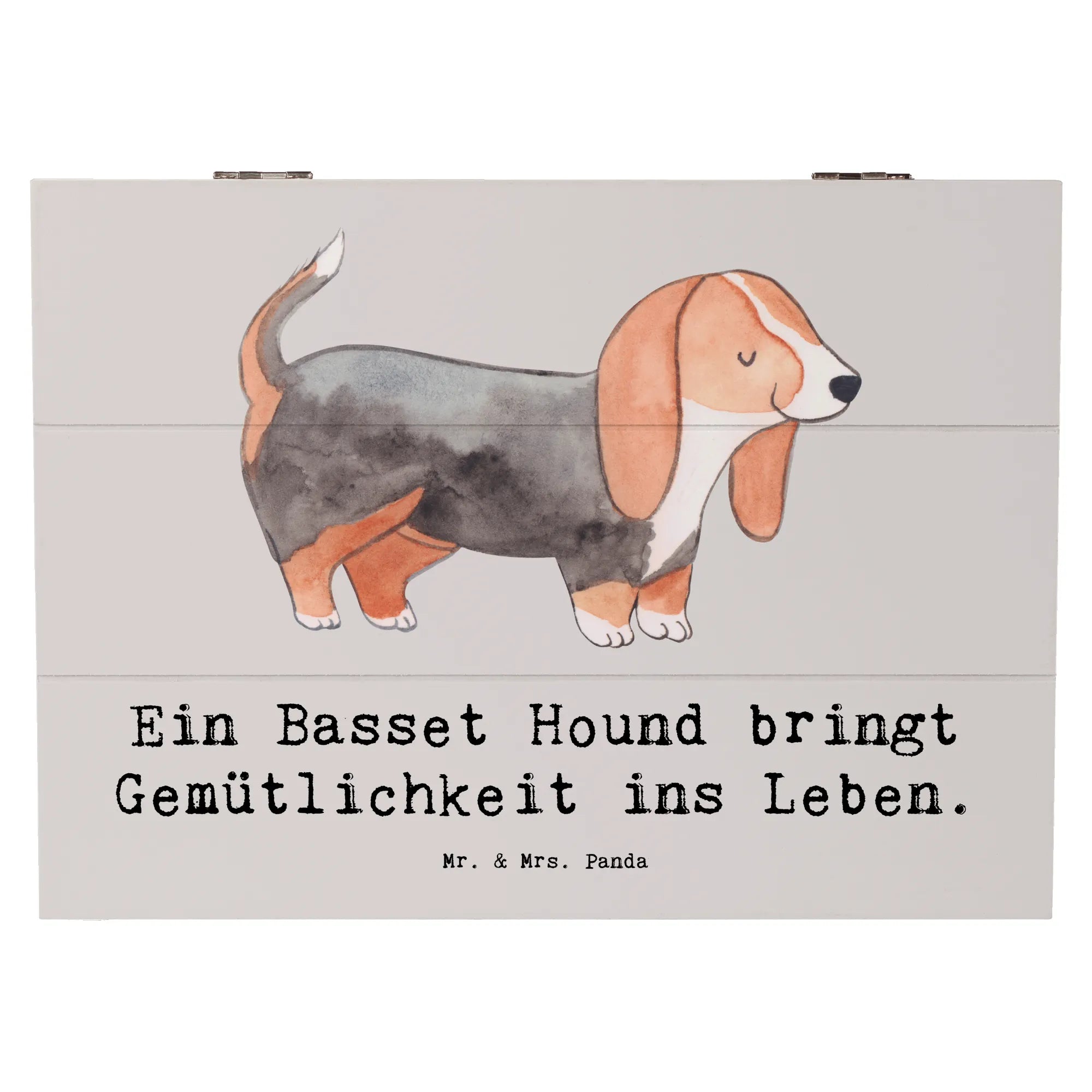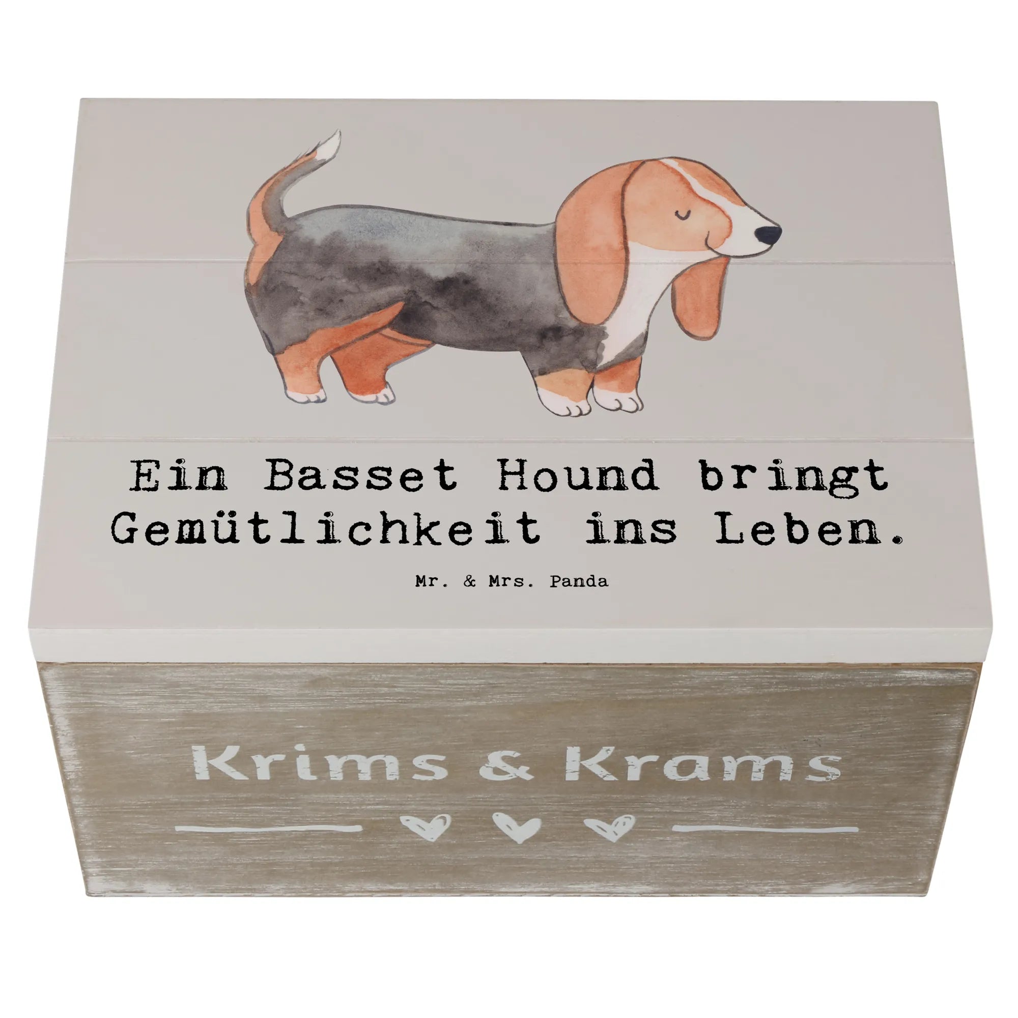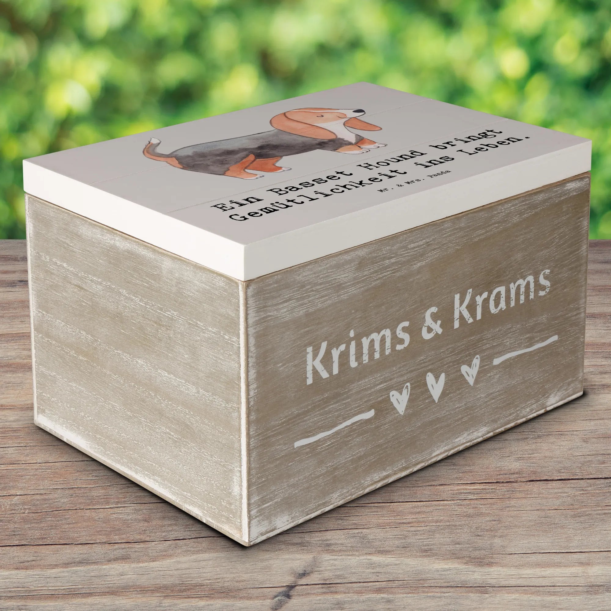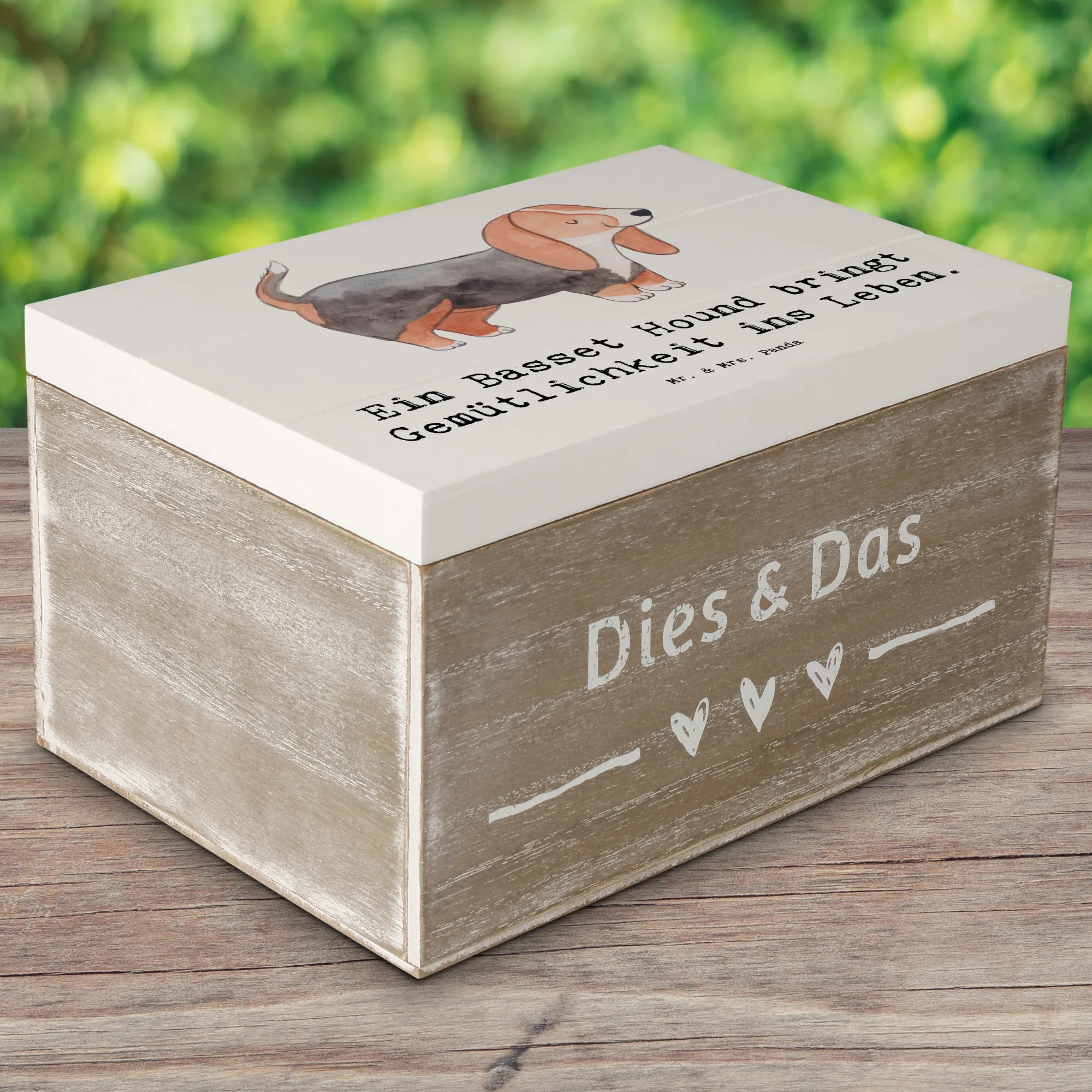 Außerdem ist sie ideal für festliche Anlässe wie Kommunion oder Konfirmation. Ein liebevolles Geschenk, das immer zur Hand ist! Der spritzige Spruch "Ein Basset Hound bringt Gemütlichkeit ins Leben." auf der Kiste vermittelt sofort ein Gefühl von Wärme und Geborgenheit.