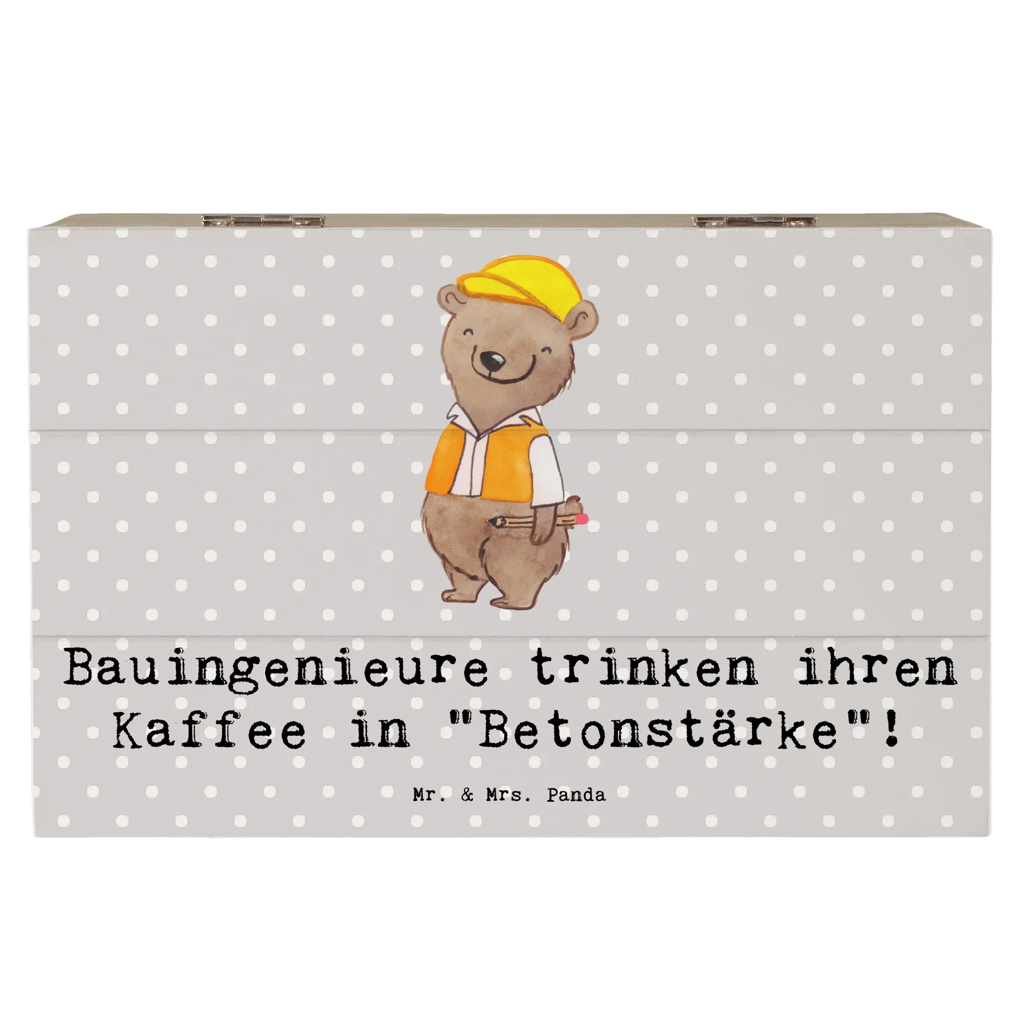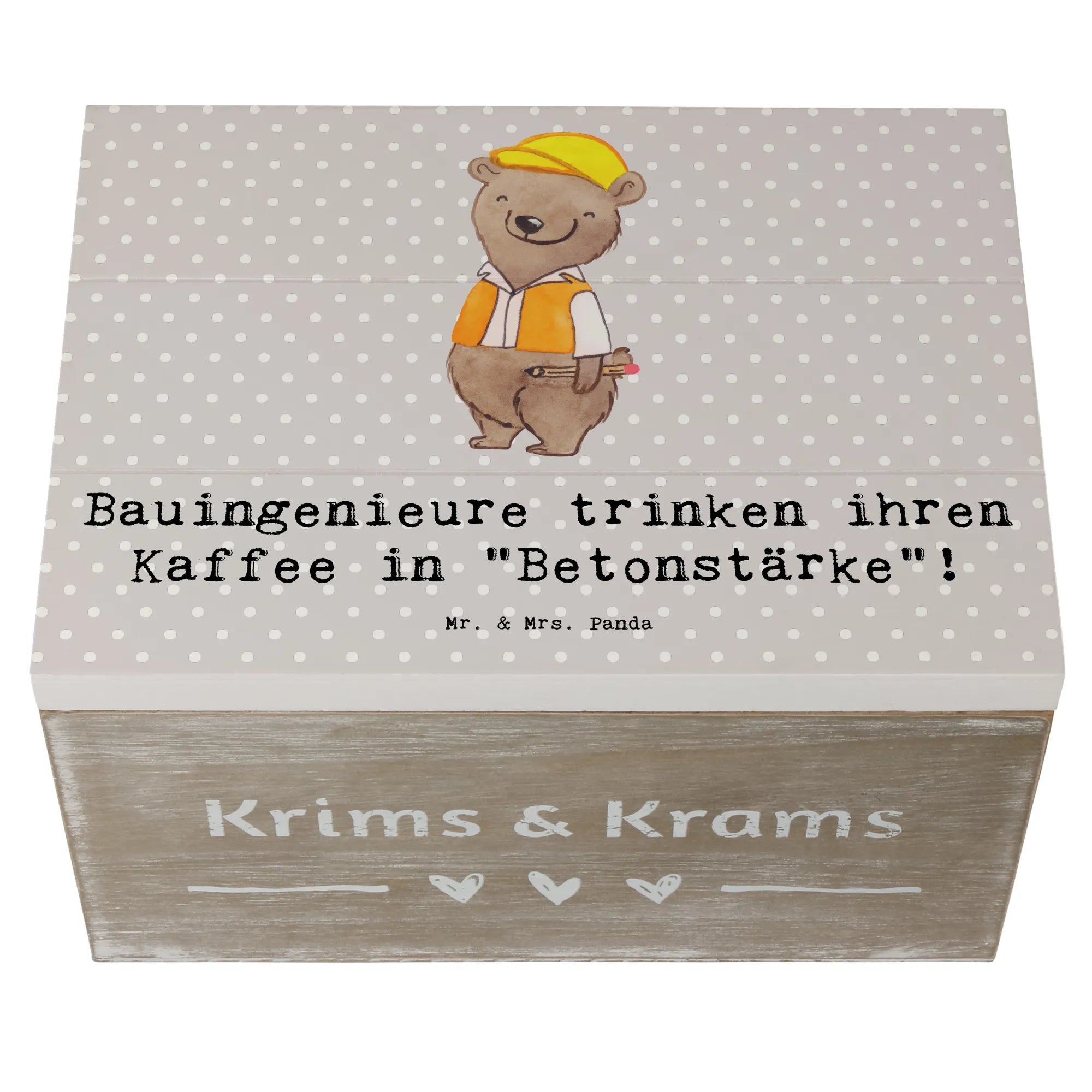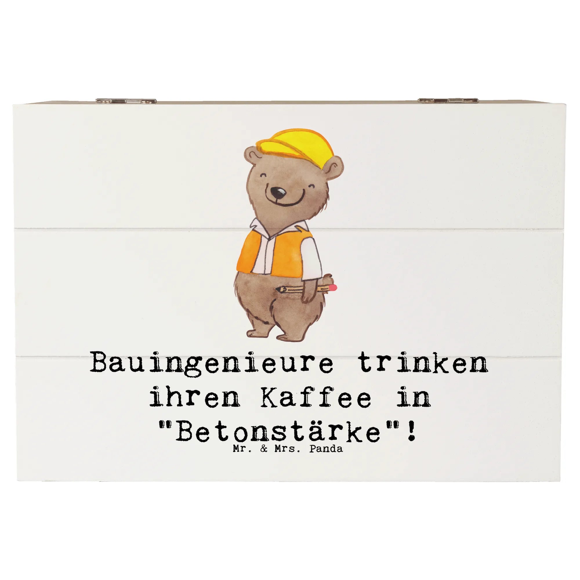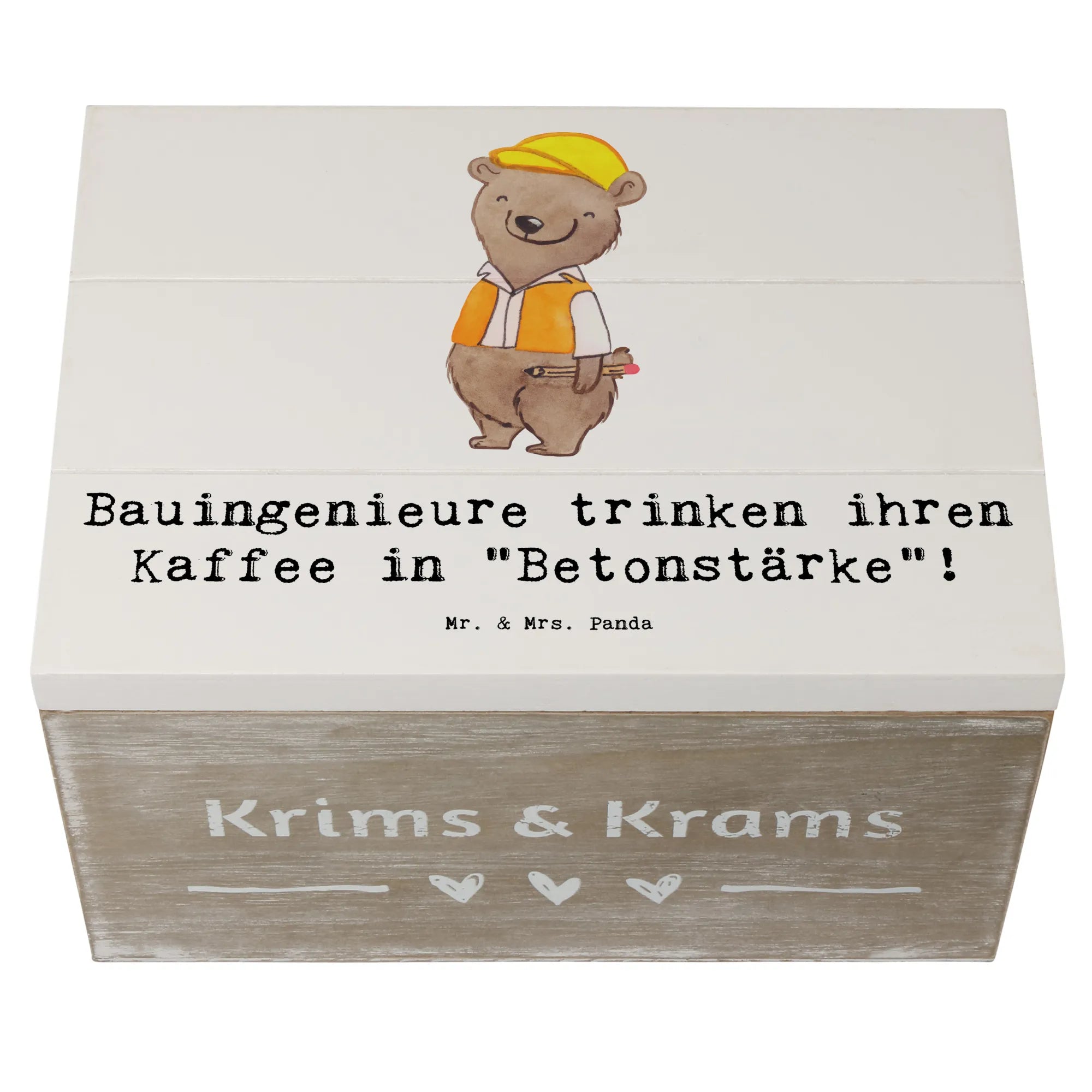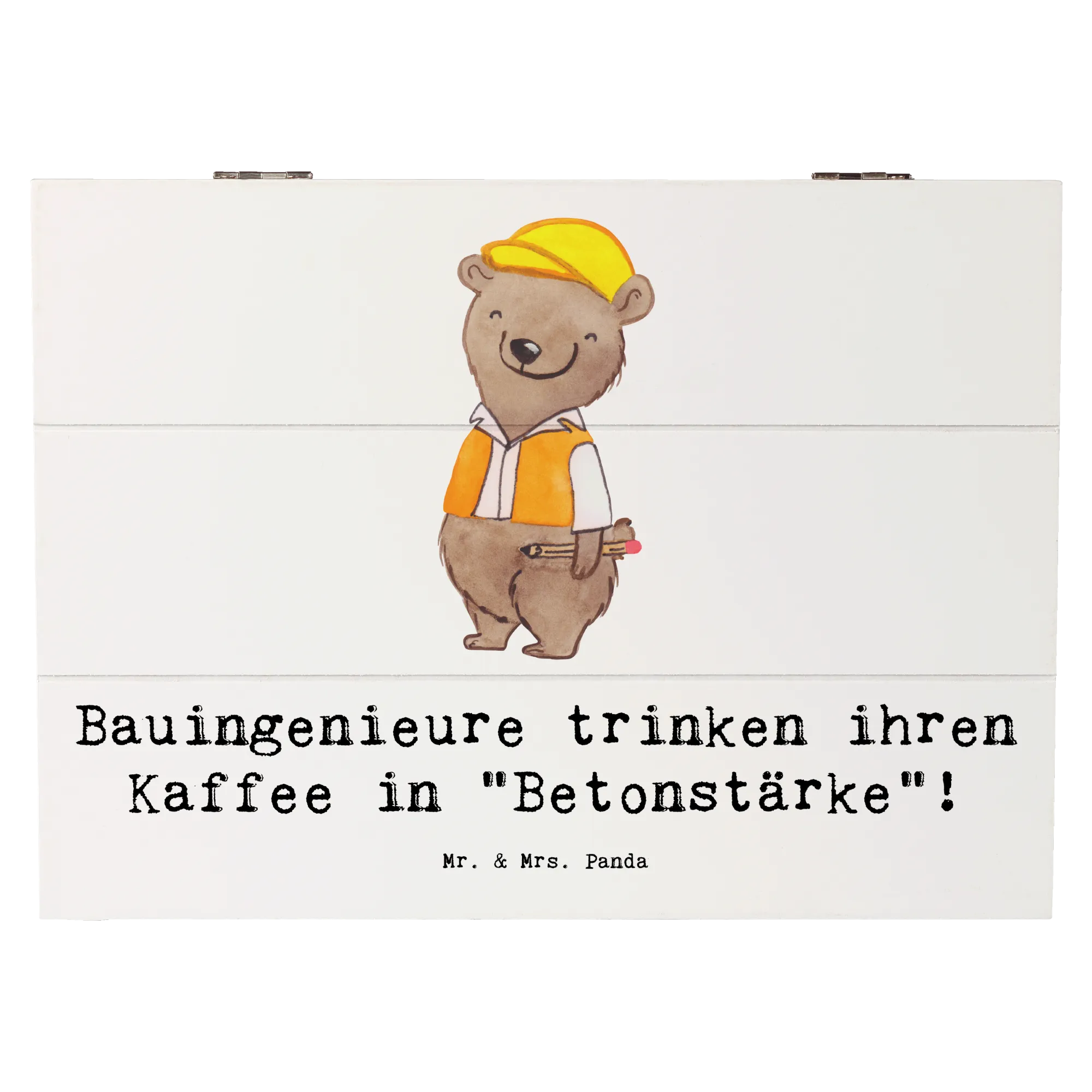 Die wunderschöne Holzkiste von Mr. & Mrs. Panda ist das perfekte Geschenk für Bauingenieure und alle, die ihren Beruf lieben. Mit dem liebevoll gestalteten Motiv und dem lustigen Slogan 'Bauingenieure trinken ihren Kaffee in Betonstärke!' wird diese Kiste nicht nur zum Aufbewahrungsort für Erinnerungsstücke, sondern auch zu einem liebevollen Begleiter im Büro oder zu Hause.