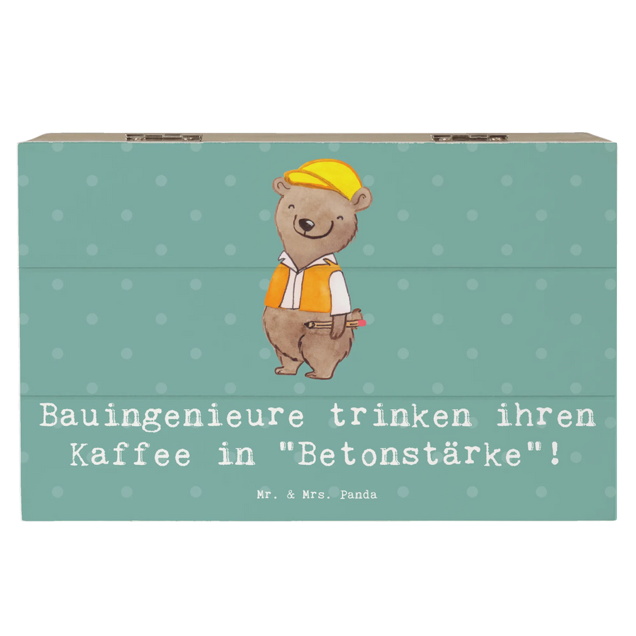 Du suchst nach dem perfekten Geschenk für einen Bauingenieur? Unsere wunderschöne Holzkiste von Mr. & Mrs. Panda ist genau das, was Du brauchst! Diese Erinnerungsbox ist nicht nur optisch ein Hingucker, sondern auch extrem praktisch. Mit einem charmanten Aufdruck, der eigens für Bauingenieure entworfen wurde, zaubert sie ein Lächeln auf jedes Gesicht. Der Spruch "Bauingenieure trinken ihren Kaffee in 'Betonstärke'!" sorgt dafür, dass jeder, der diese Kiste sieht, sofort die Liebe zum Beruf spürt.