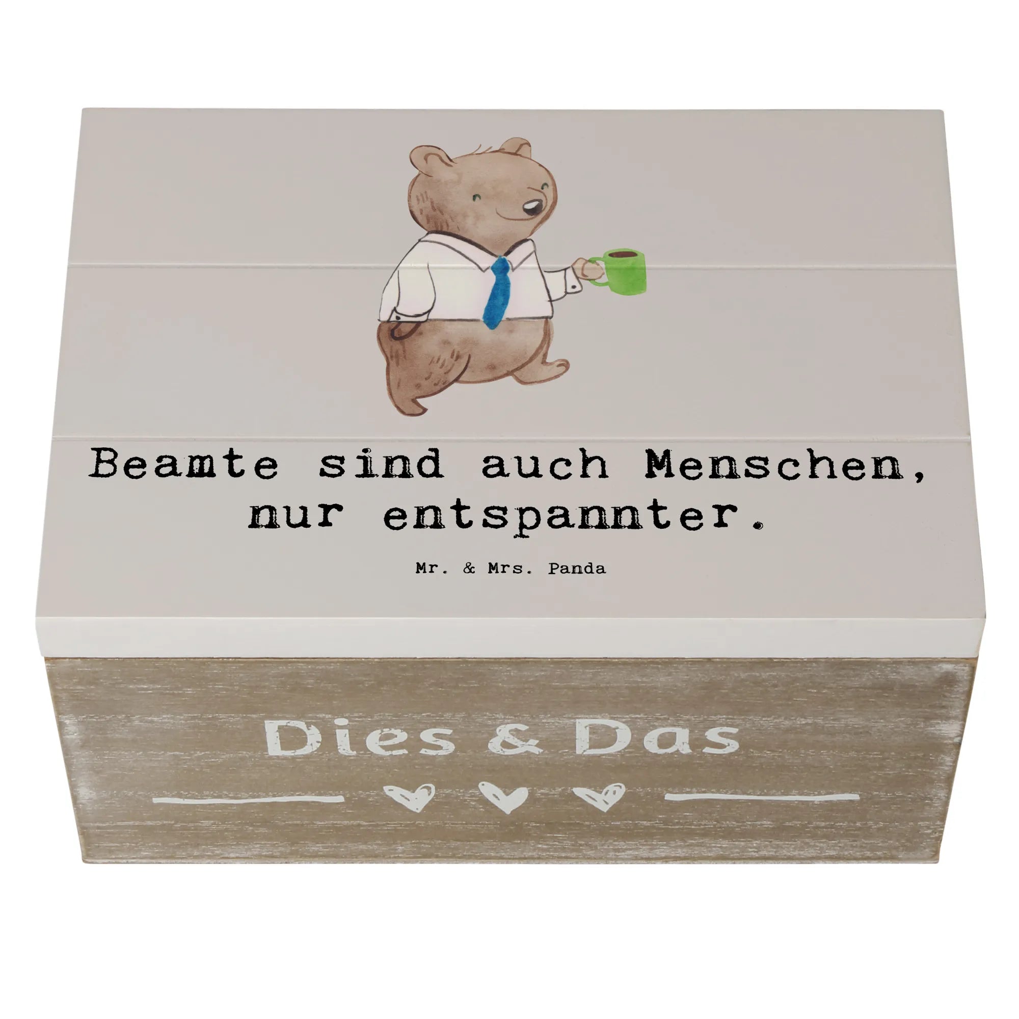 Entdecke die wunderbare Holzkiste "Beamtin" von Mr. & Mrs. Panda – die perfekte Aufbewahrung für all deine Erinnerungen! Mit ihrem charmanten Design und dem liebevollen Slogan "Beamte sind auch Menschen, nur entspannter" ist diese Kiste nicht nur praktisch, sondern bringt auch ein Lächeln in deinen Alltag.