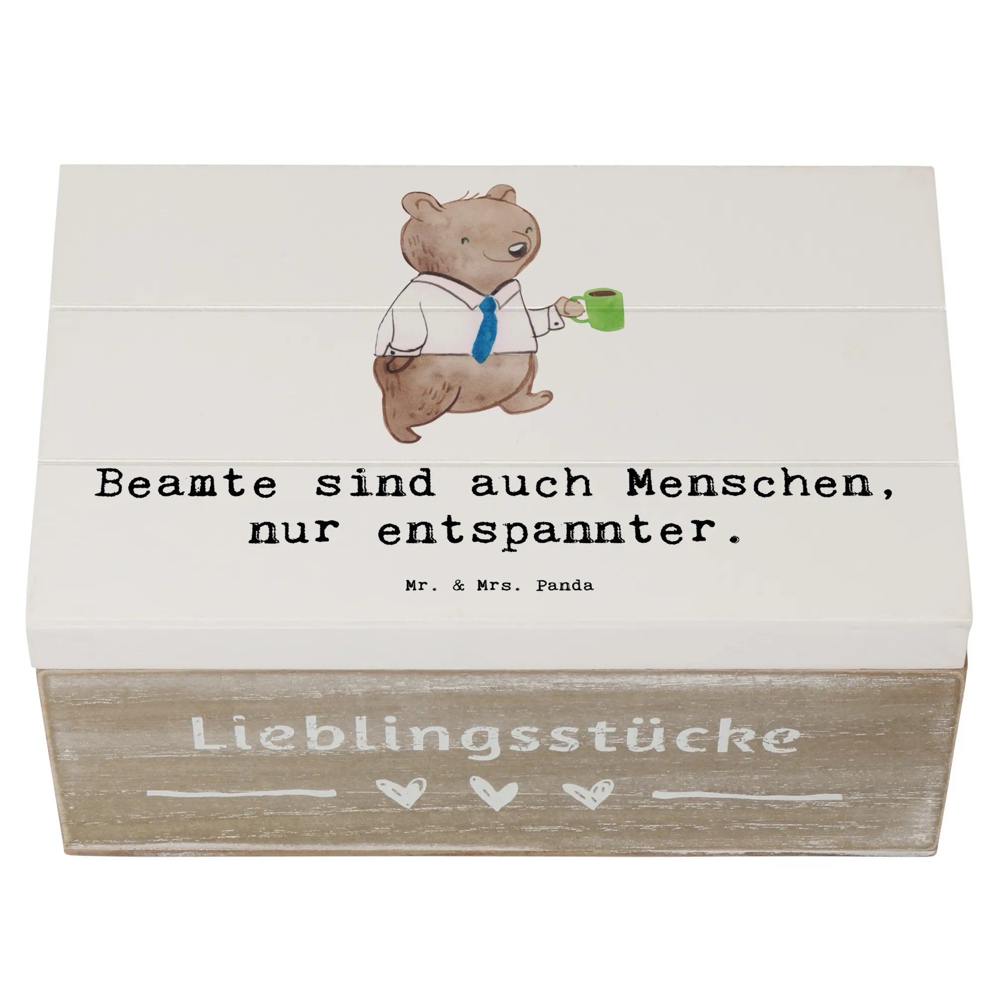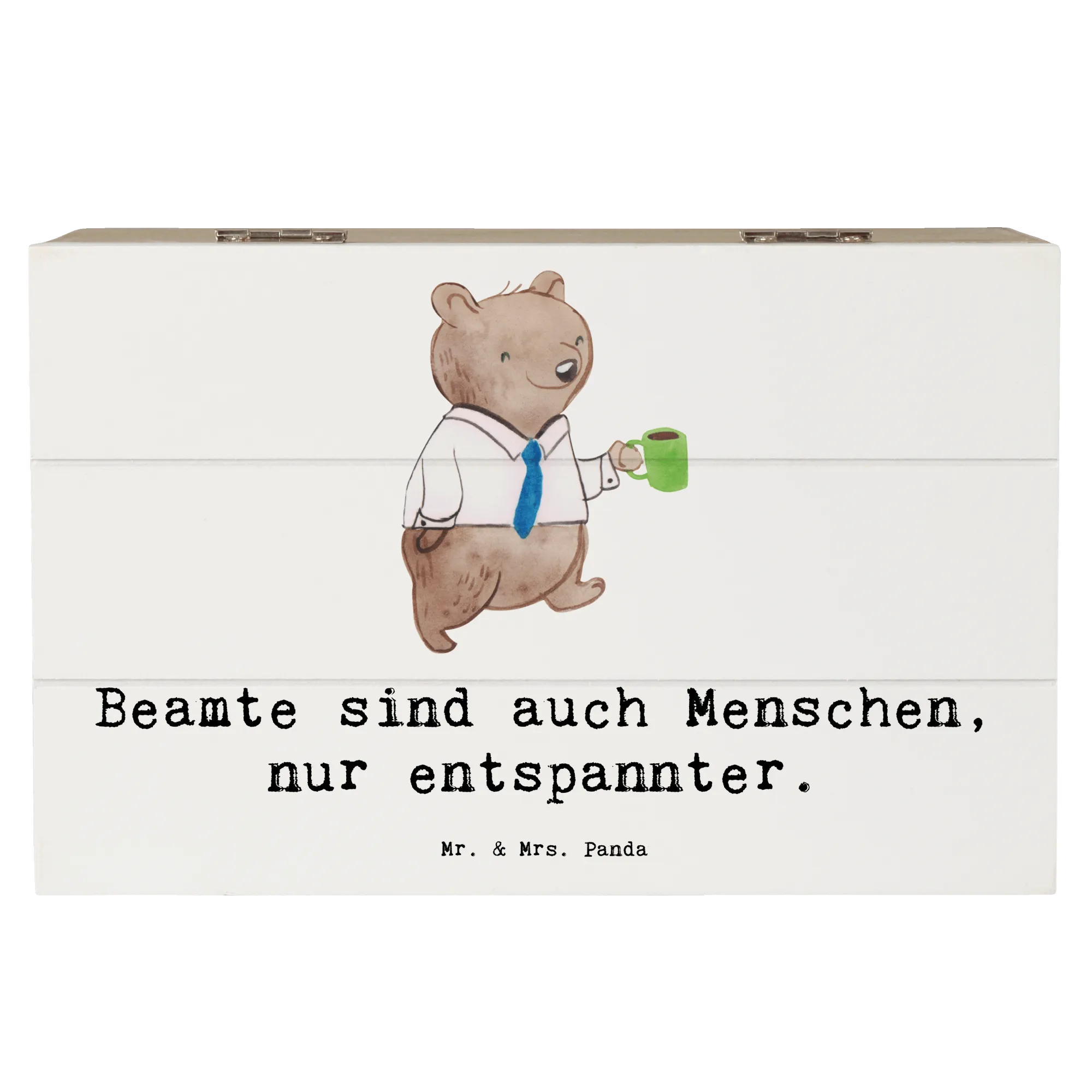 Die wunderschöne Holzkiste von Mr. & Mrs. Panda ist das ideale Geschenk für alle Beamtinnen! Mit dem liebevoll handgezeichneten Motiv und dem witzigen Spruch "Beamte sind auch Menschen, nur entspannter" wird diese Kiste zum perfekten Aufbewahrungsort für die vielen Schätze des Alltags.