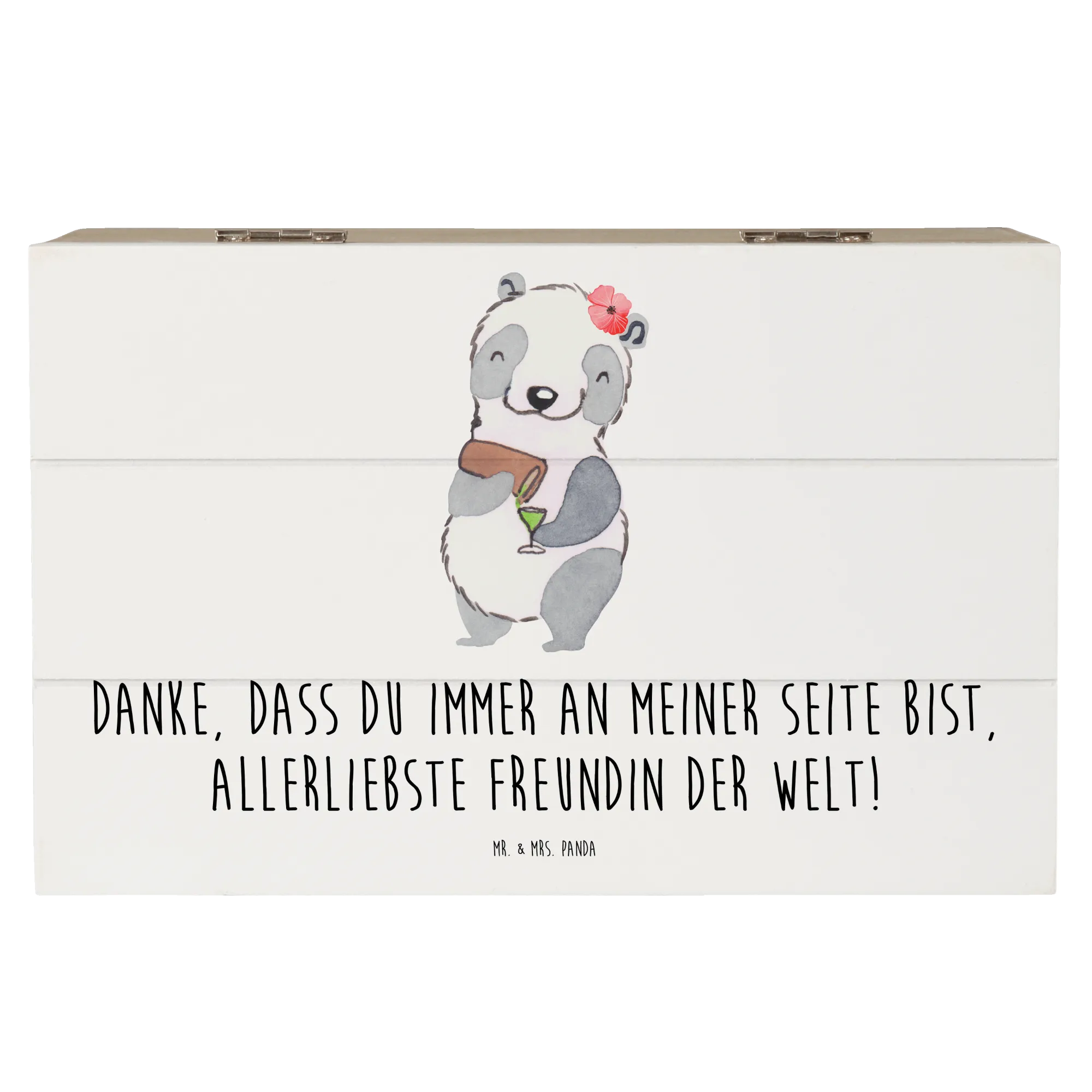 Entdecke die wunderschöne Holzkiste "Danke, dass du immer an meiner Seite bist, allerliebste Freundin der Welt!" von Mr. & Mrs. Panda, die sich perfekt als Geschenk für deine beste Freundin eignet.