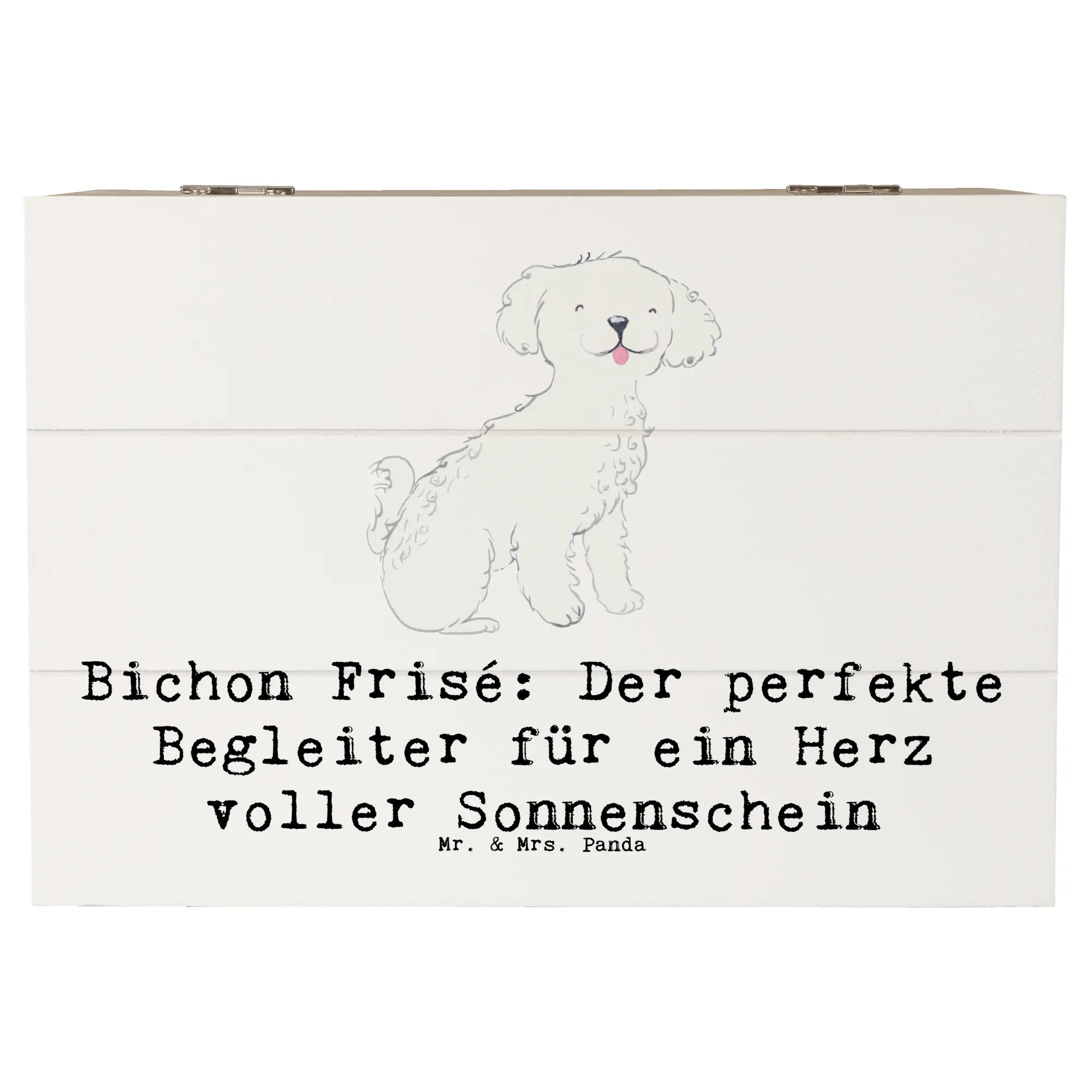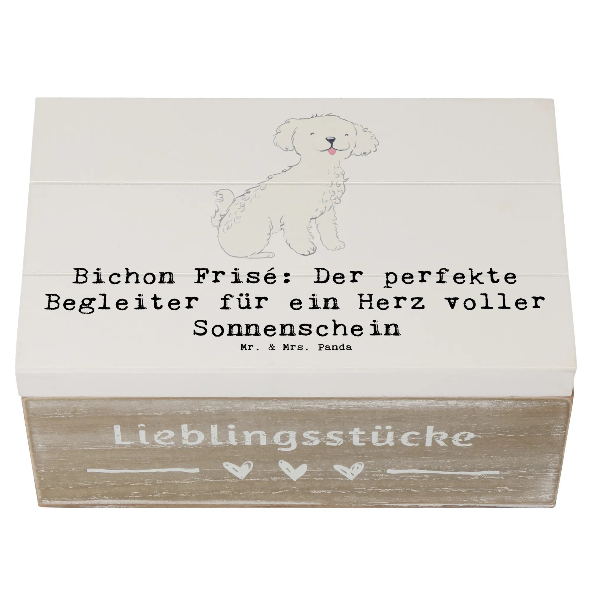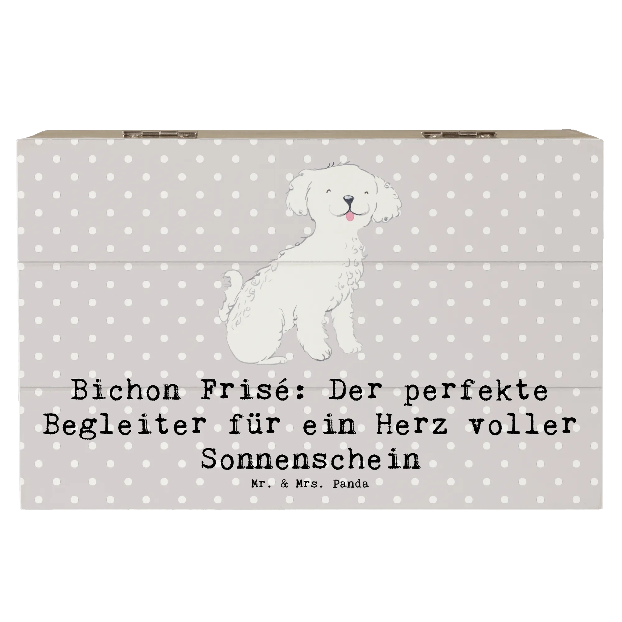 Die wunderschöne Holzkiste mit dem niedlichen Motiv "Bichon Frisé: Der perfekte Begleiter für ein Herz voller Sonnenschein" von Mr. & Mrs. Panda ist mehr als nur eine Kiste. Sie ist ein wahres Schatzkästchen für Hundefans! 🌟