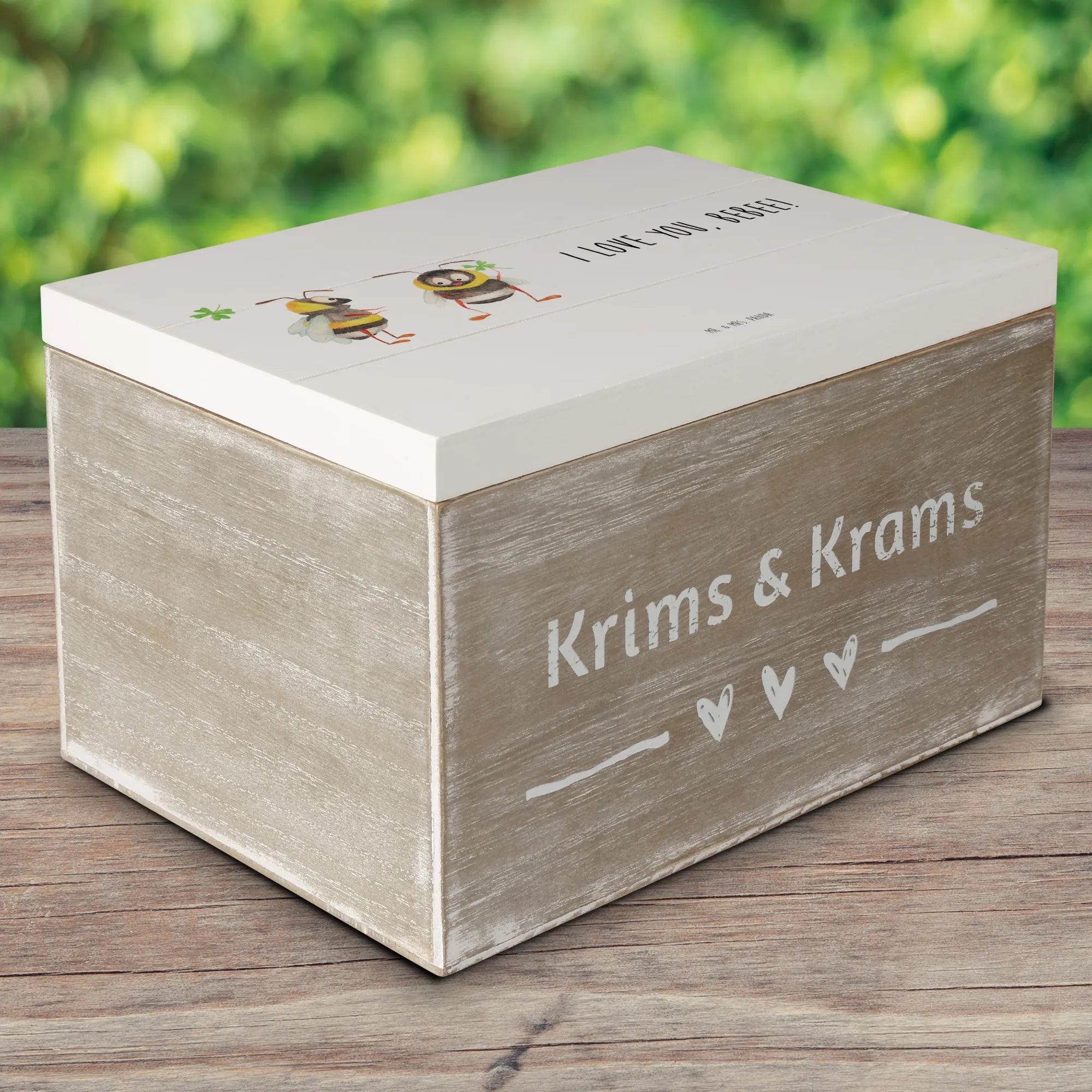 Entdecke die zauberhafte Holzkiste mit dem niedlichen Motiv der Bienen Paar von Mr. & Mrs. Panda! Diese wunderschöne Holzkiste ist der perfekte Aufbewahrungsort für all deine wertvollen Schätze und Erinnerungen.
