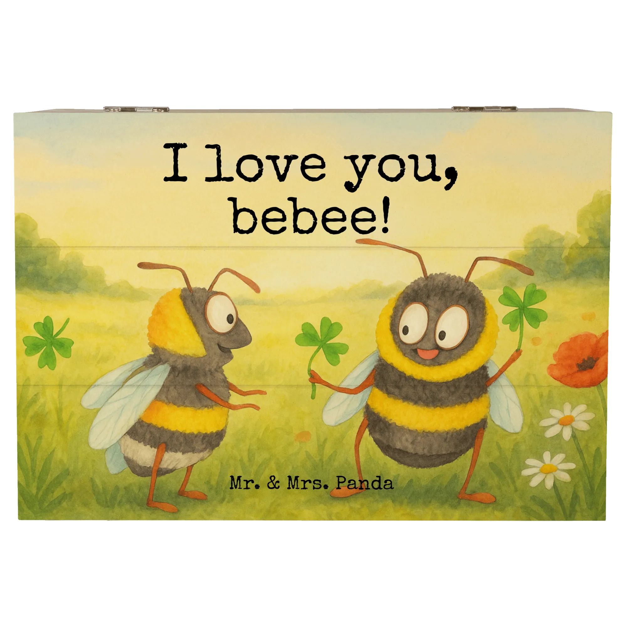Holzkiste Bienen Paar Design - 22 x 15 cm - mit Spruch