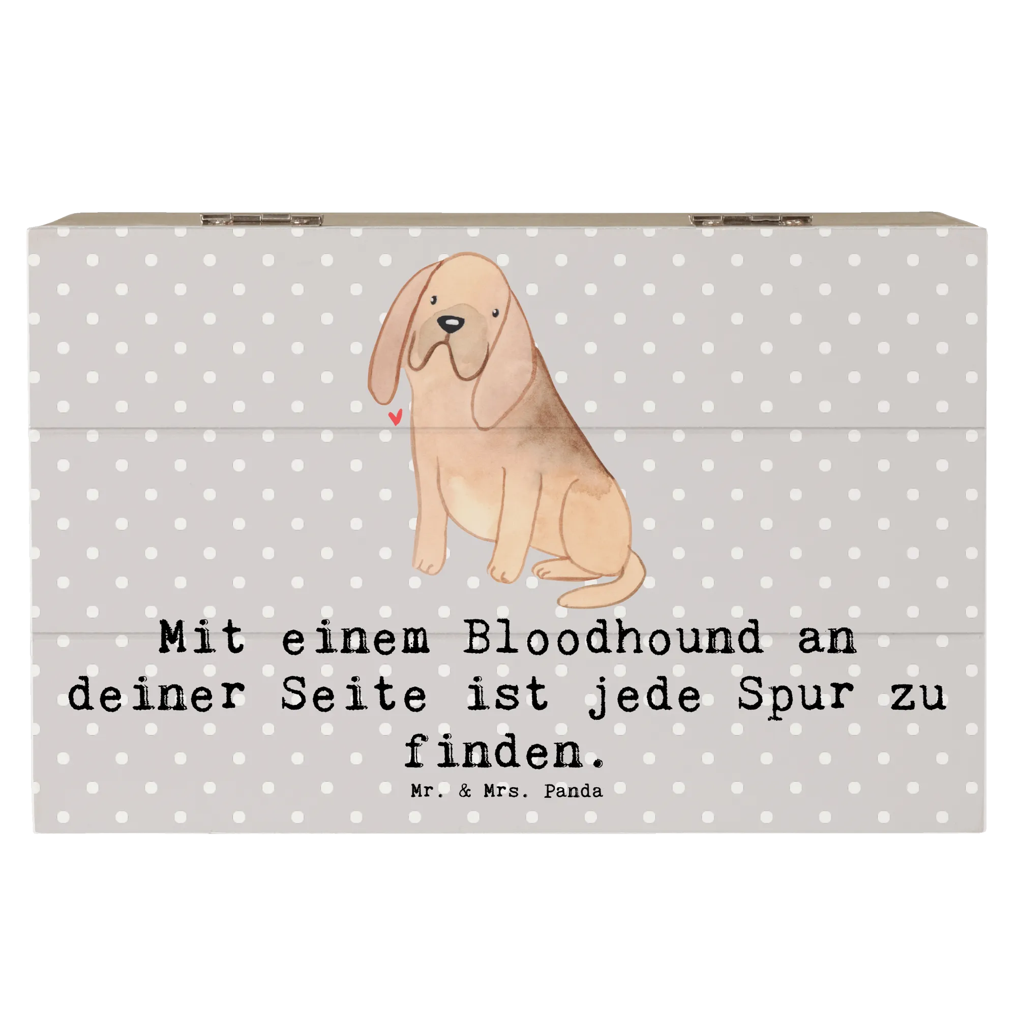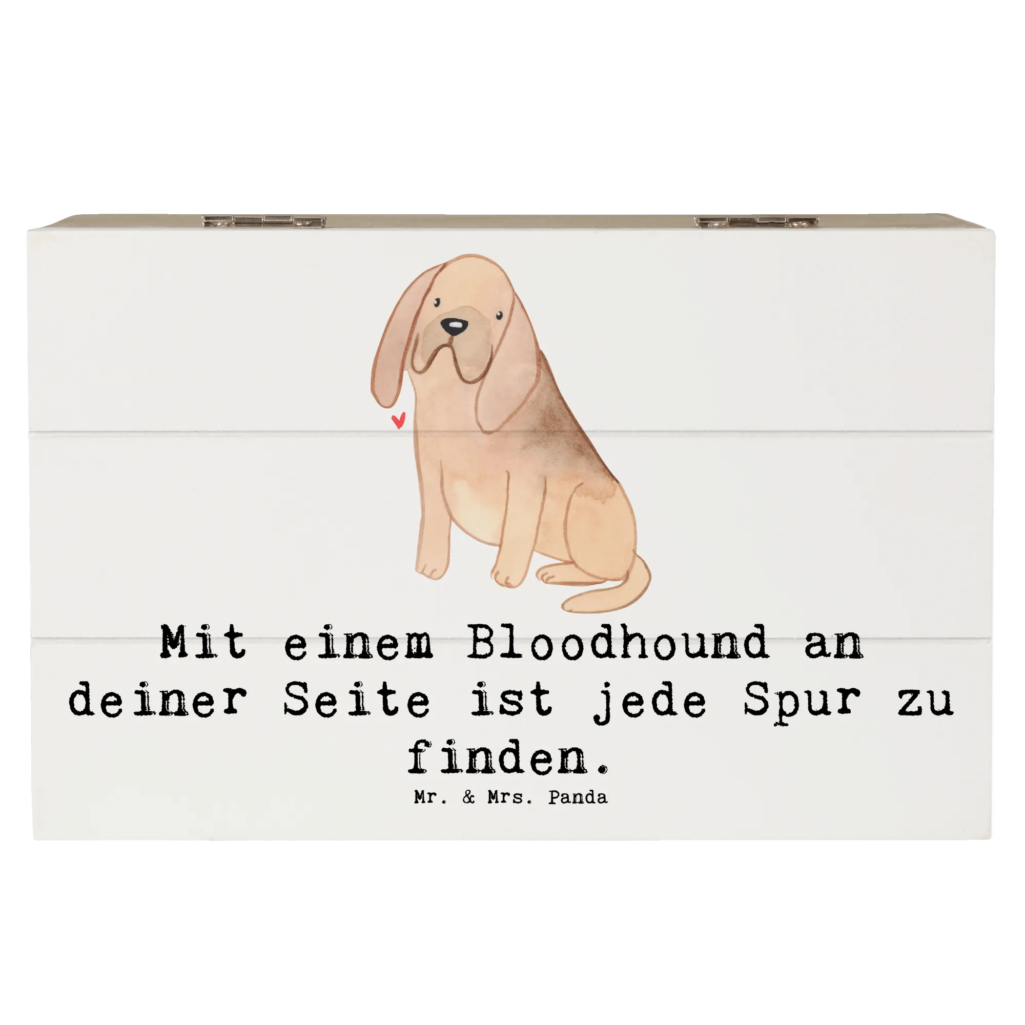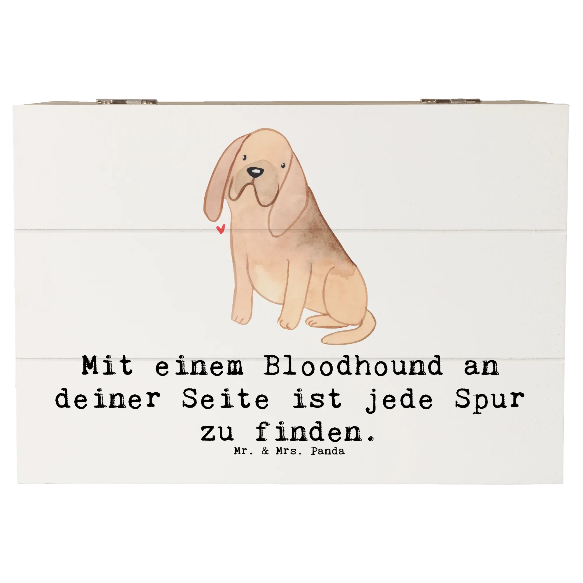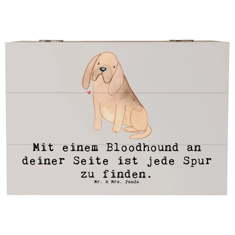 Das süße Design und der charmante Spruch "Mit einem Bloodhound an deiner Seite ist jede Spur zu finden." machen sie zu einem ganz besonderen Geschenk, das von Herzen kommt. Die Holzkiste ist aus robuster Premium Hartfaser gefertigt, die nicht nur edel aussieht, sondern auch besonders langlebig und wasserabweisend ist. Jedes einzelne Stück wurde mit viel Liebe zum Detail von Mr. & Mrs. Panda gestaltet.